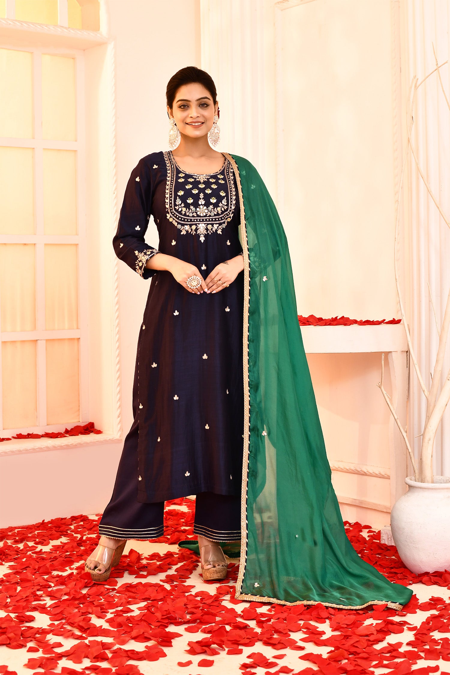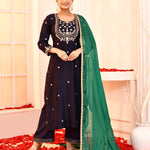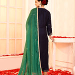 Dark Blue Hand Embroidered Straight Kurta And Palazzo Set