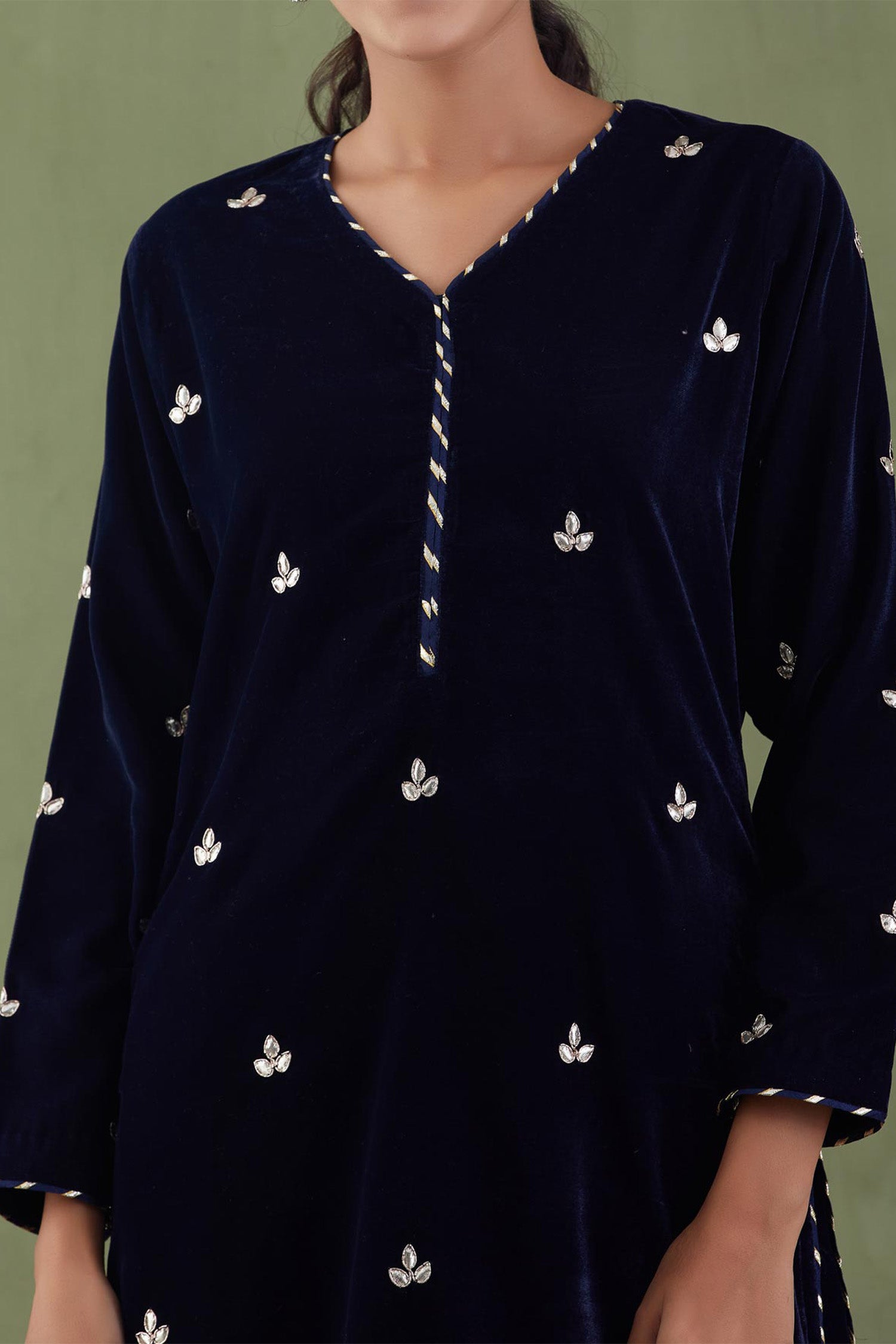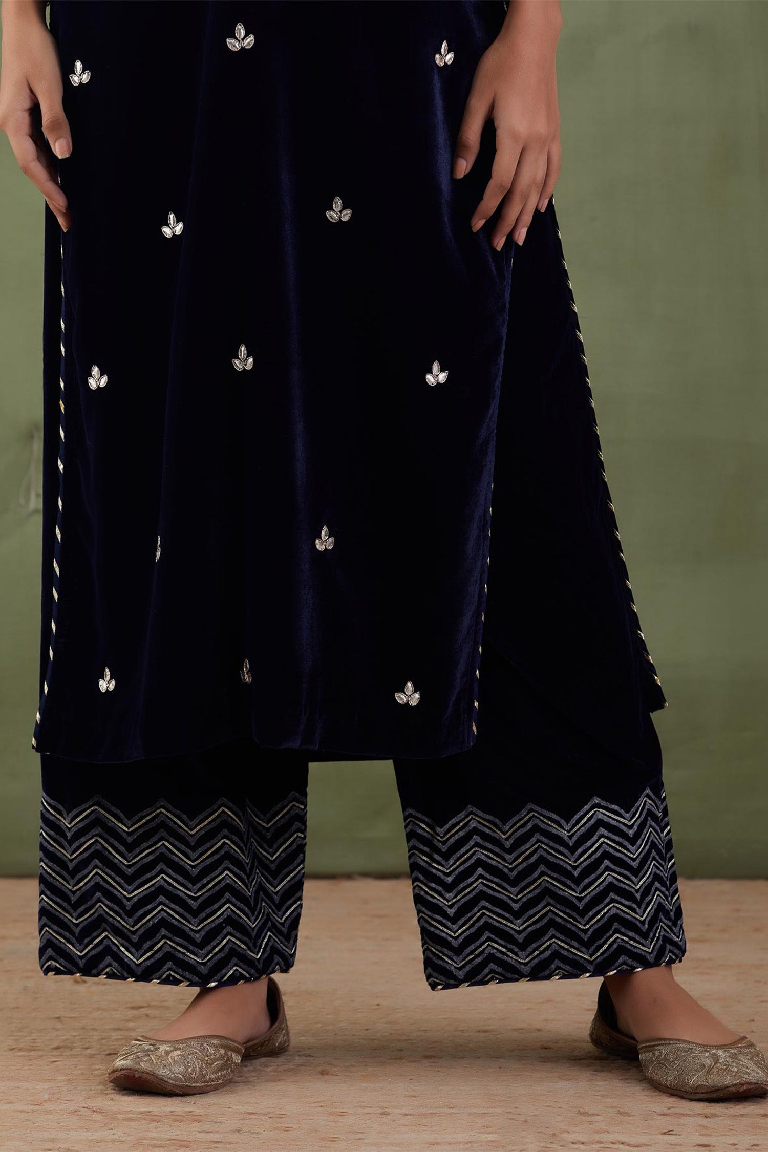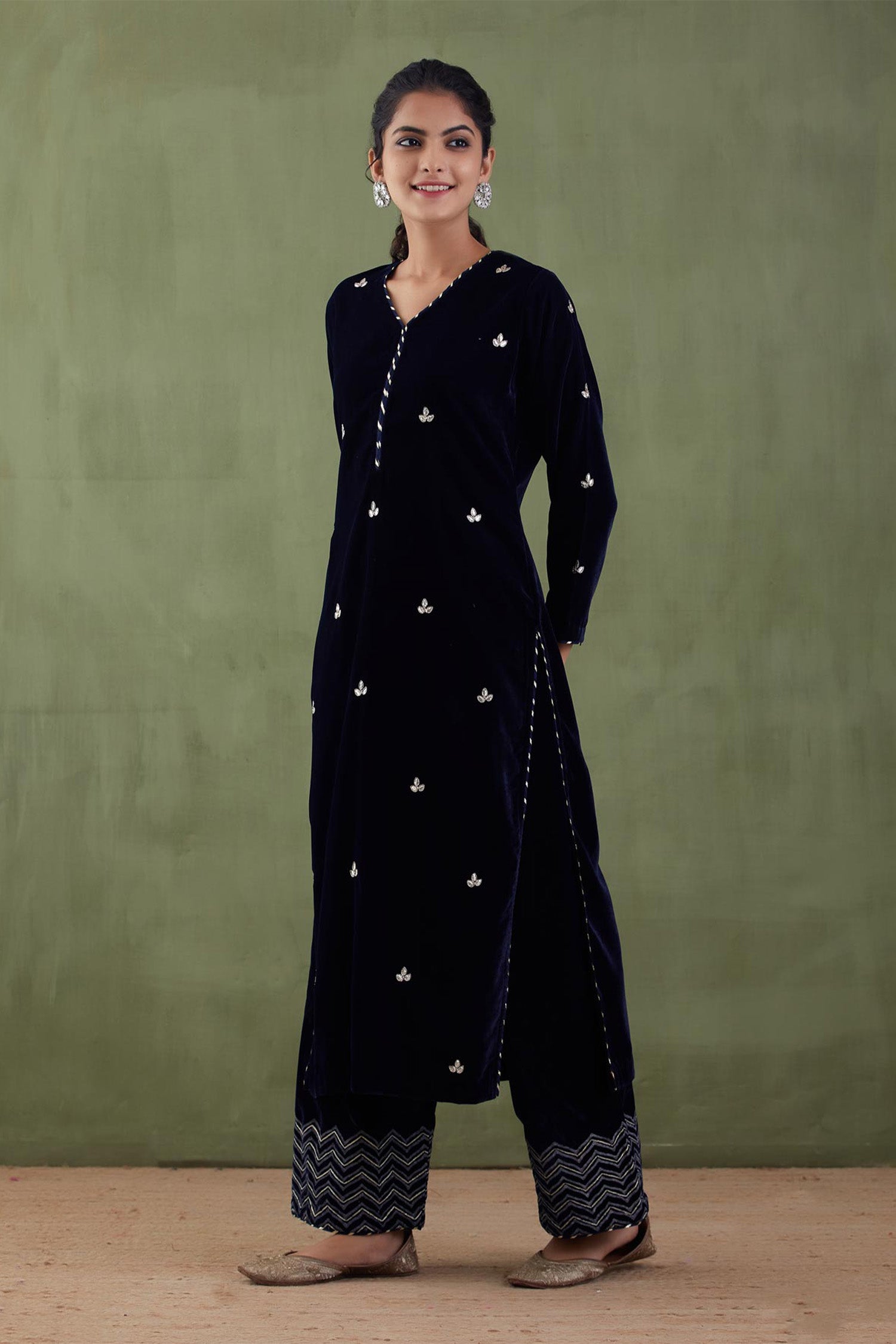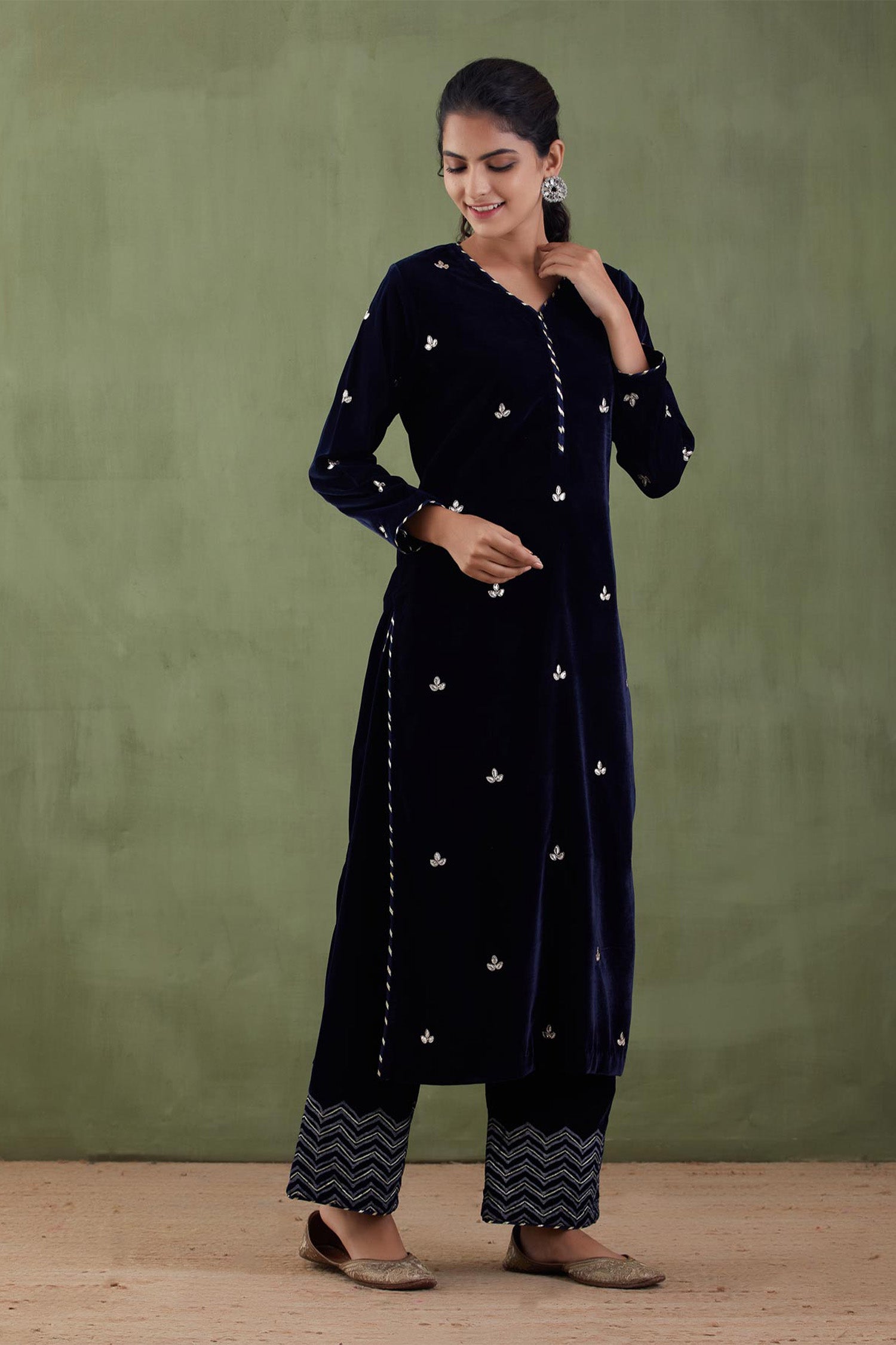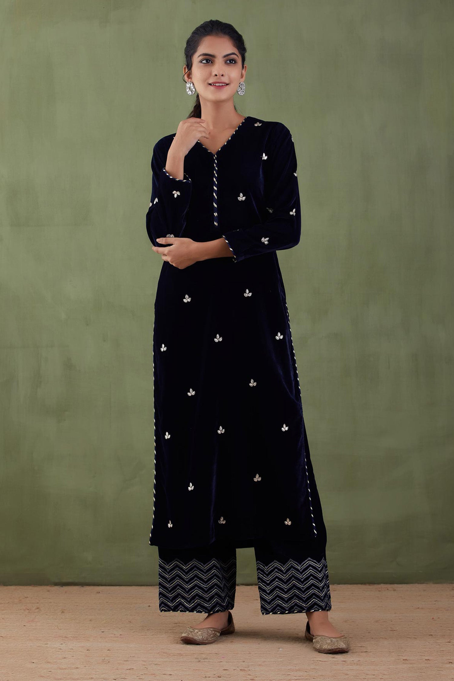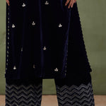 Dark Blue Velvet Straight Kurta And Pant