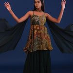 Dark Forest Green Crepe Silk And Organza Sharara Set