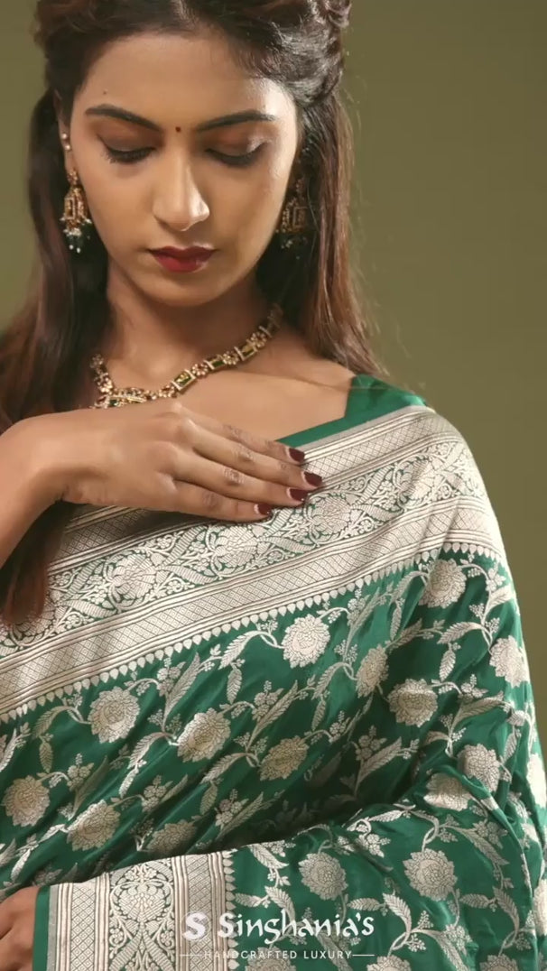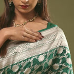 Dark Green Banarasi Saree With Leaf Jaal