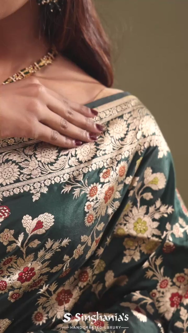 Dark Green Banarasi Saree With Meenakari Design