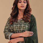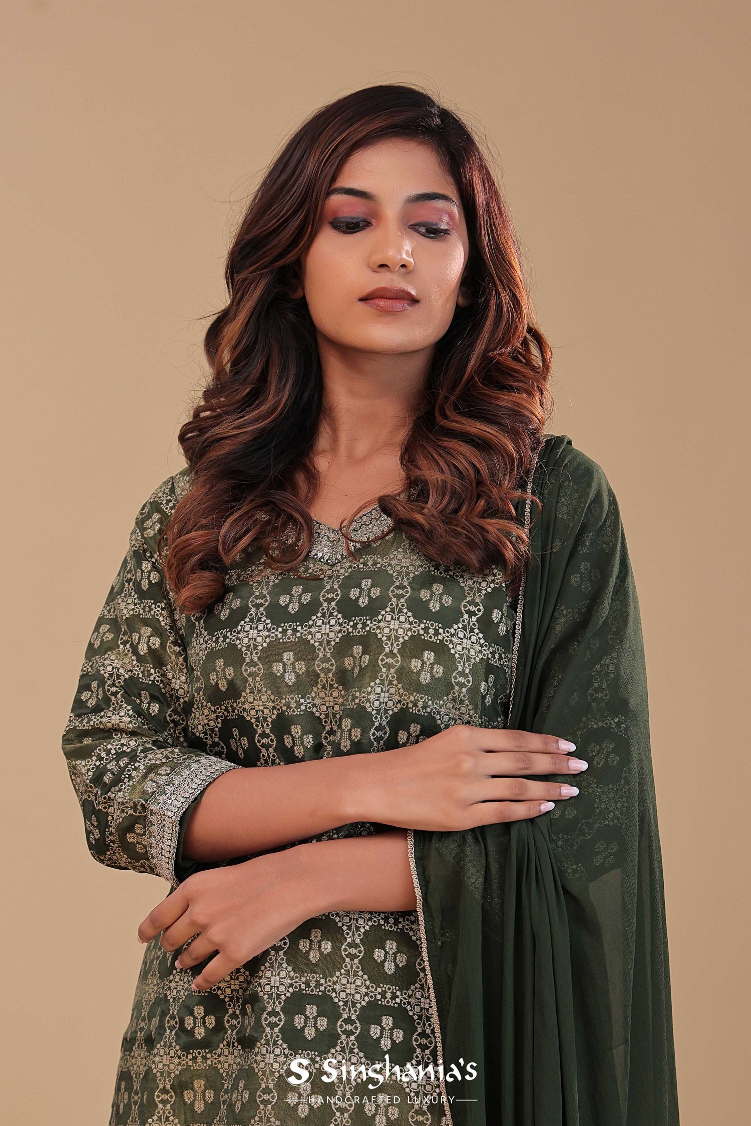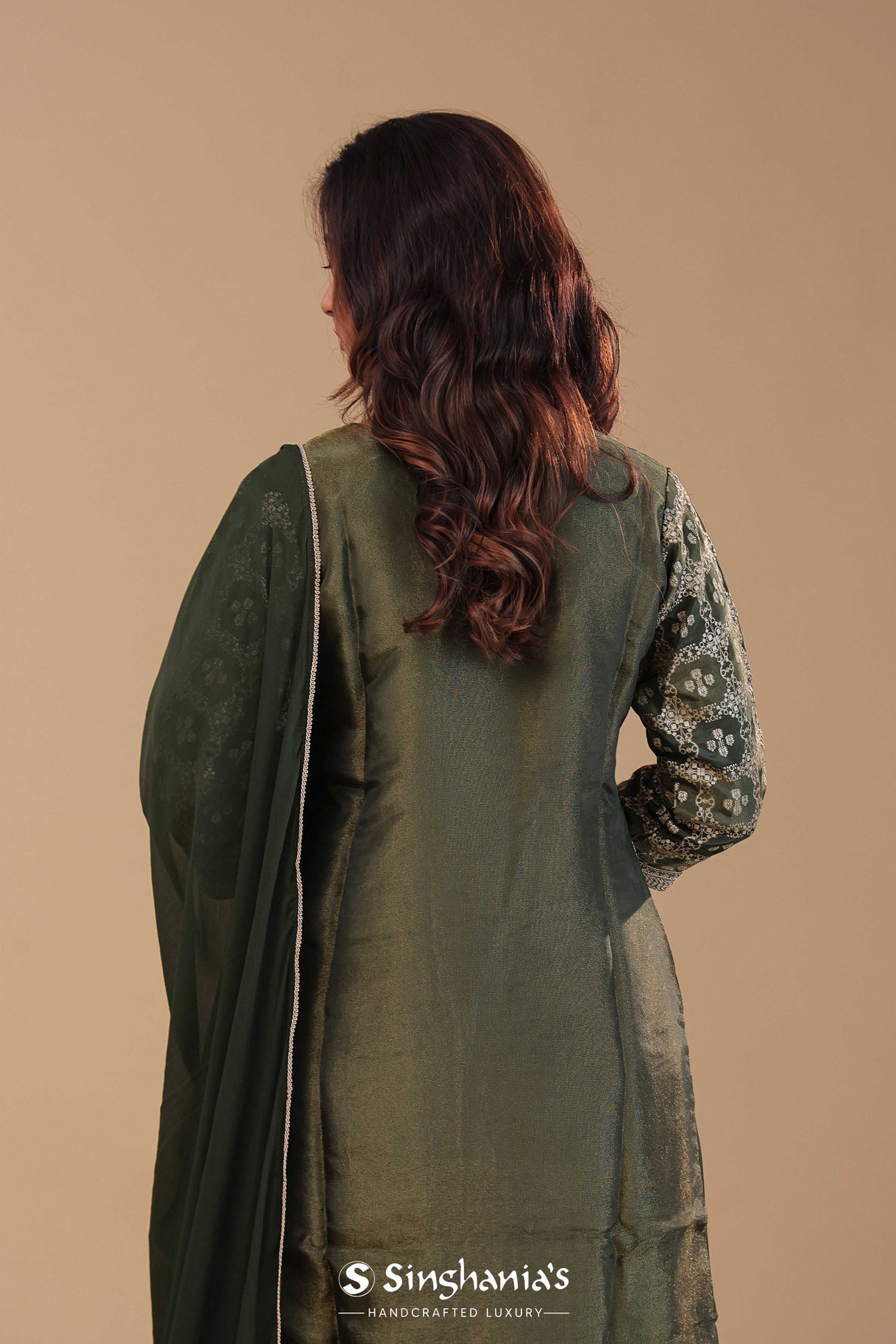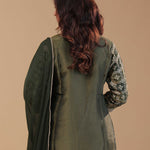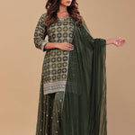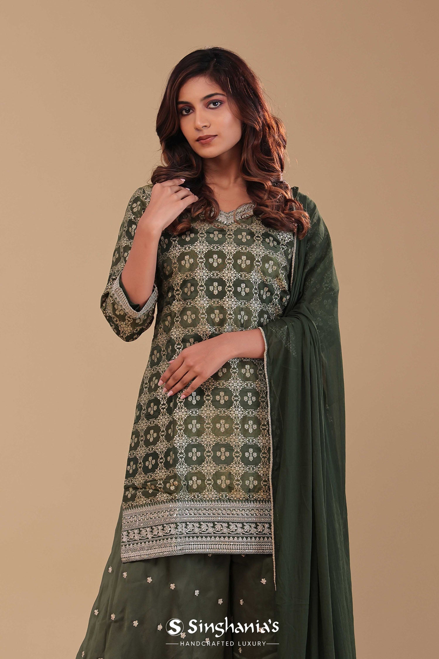 Dark Mehendi Banarasi Kurta Set With Woven Pattern