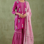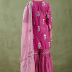 Dark Pink Floral Foil Printed Beautiful Cotton Silk Kurti Set With Gharara Pants