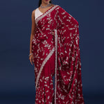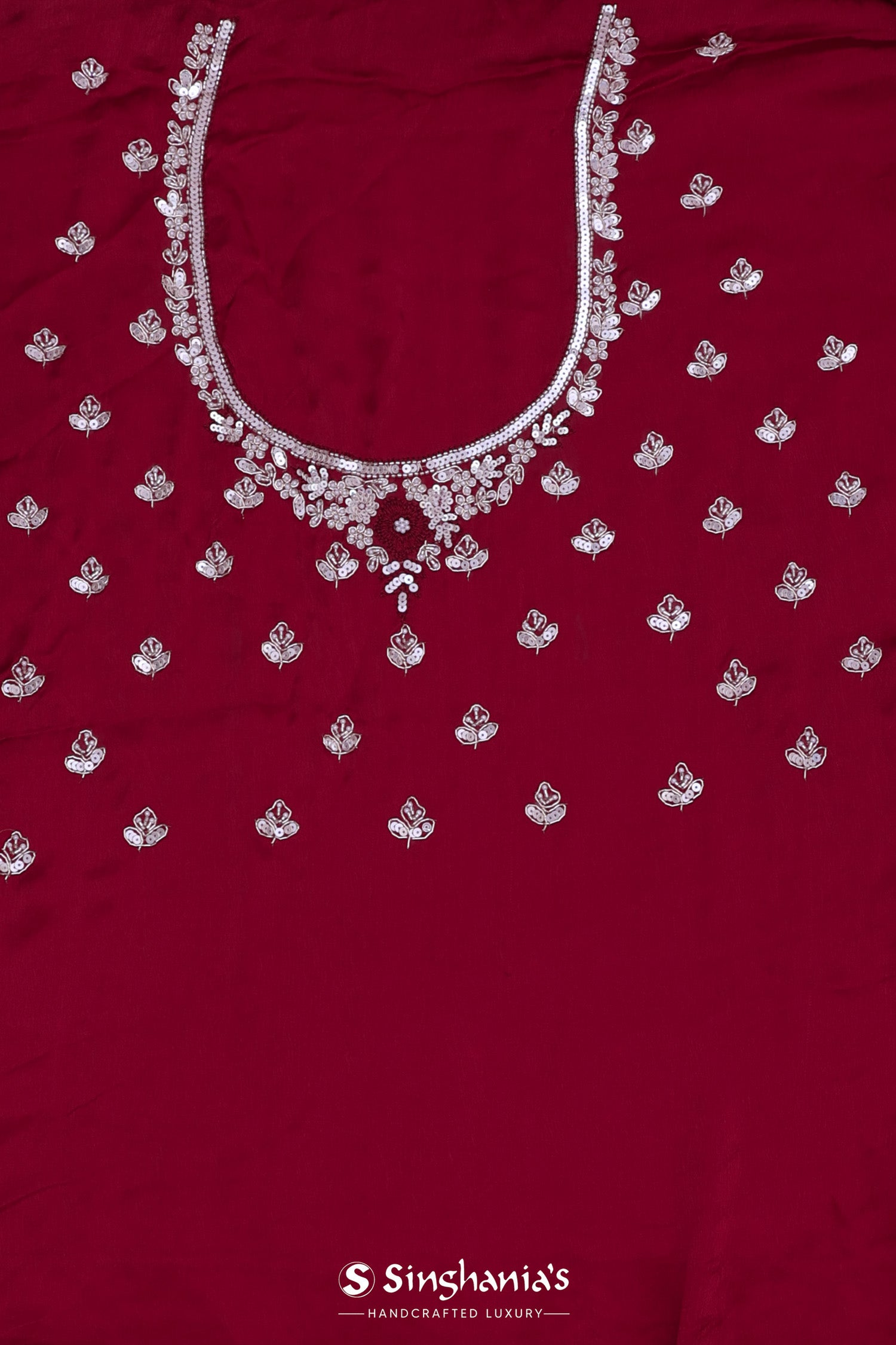 Dark Ruby Red Satin Silk Saree With Sequence Work