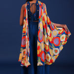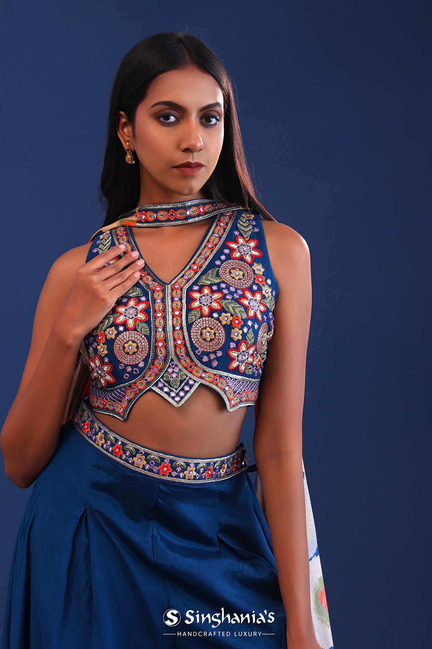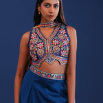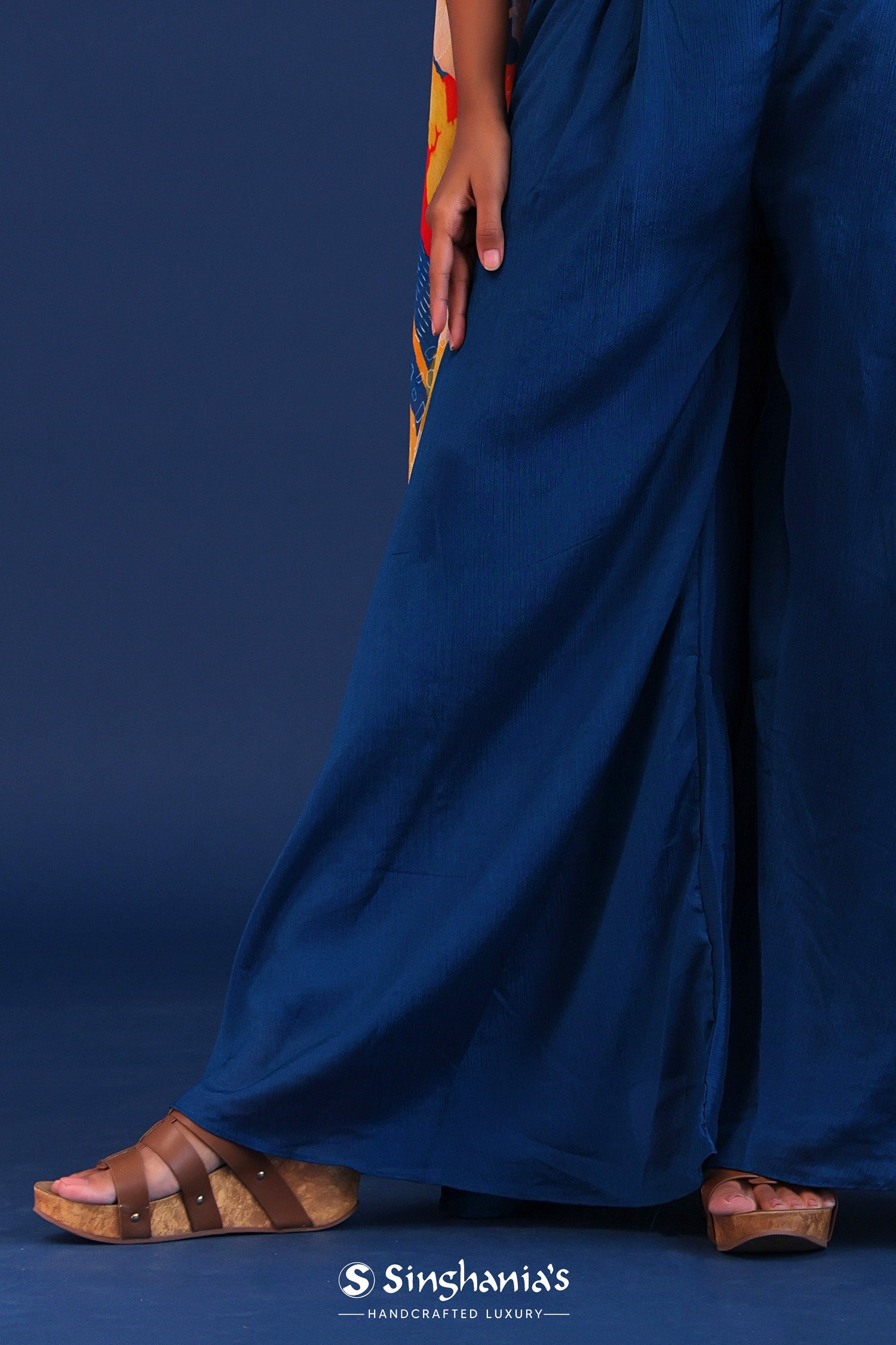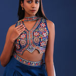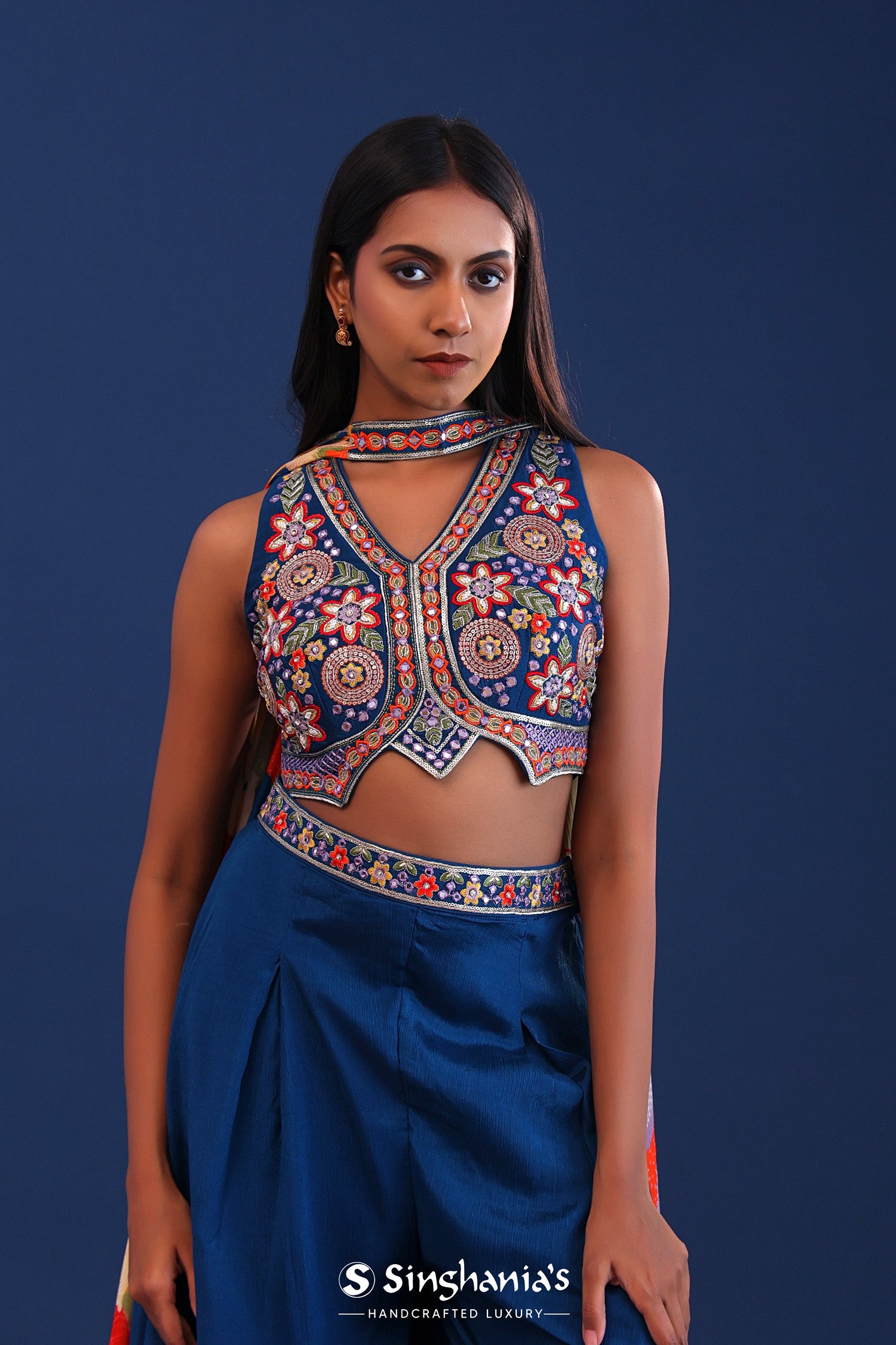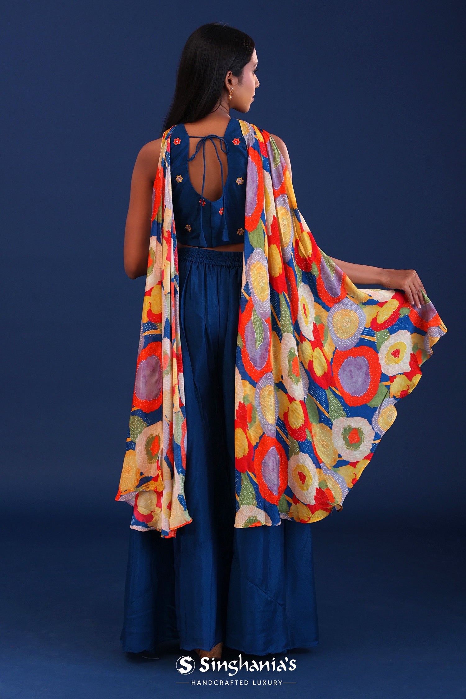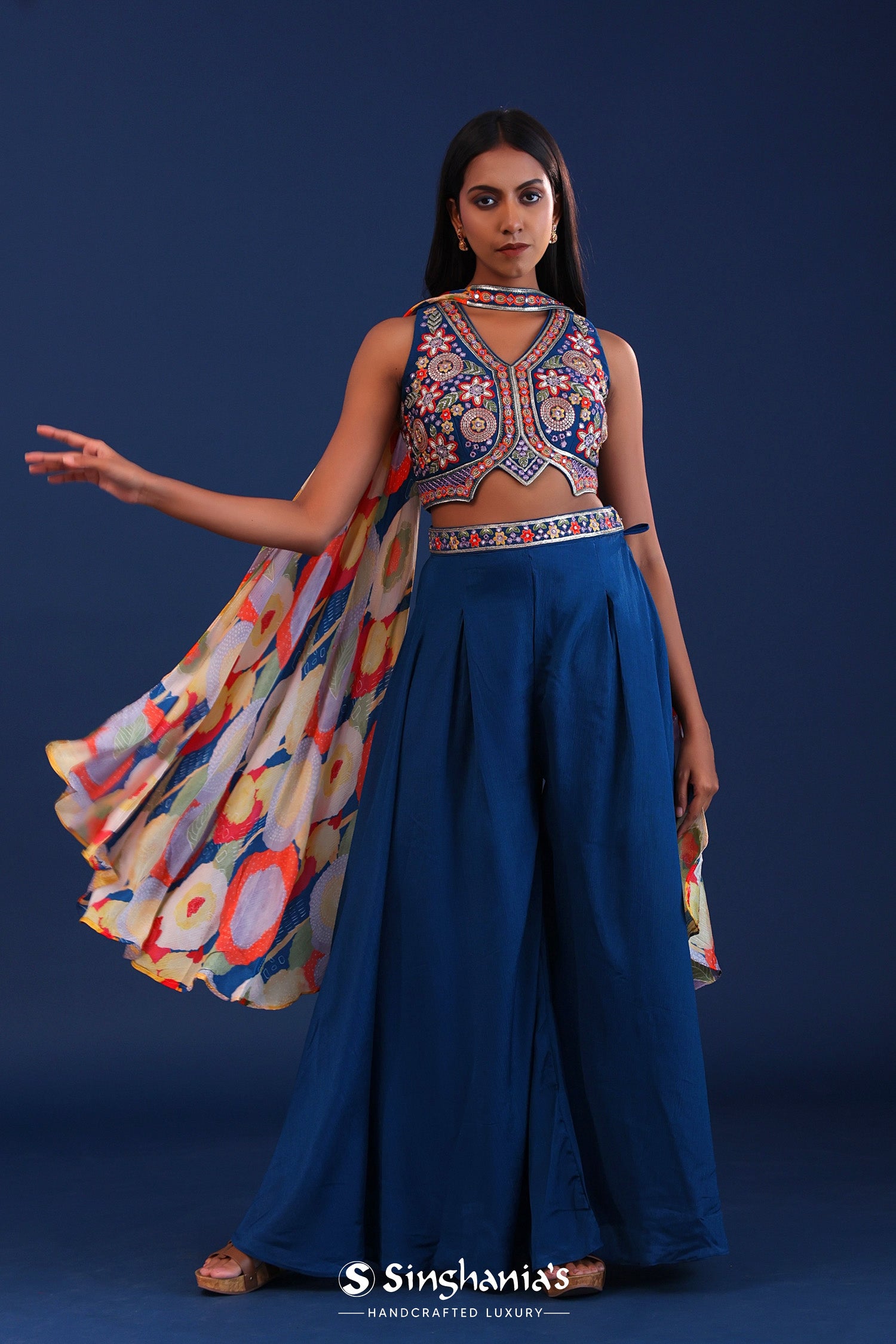 Dark Teal Blue Crepe Silk Indo Western Choli Set