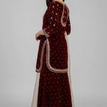 Deep Maroon Velvet Embroidered Kurti Set