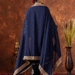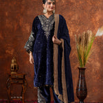 Deep Navy Blue Velvet Embroidered Kurti Set