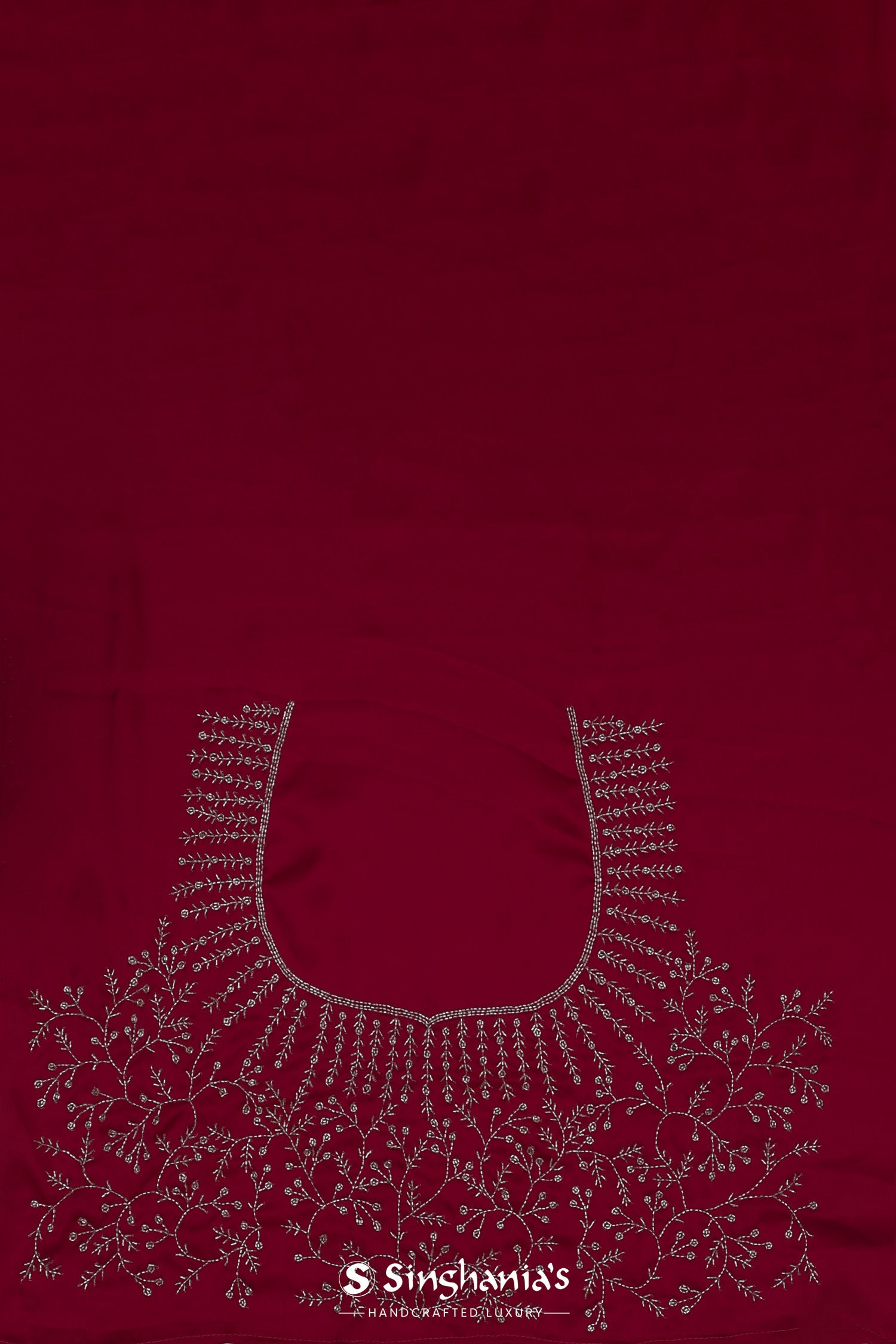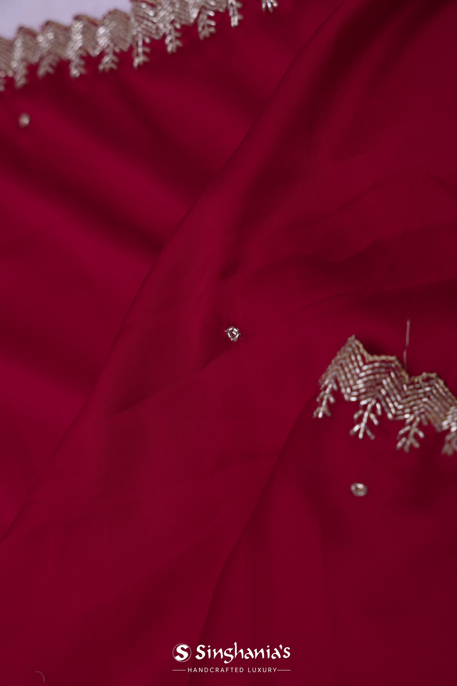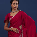 Deep Red Satin Saree With Cutdana Work