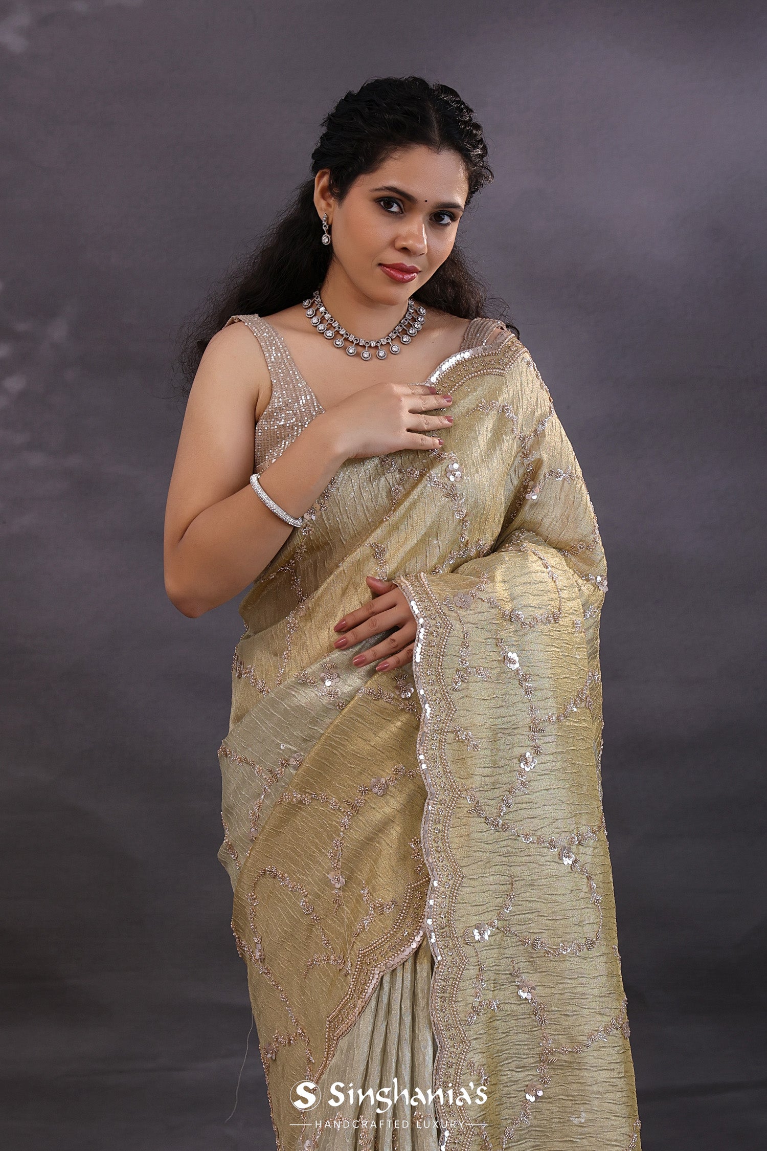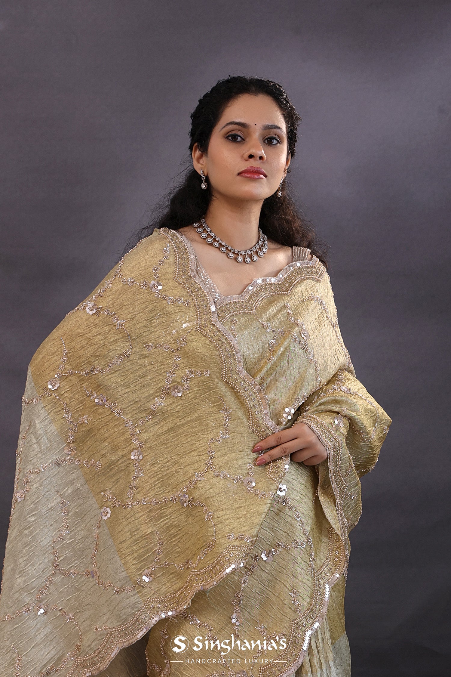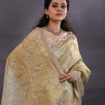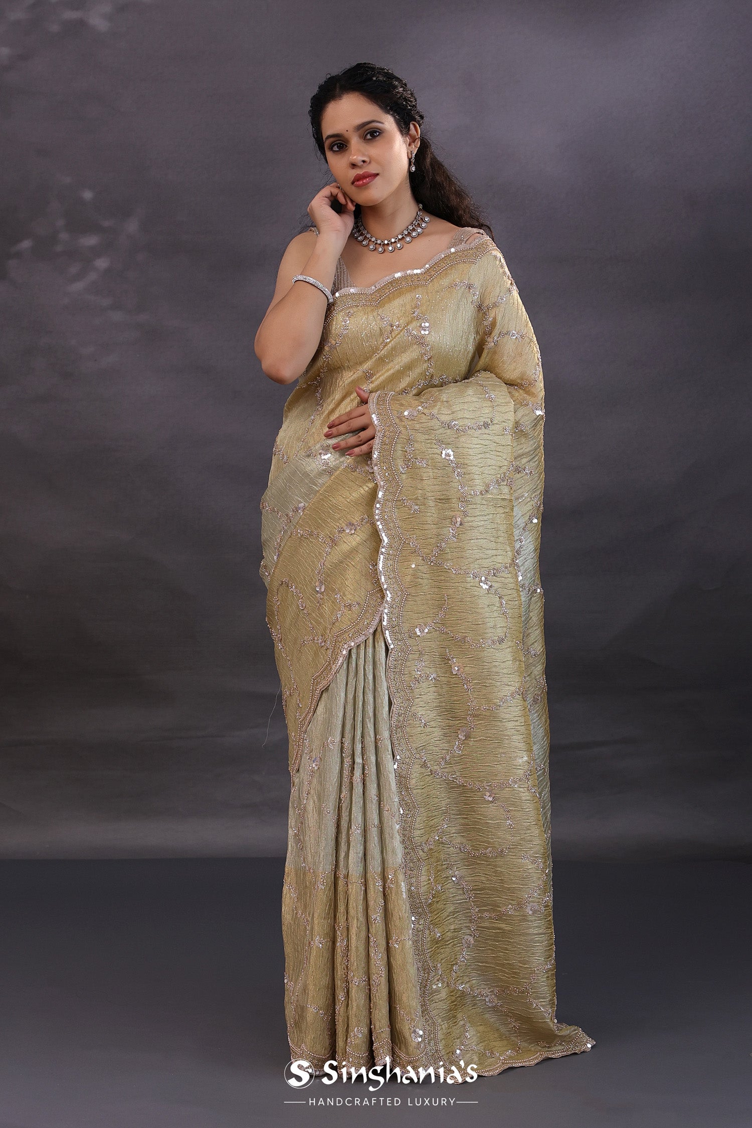The dual shade fancy tissue saree with floral sequin embroidery for an amazing look.