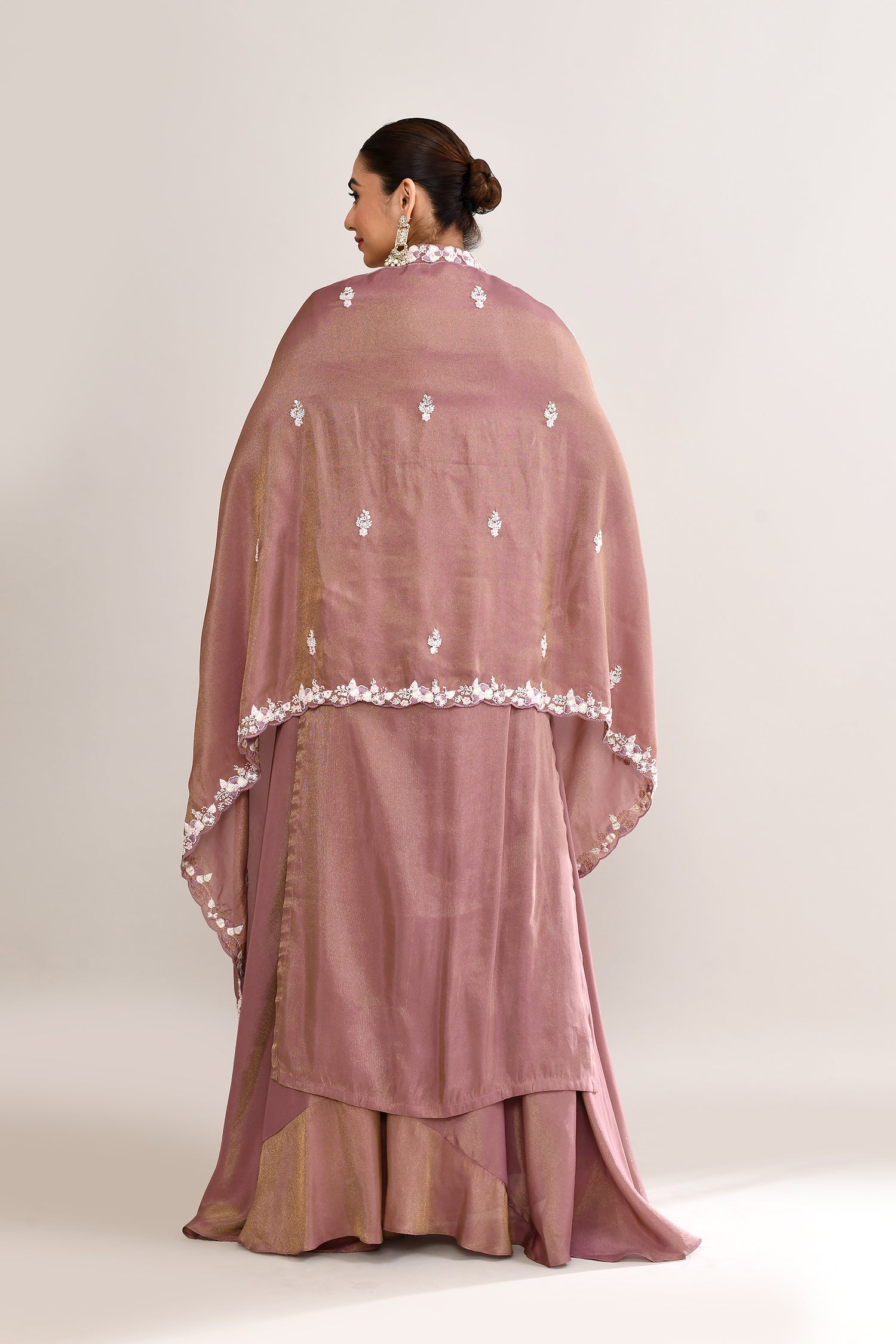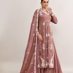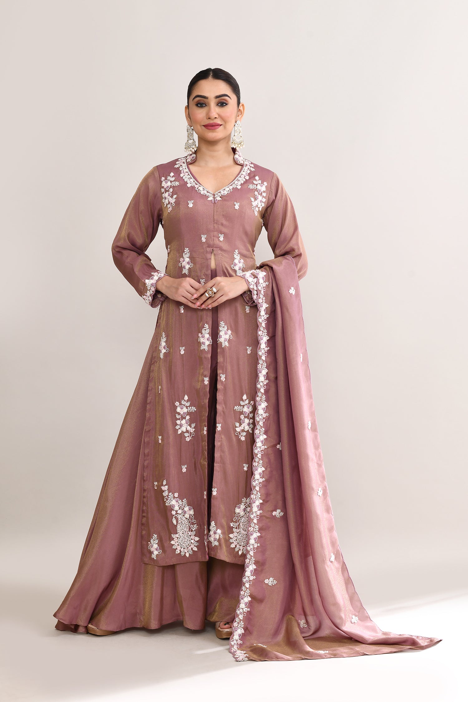 Dusty Rose Pink Tissue Georgette Embroidered Palazzo Set