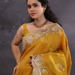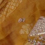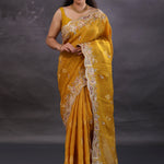 Dusty Yellow Banarasi Tissue Saree With Scallop Border