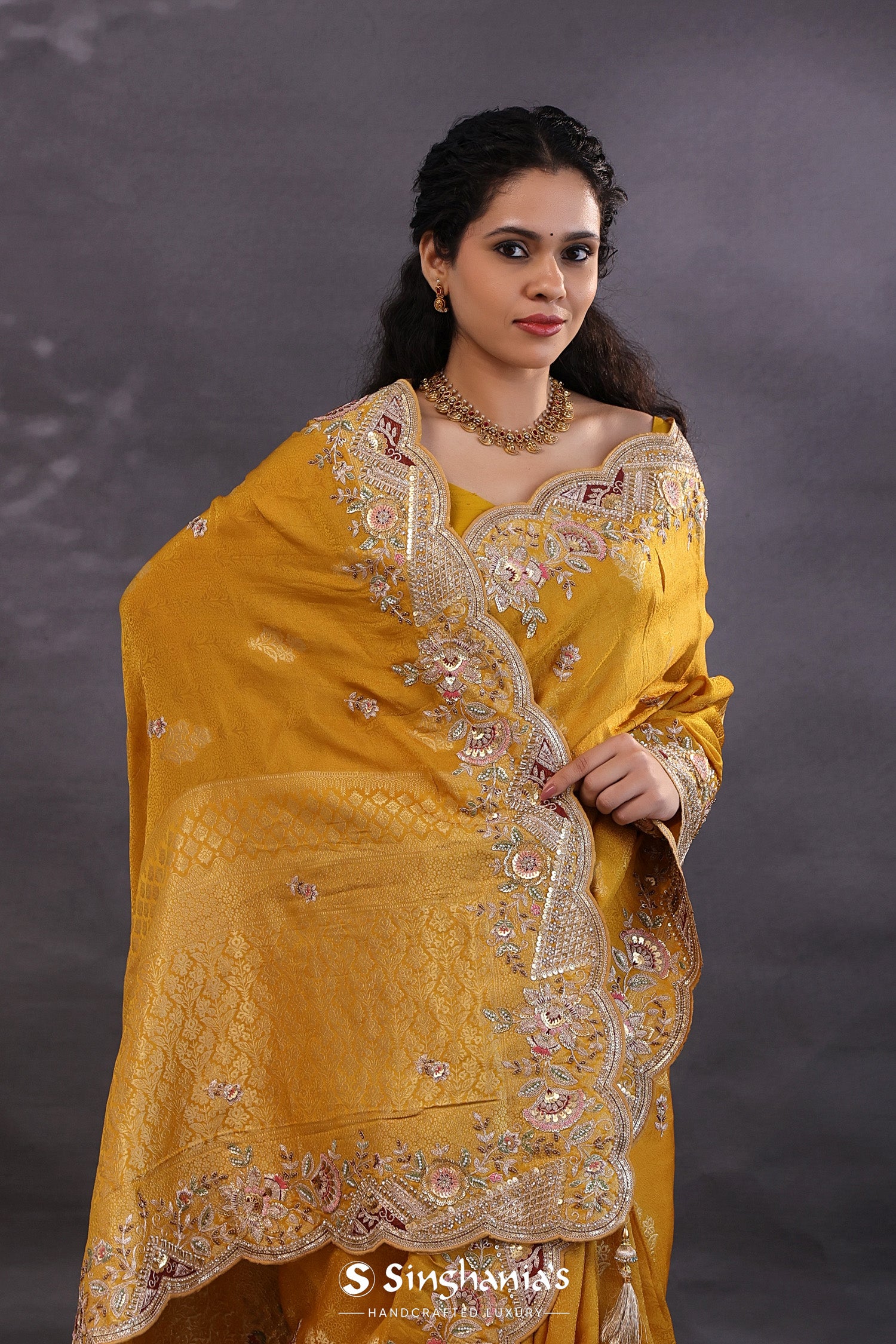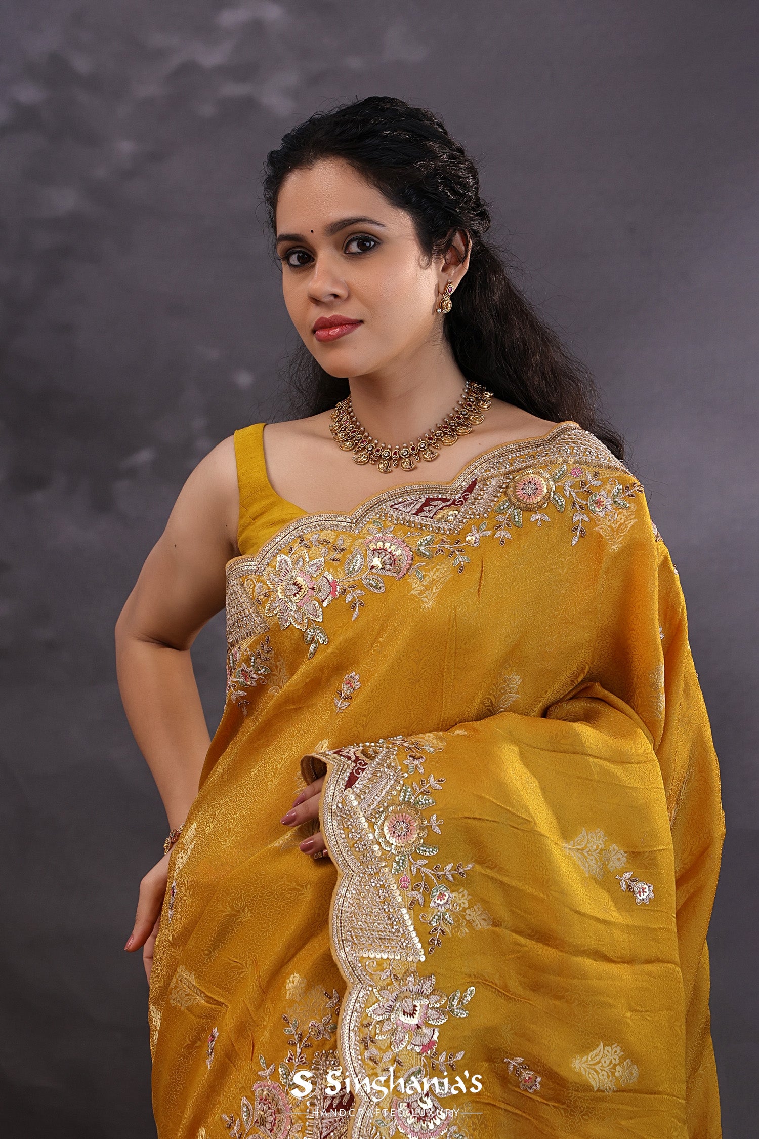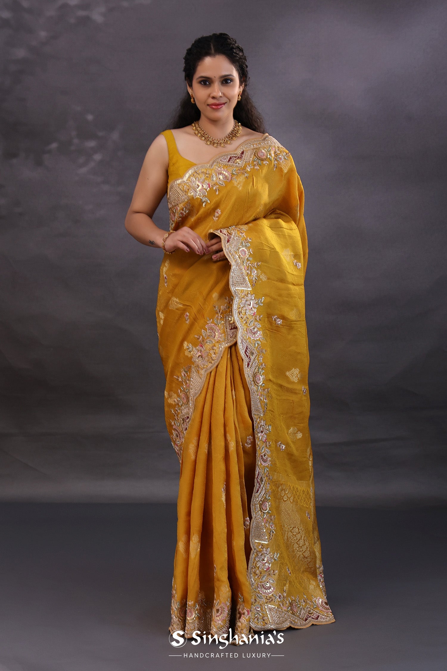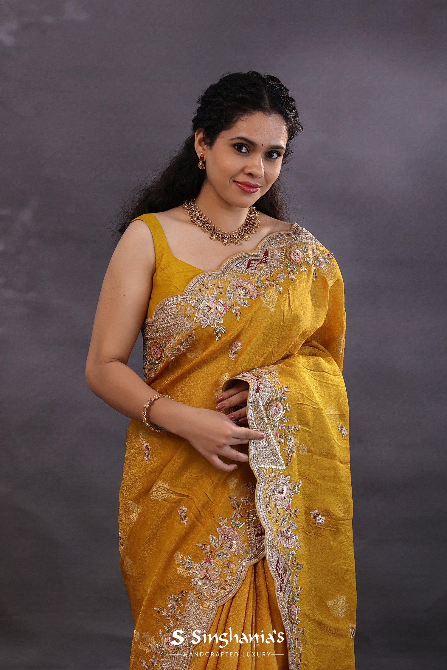 Pair with minimal jewellery and soft makeup to highlight the timeless elegance Singhaniaβs is known for.