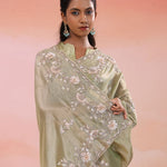 Earthy Sage Green Georgette Tissue Saree With Scallop Border