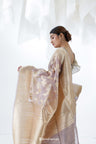 English Violet Jamdani Banarasi Organza Saree With Floral Design.