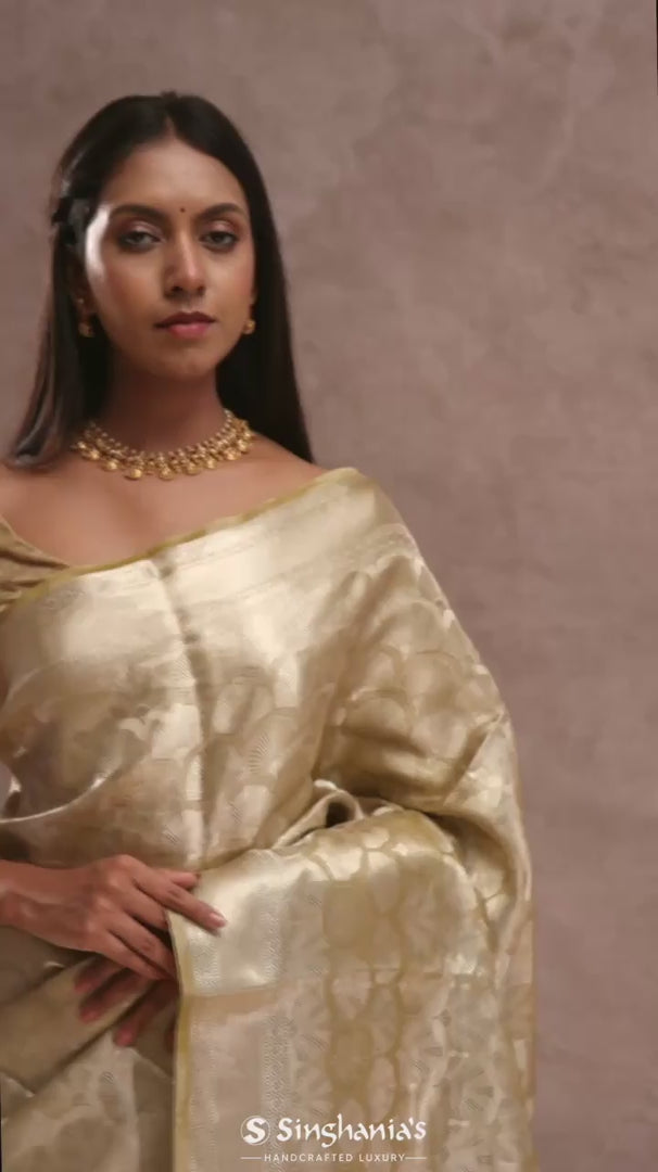 Fawn Yellow Tiissue Organza Banarasi Saree With Gold Zari Work