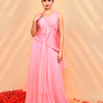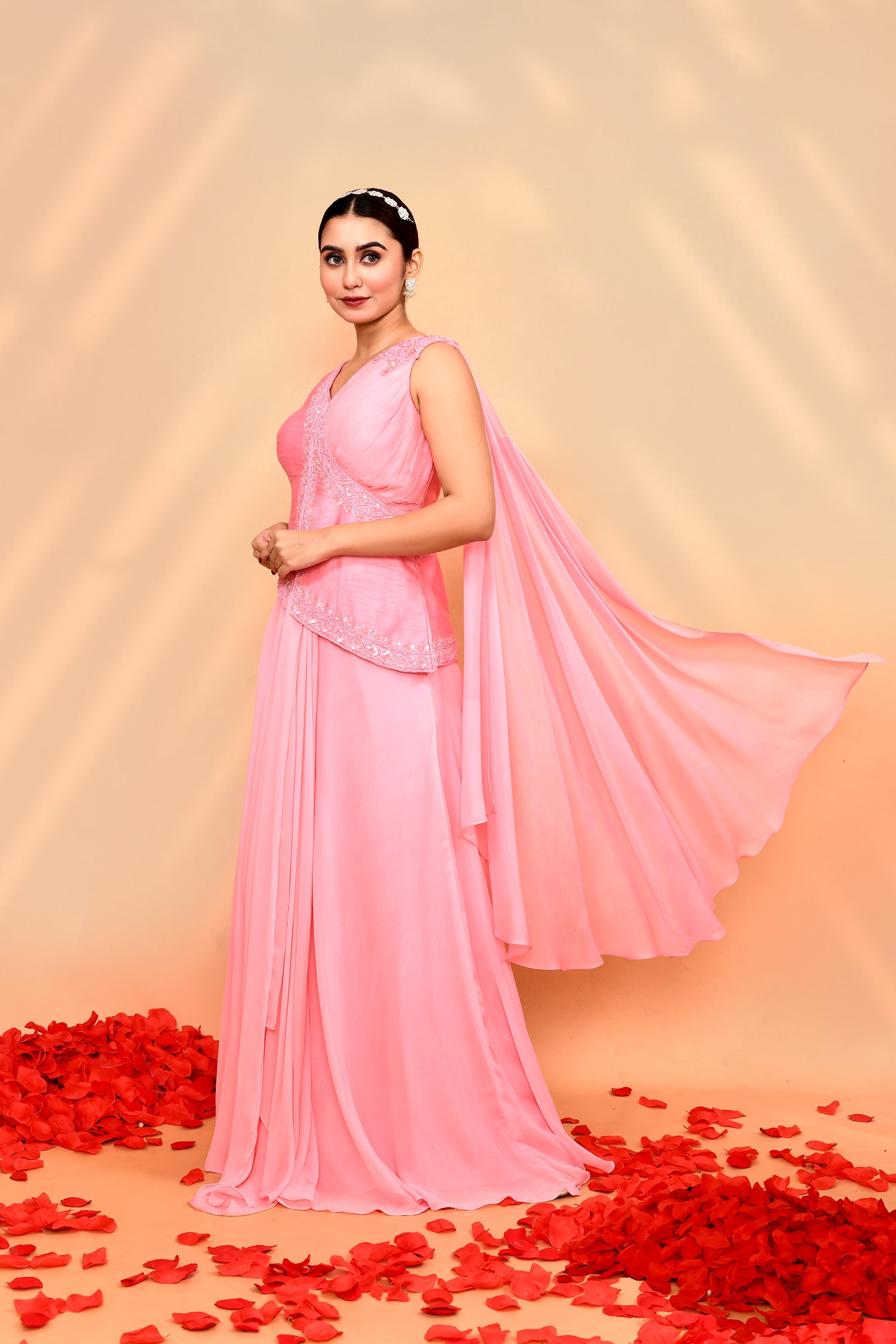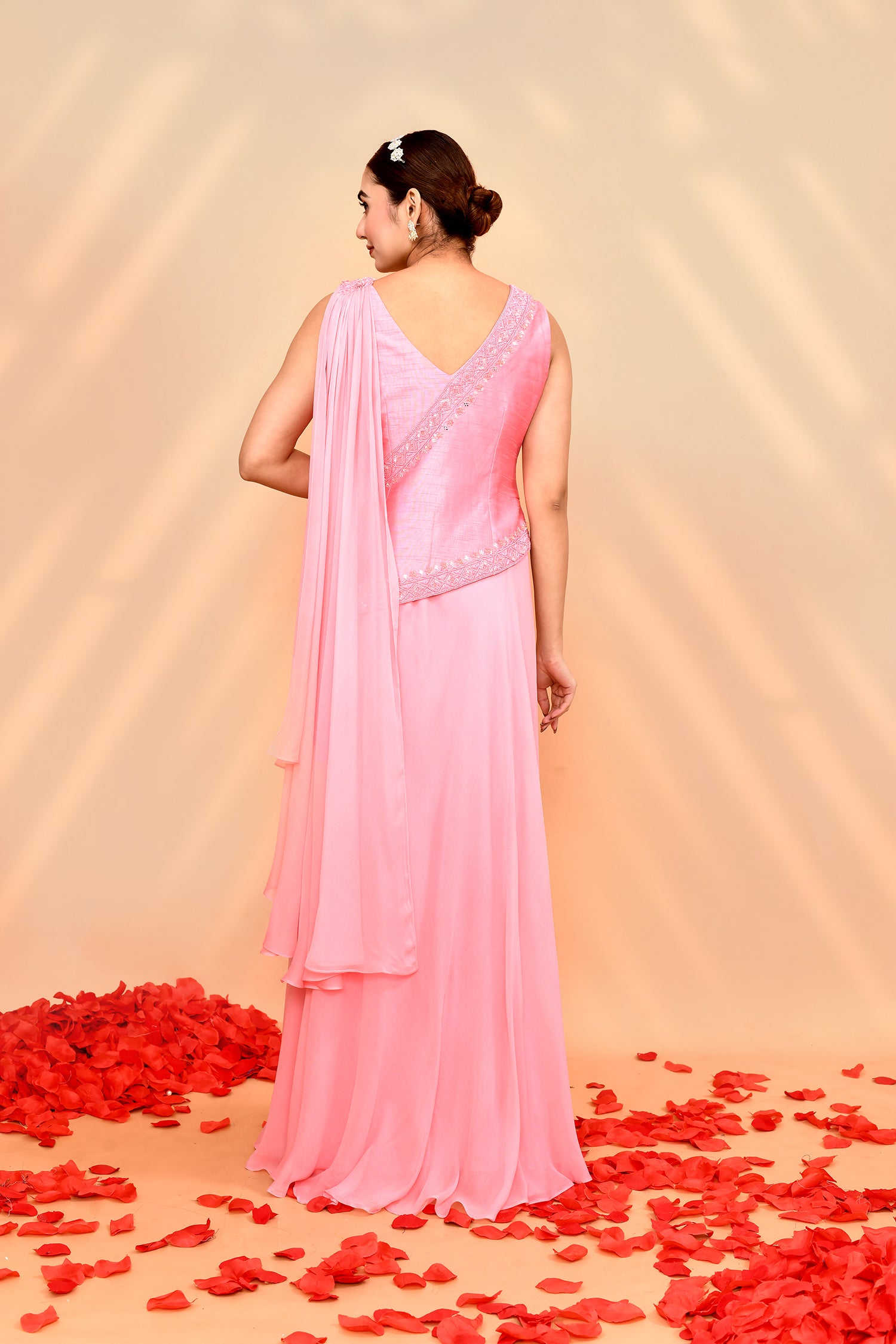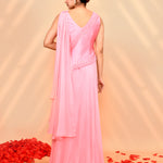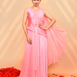 Flamingo Pink Crepe Silk Solid Draped Saree