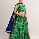 Forest Green Cotton Silk Ikat Printed Lehenga Set
