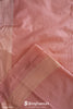 This geranium pink banarasi silk saree features a traditional floral butta in ogival pattern in gold zari weave across the body. The understated geometric border and pallu complete its charming look. Suitable for any woman and perfect for festive or wedding wear.