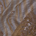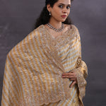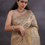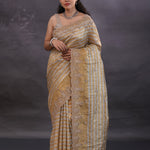 Golden And Silver Stripes Fancy Tissue Saree With Scallop Border