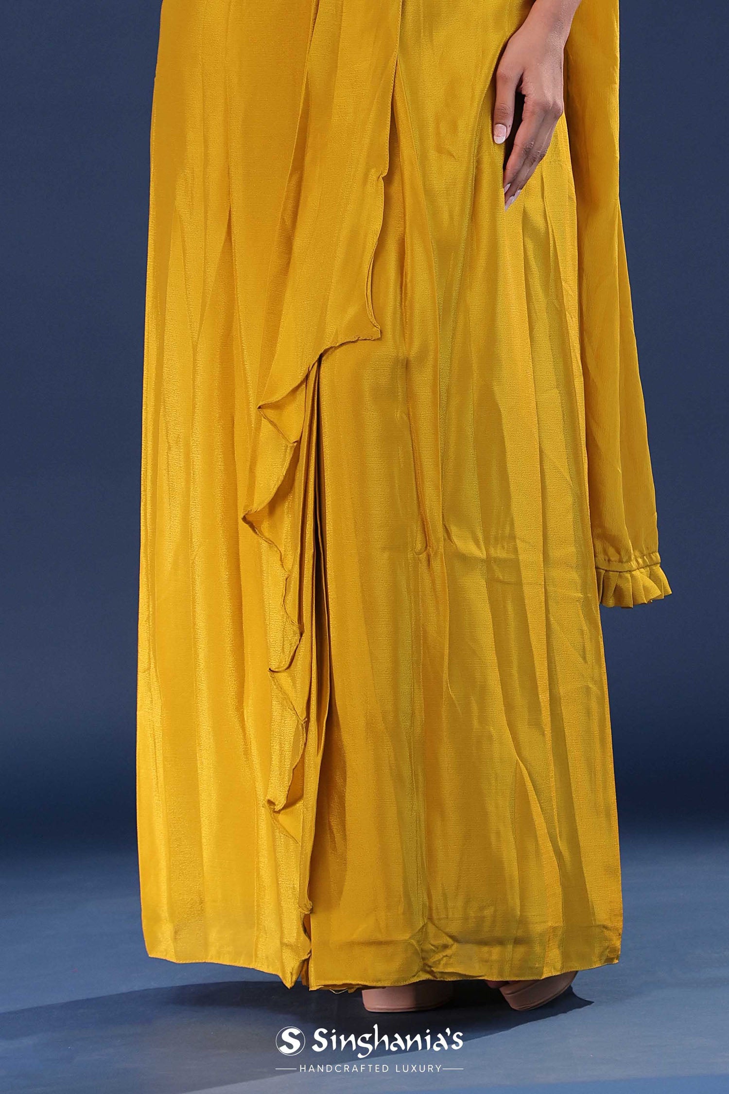 Golden Poppy Yellow Chinon Crepe Indo-Western Set