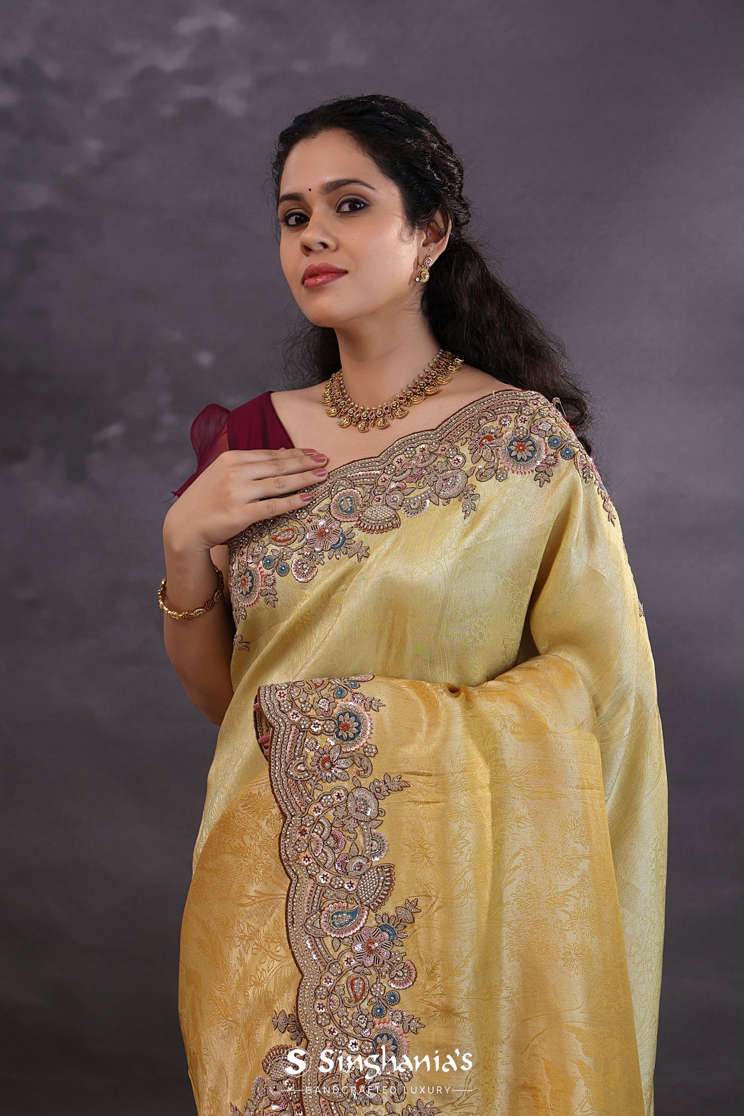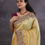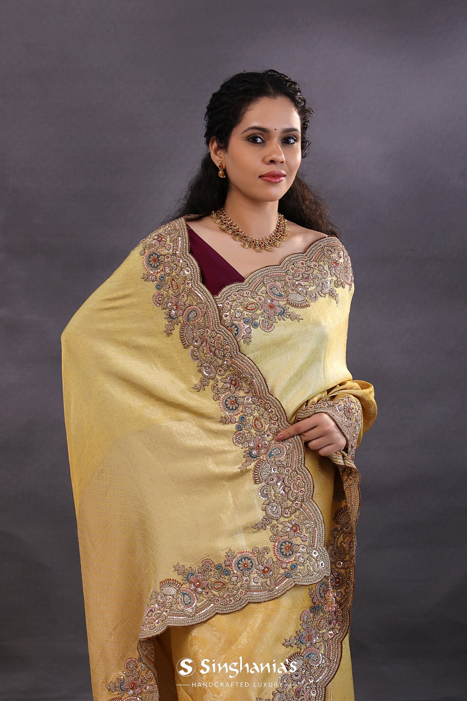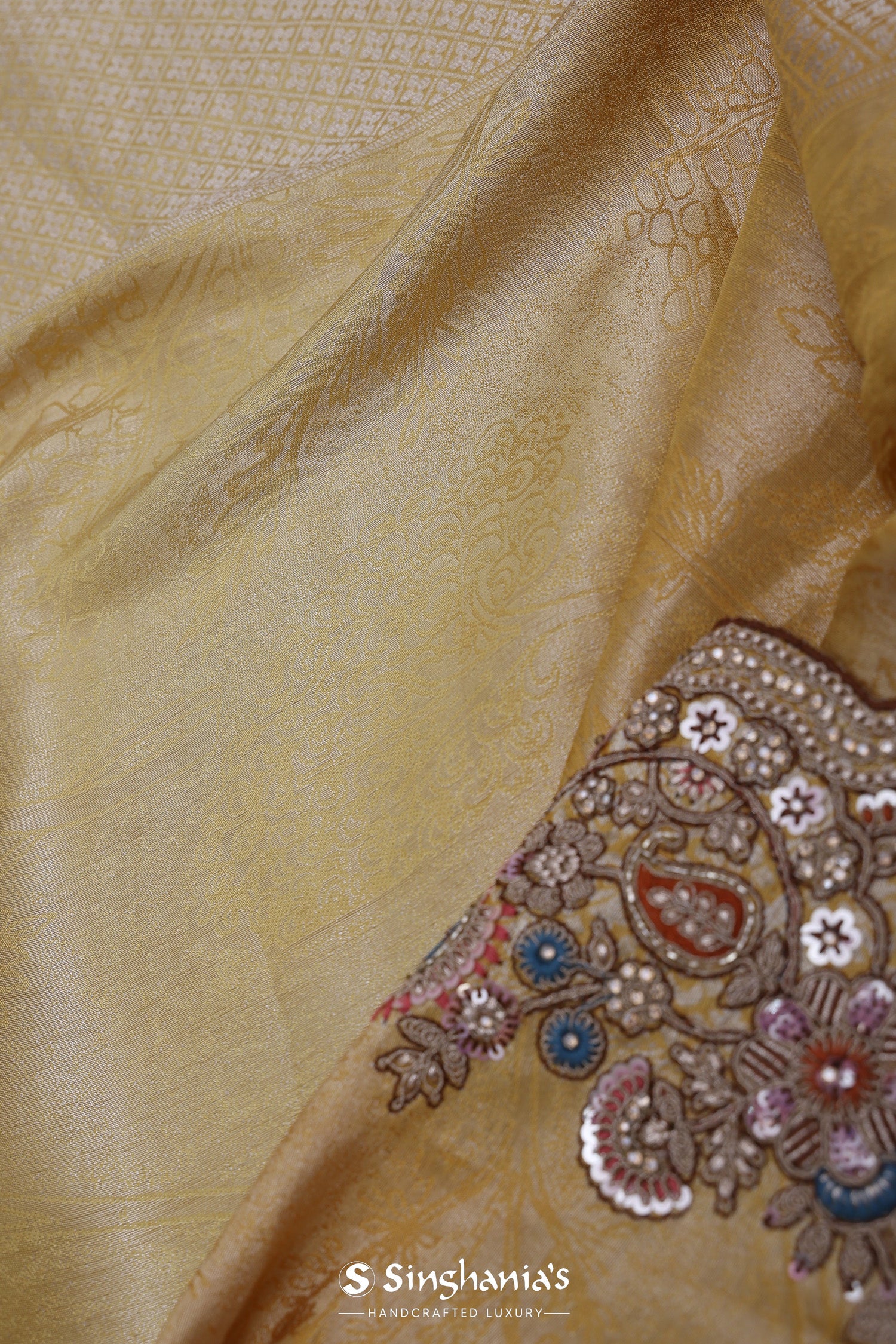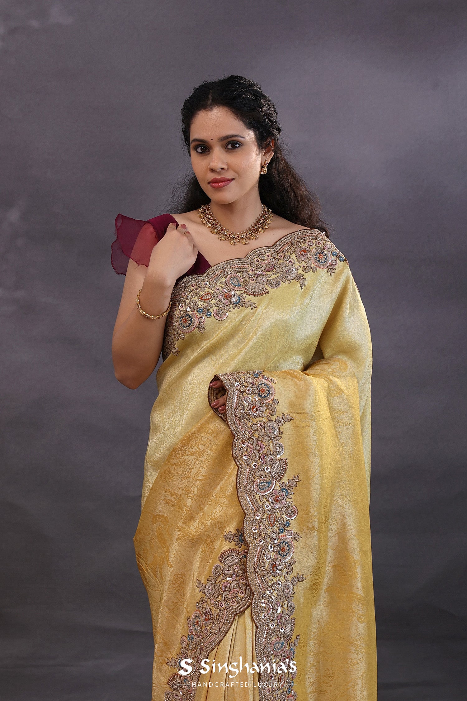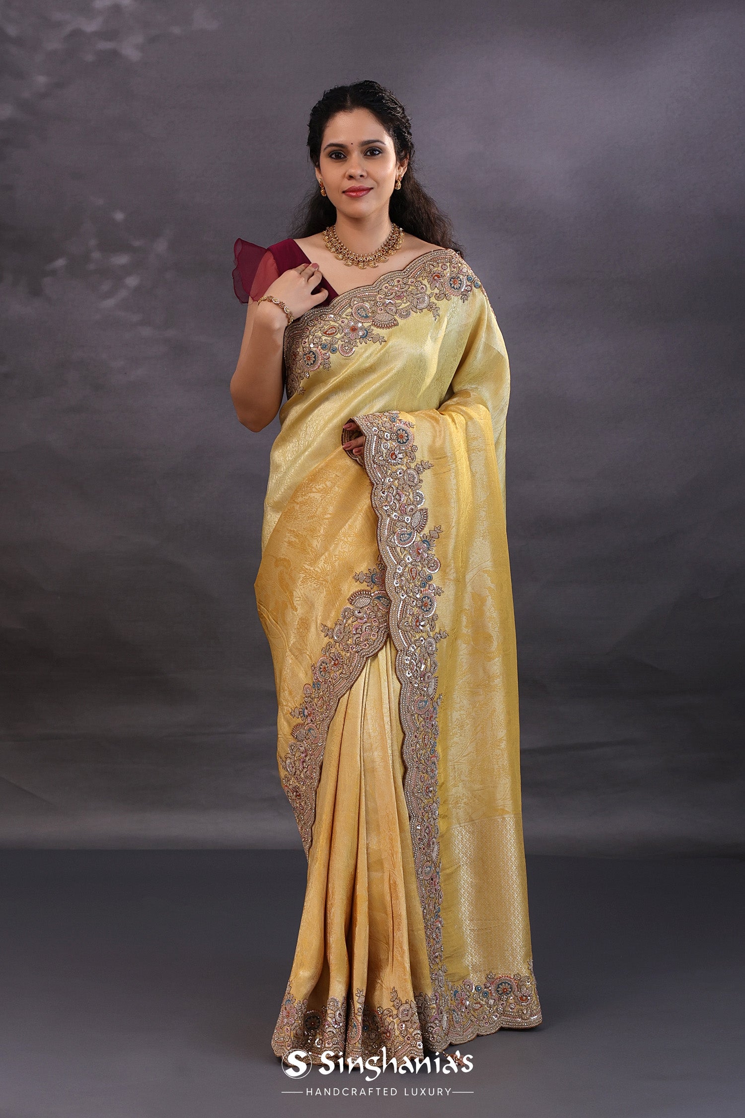 Golden Yellow Banarasi Tissue Saree With Scallop Border