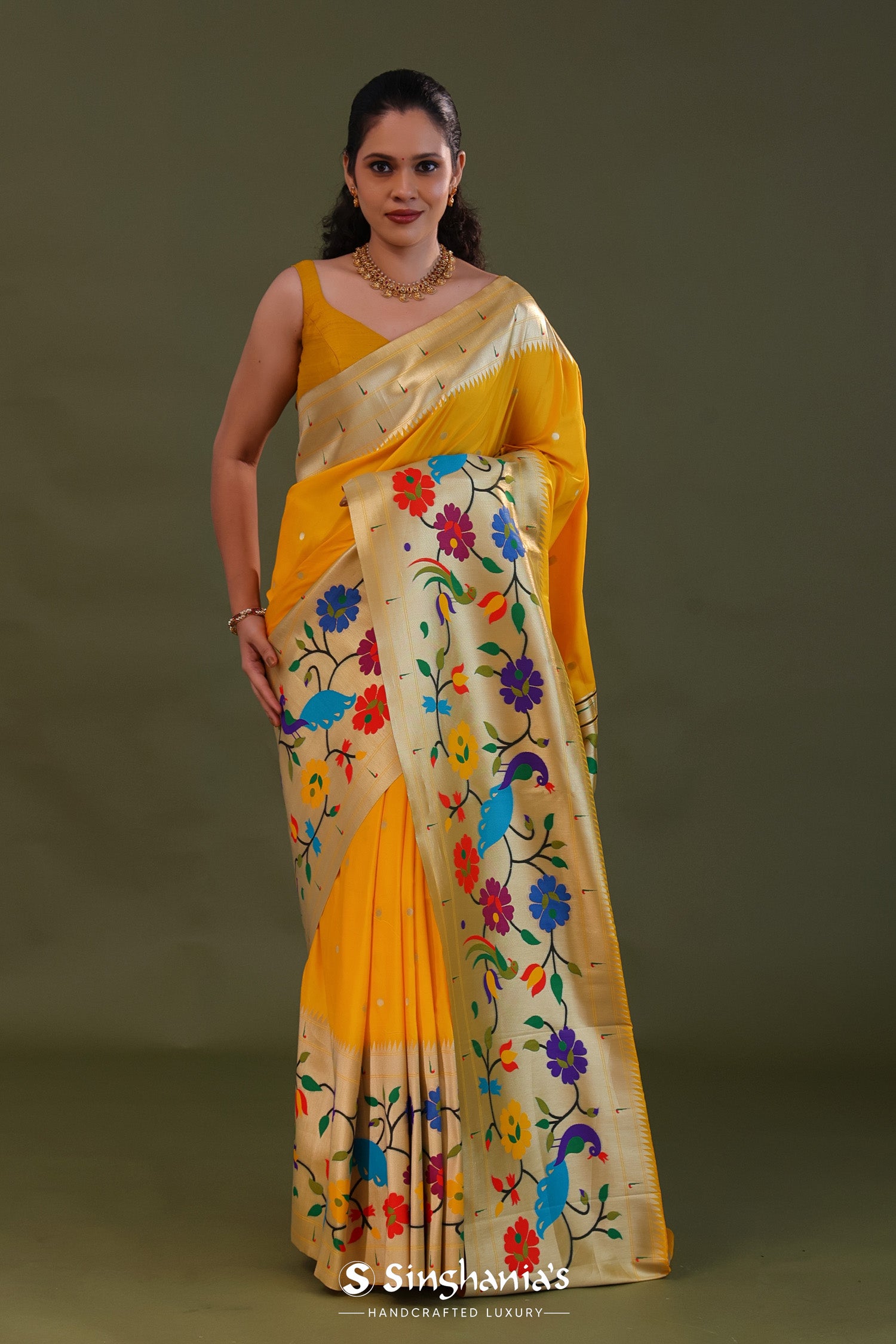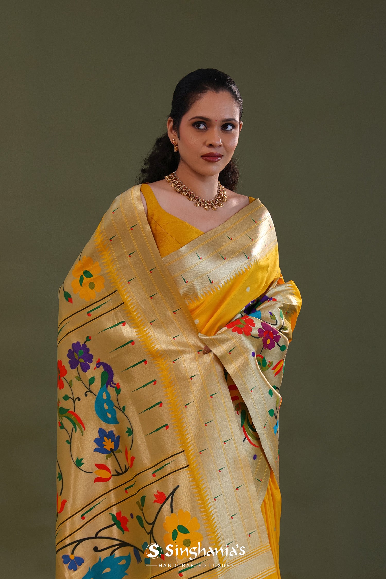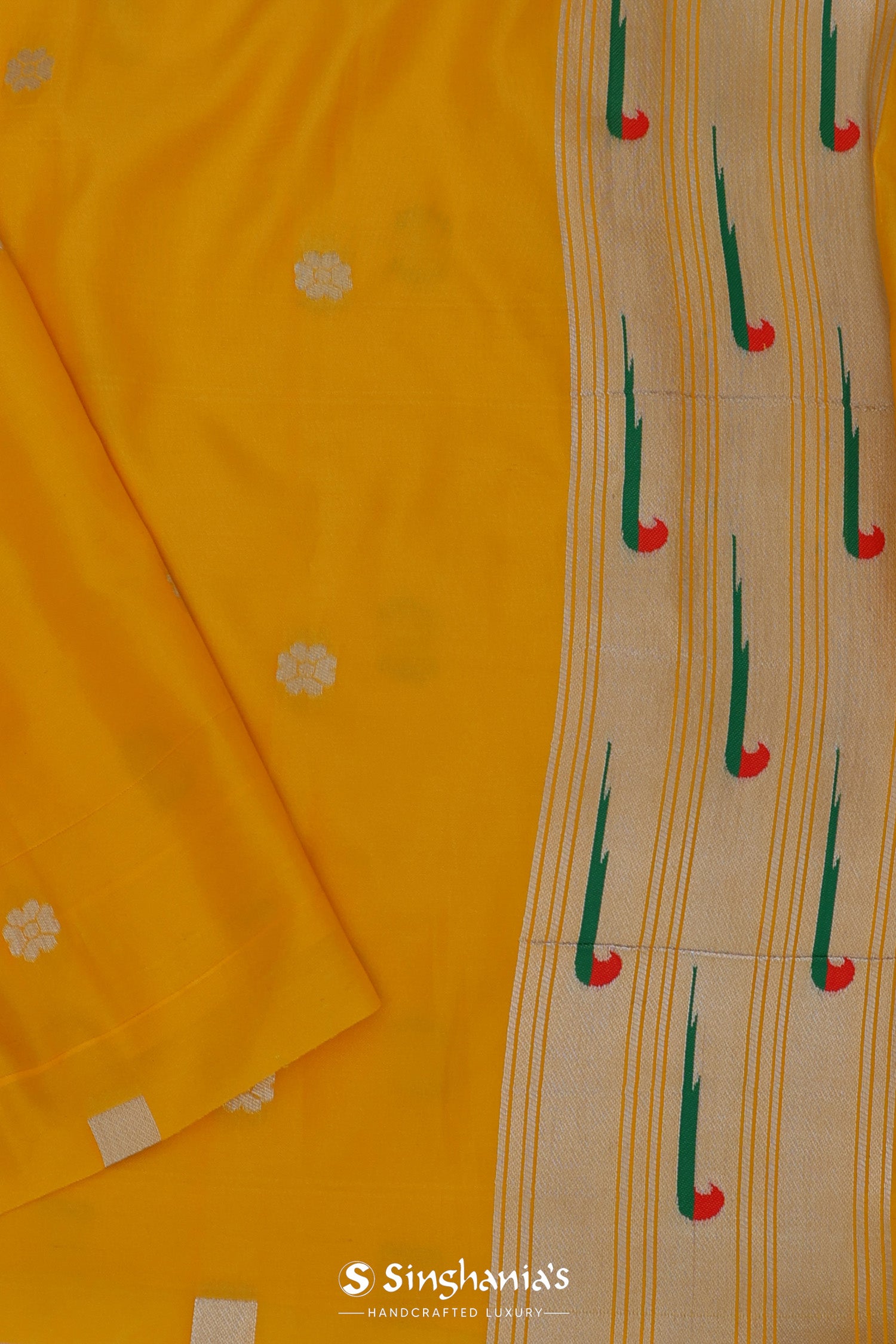 Golden Yellow Paithani Saree With Butti'S