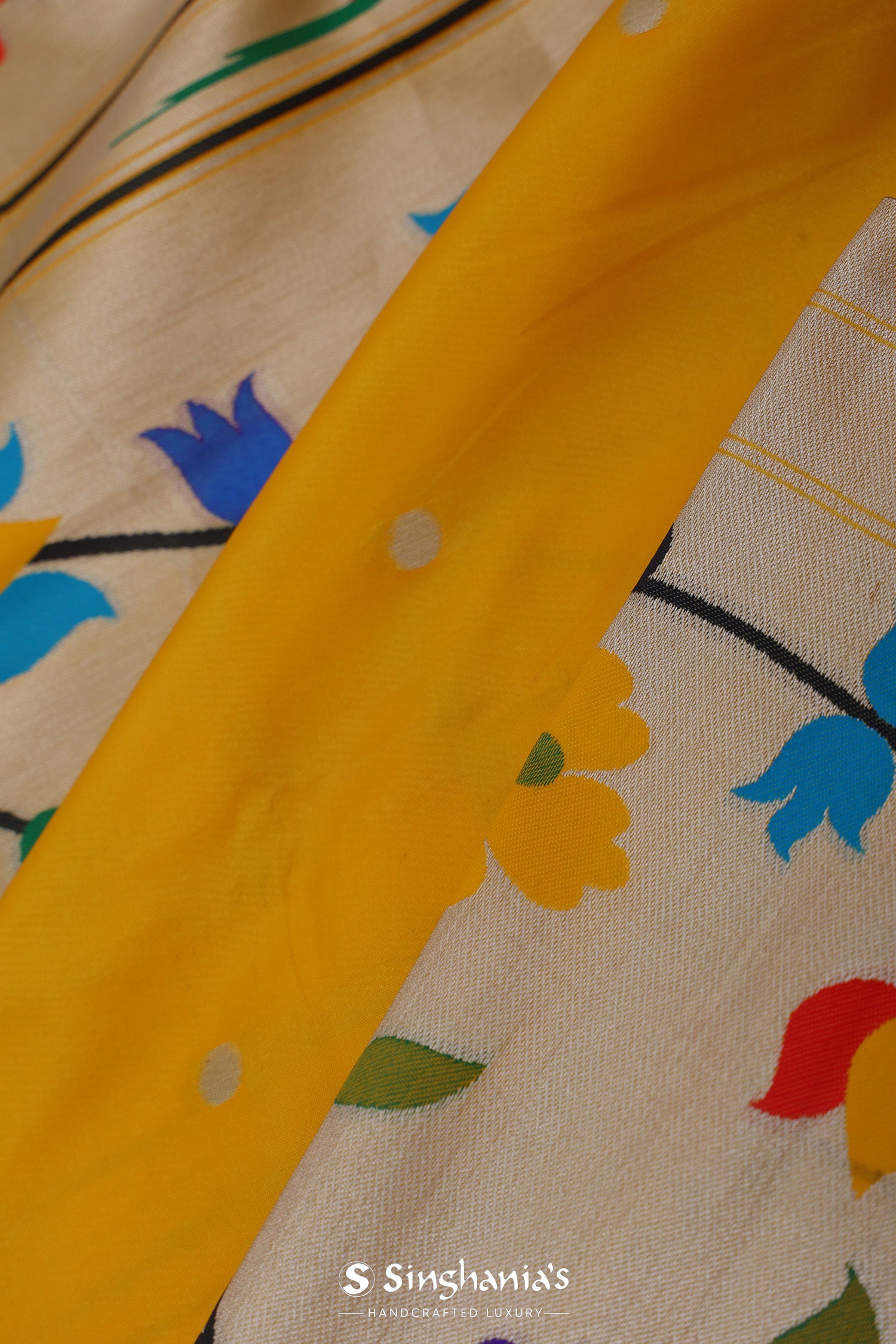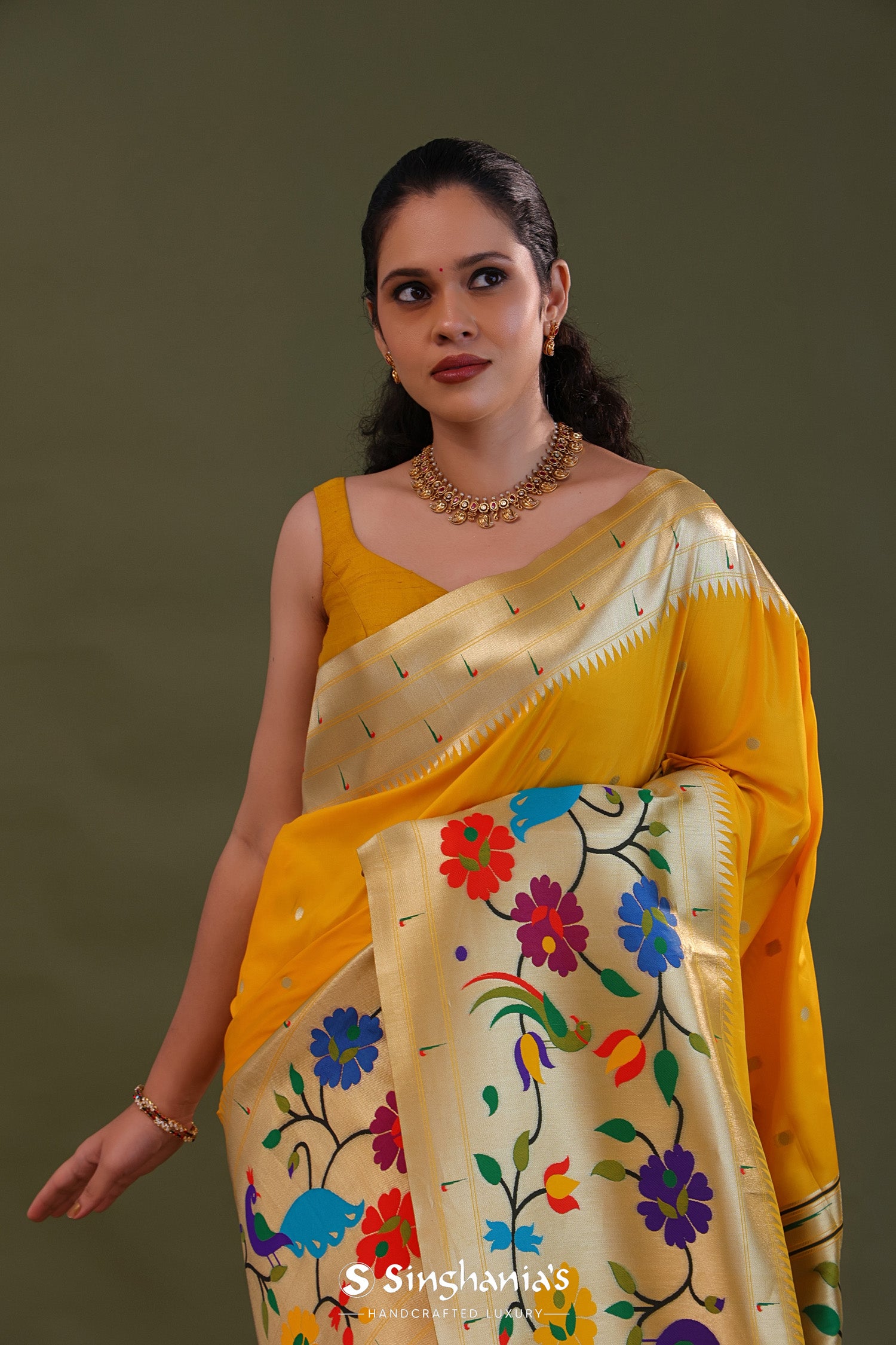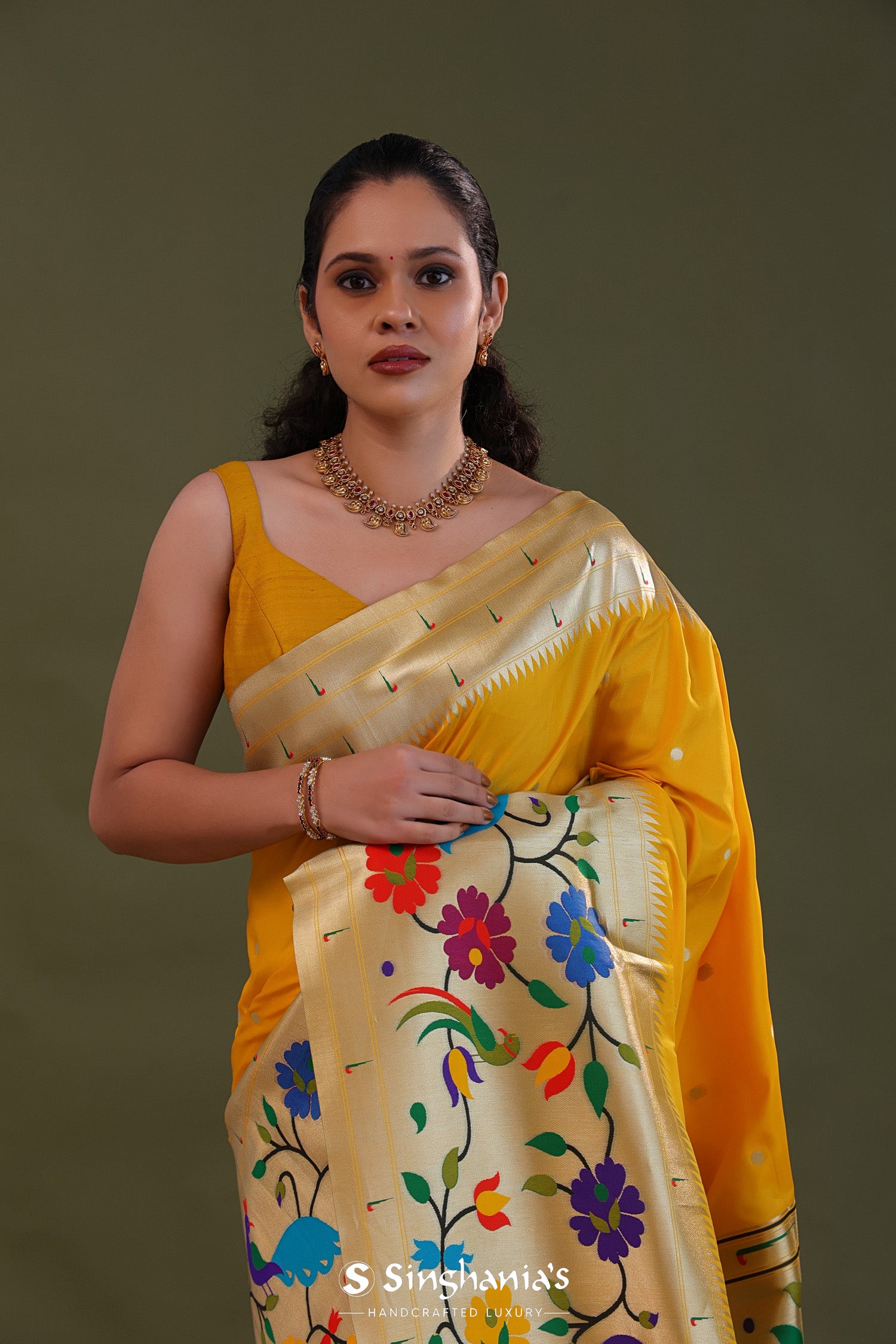Golden Yellow Paithani Saree With Butti'S