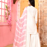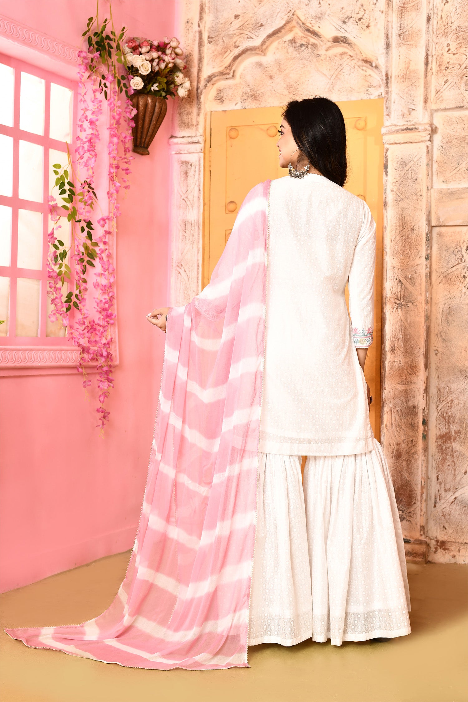 Ivory Neck Embroidered Kurta And Gharara With Pink Dupatta