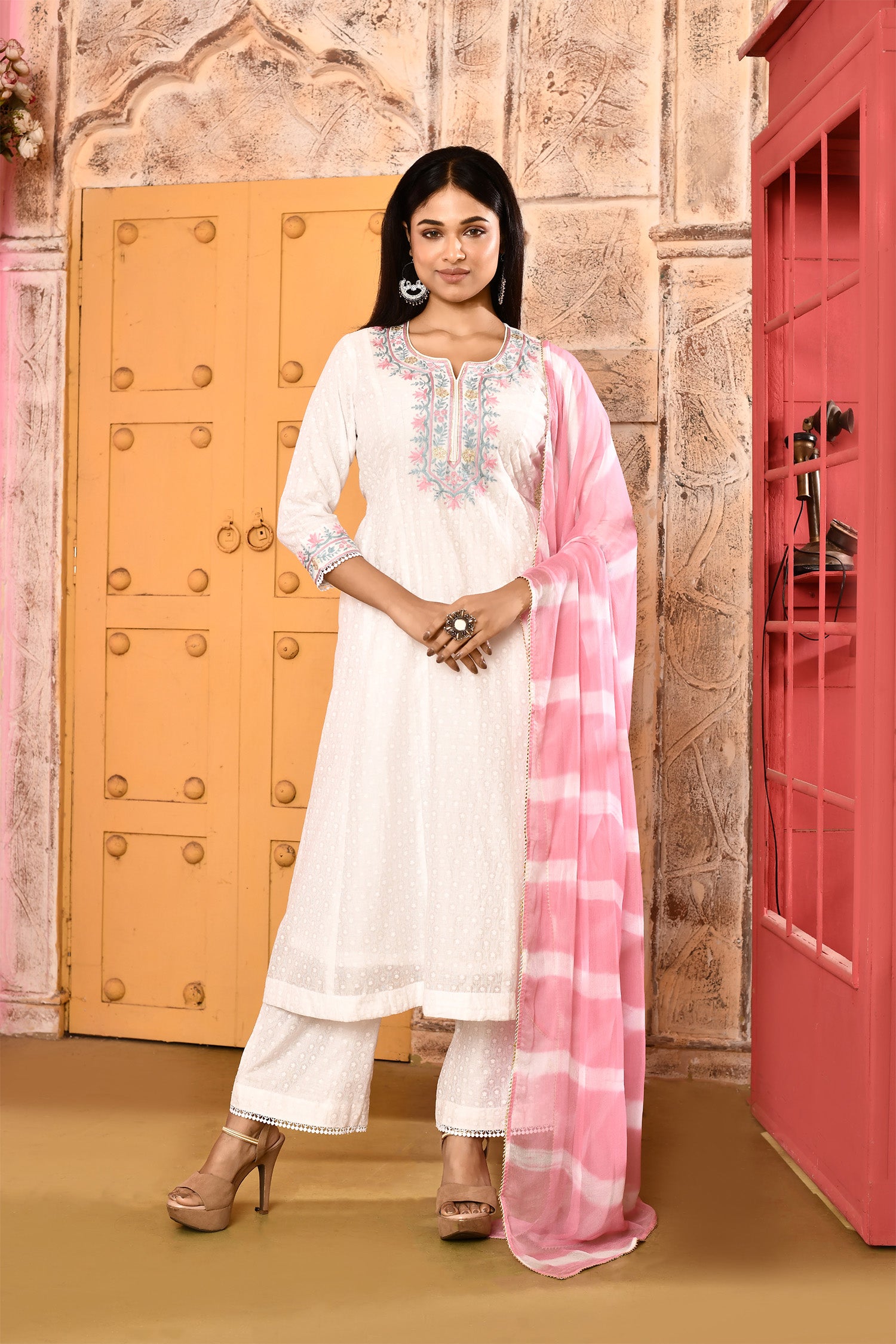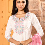 Ivory Neck Embroidered Kurta And Palazzo With Pink Dupatta