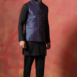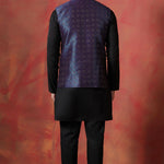 Jute Black Kurta Set With Jacquard Embroidered Nehru Jacket