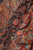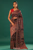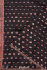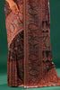 This delightful saree is crafted from moonga silk and features the broad border and floral jaal & spire kani weave from Kashmir. The attractive cool black colour is perfect for special occasions. The saree comes with a matching blouse piece.