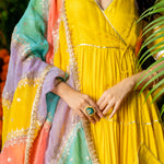 Lemon Yellow Uppada Silk Solid Anarkali Set