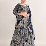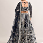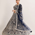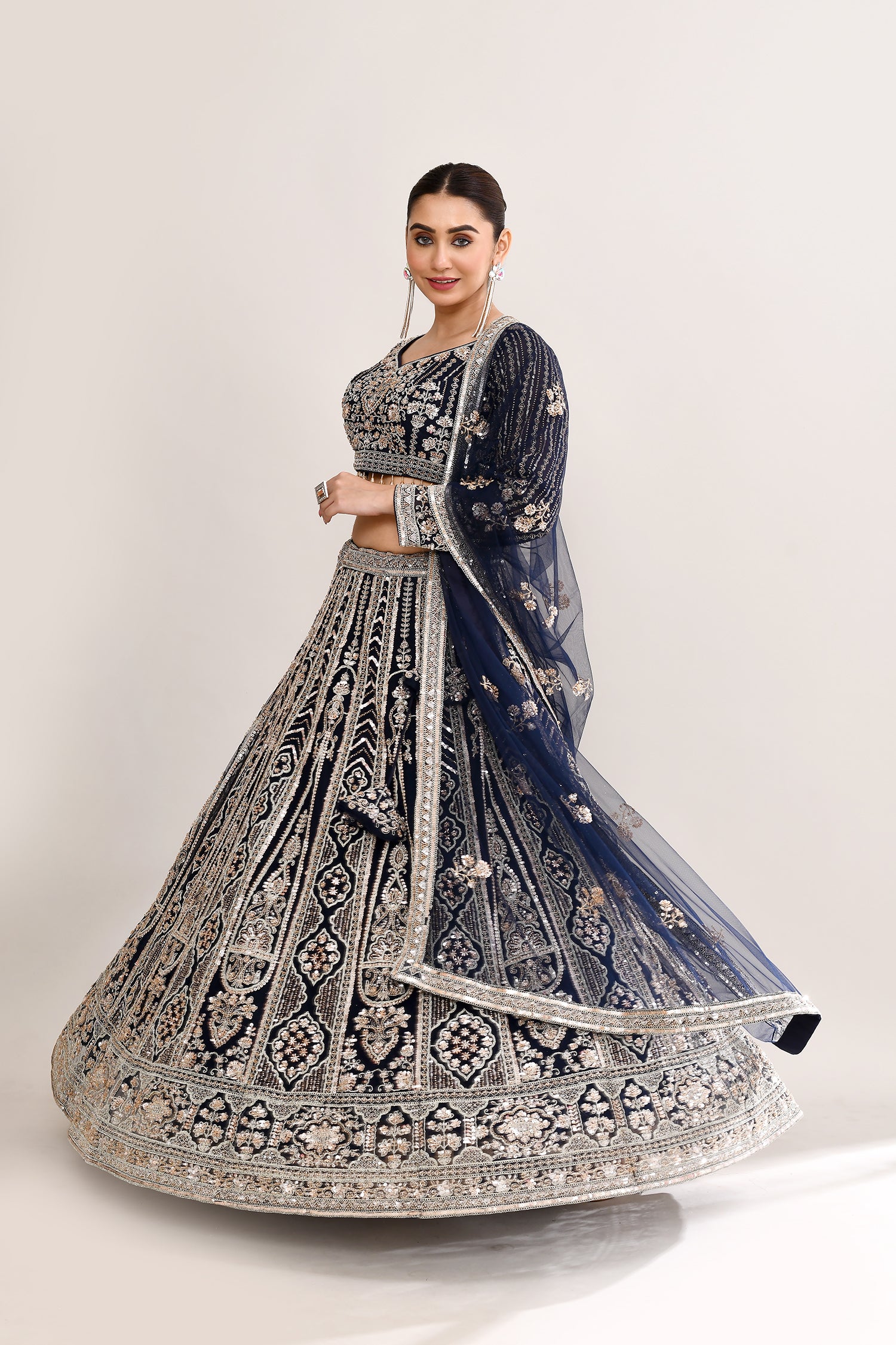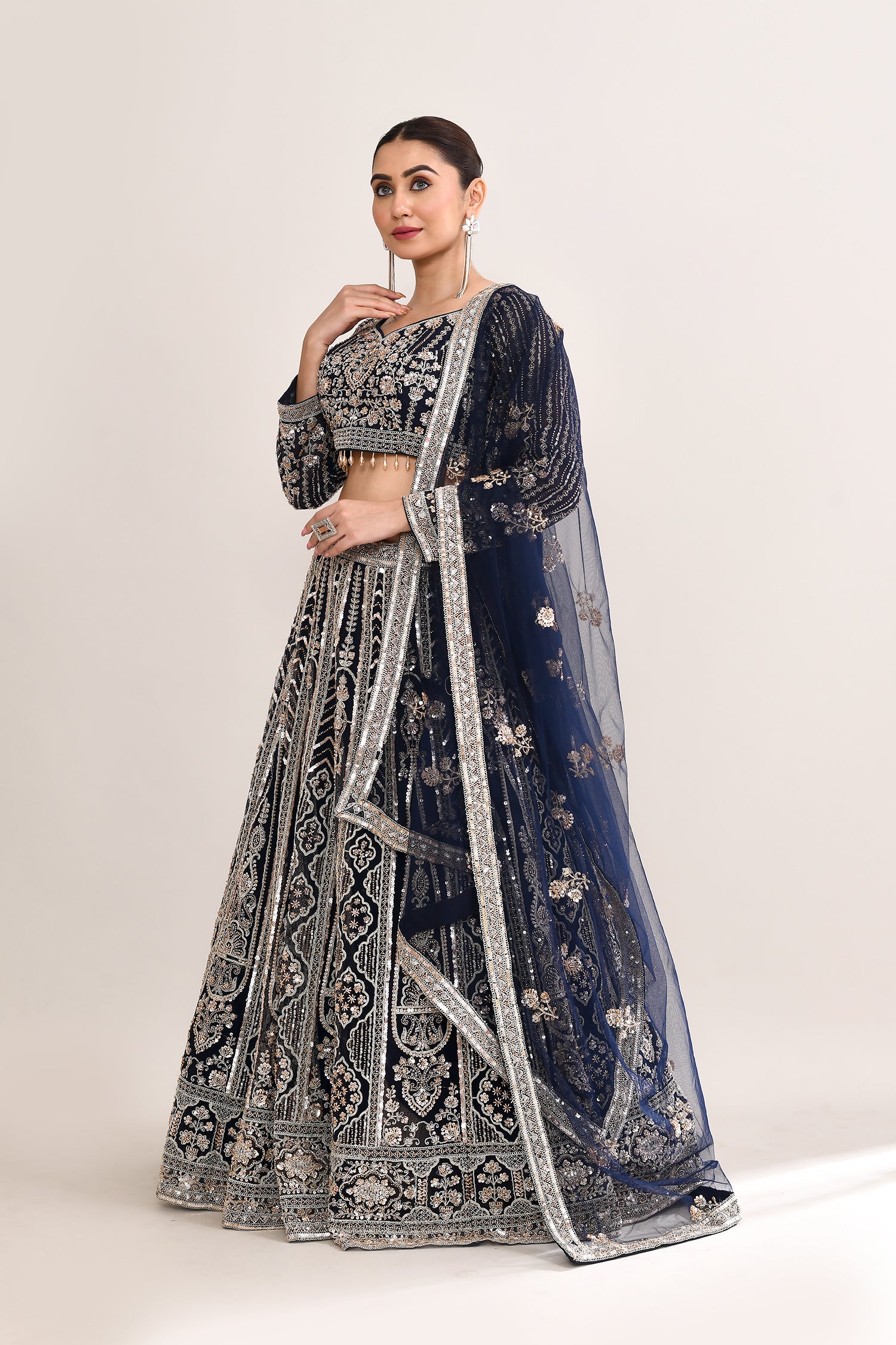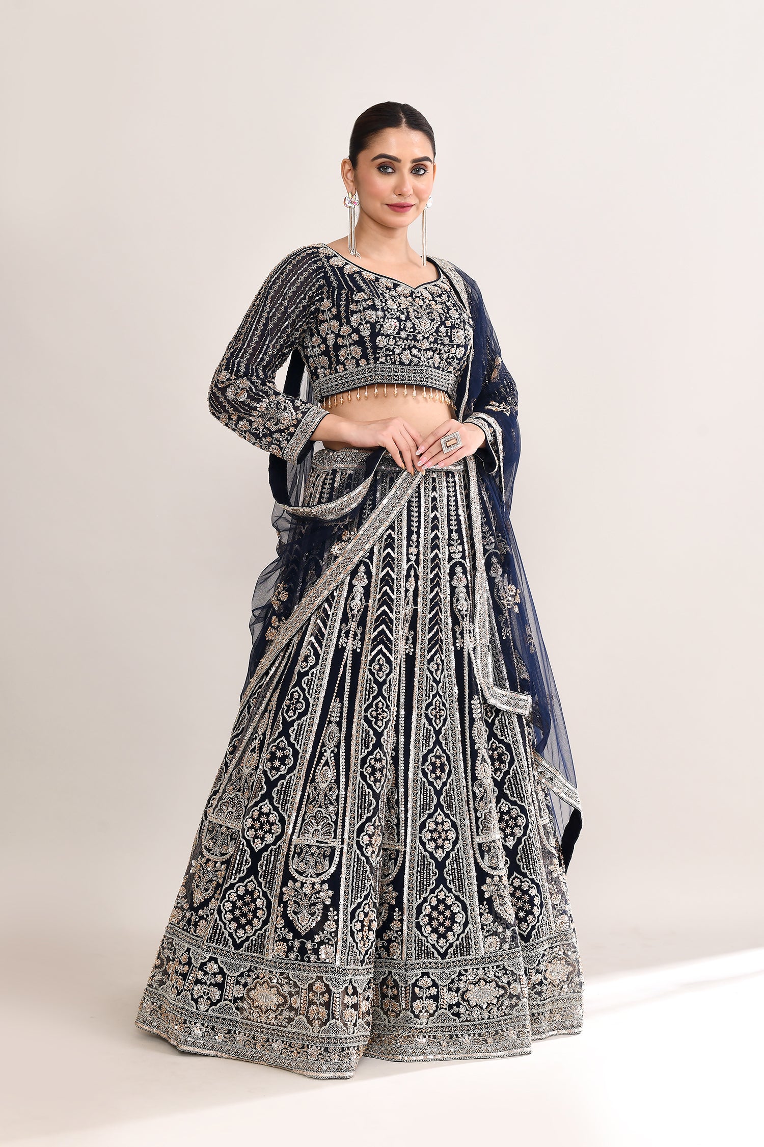 The midnight blue net lehenga set with hand work sequin and cutdana embroidery for a stunning look with grace.