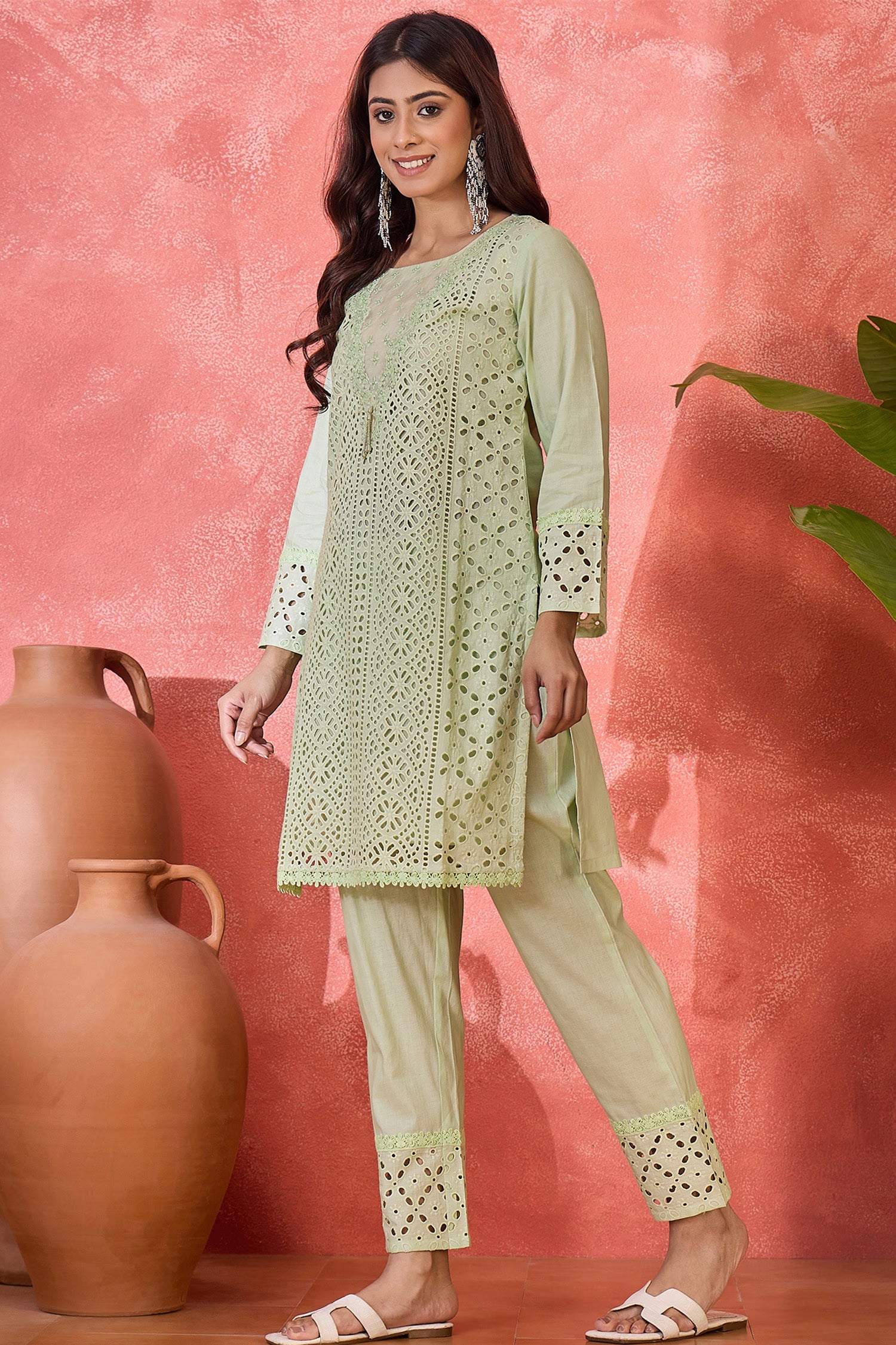 Mint Green Cotton Thread Work Kurta Set