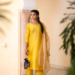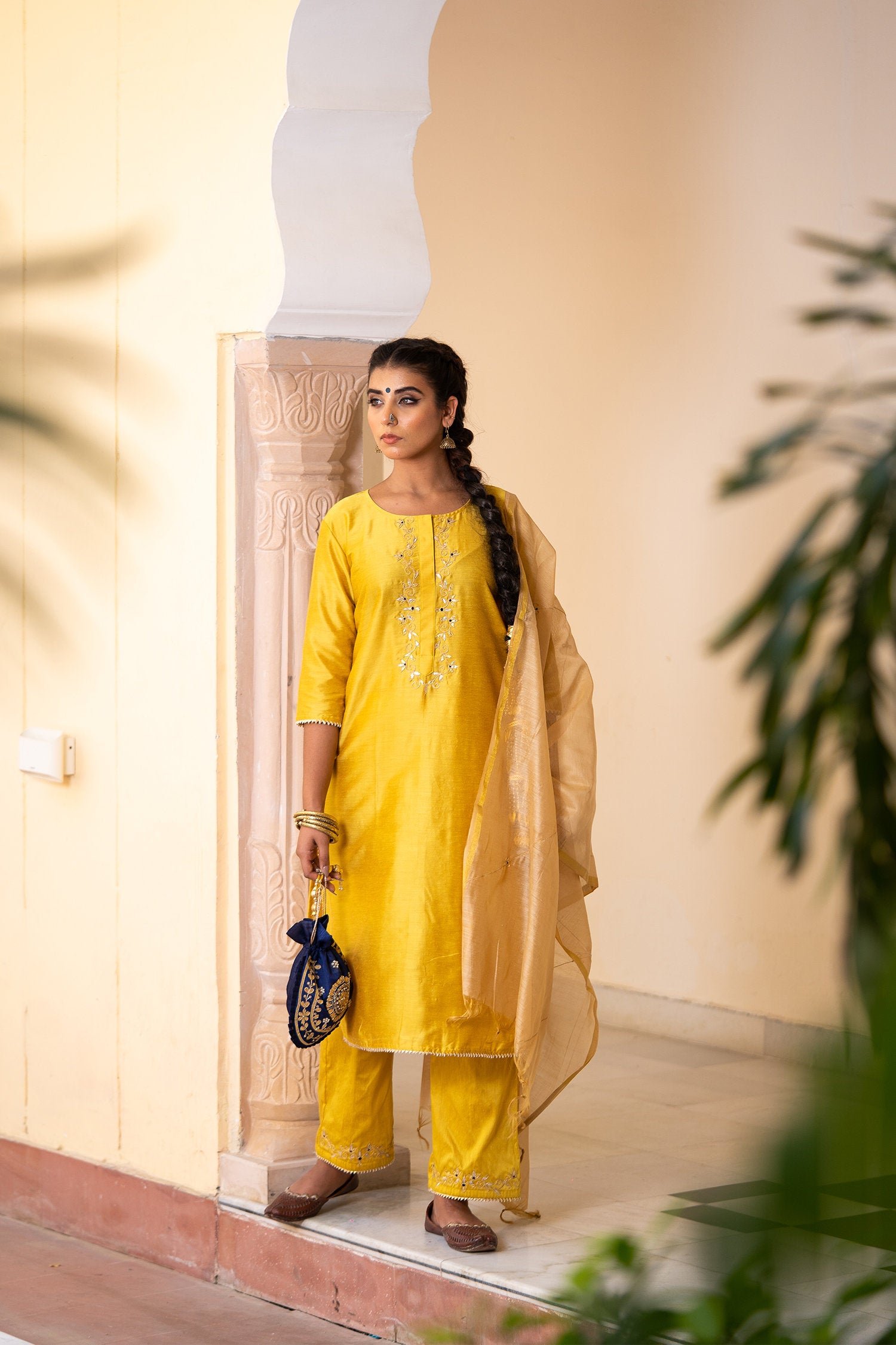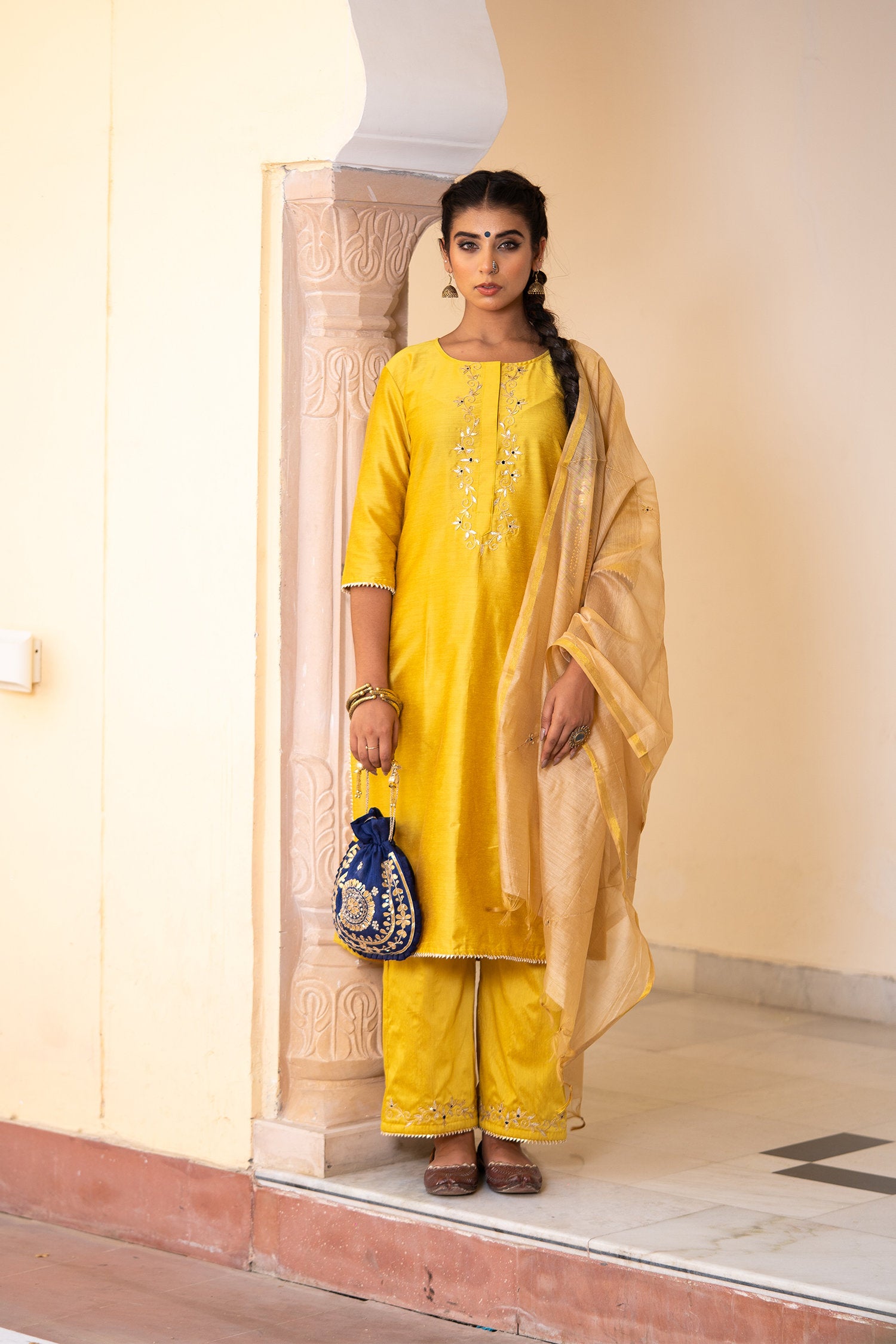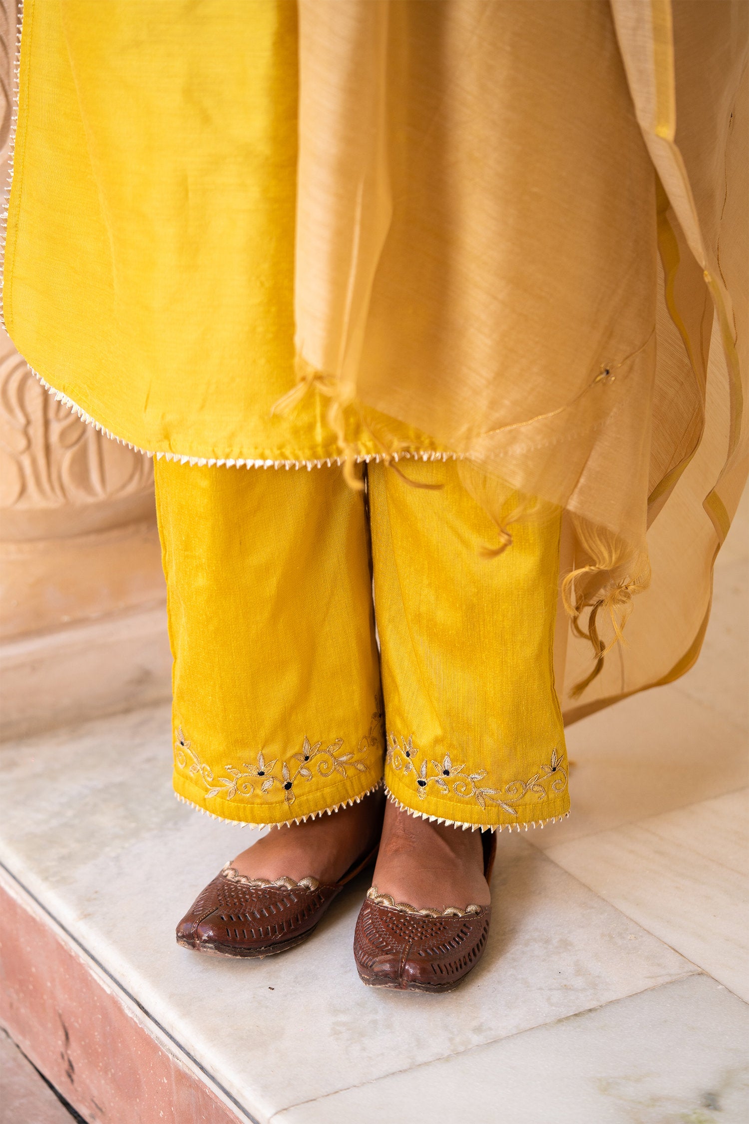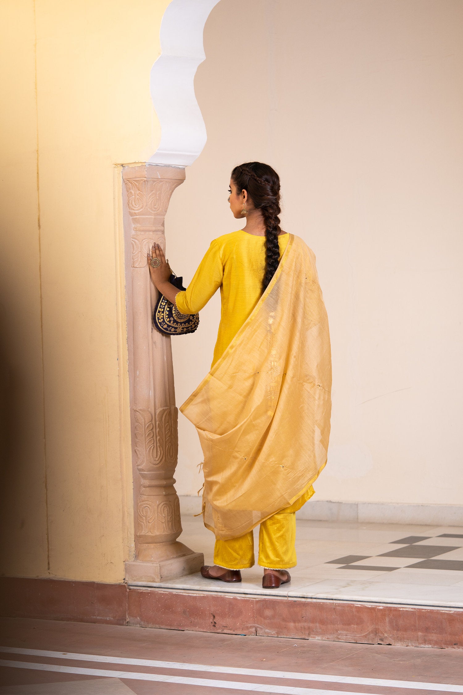 Minted Yellow Cotton Silk Gota Patti Suit Set