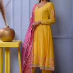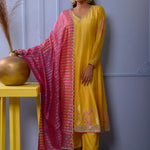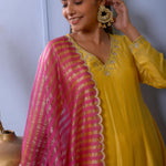 Mustard Yellow Cotton Silk Anarkali Set