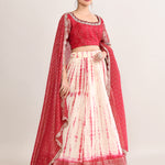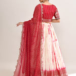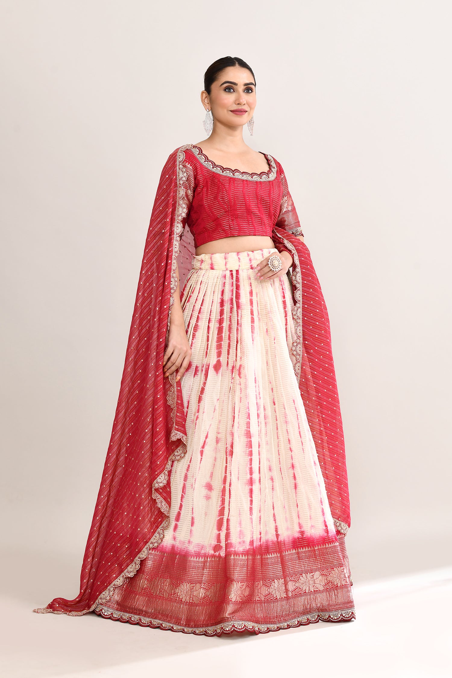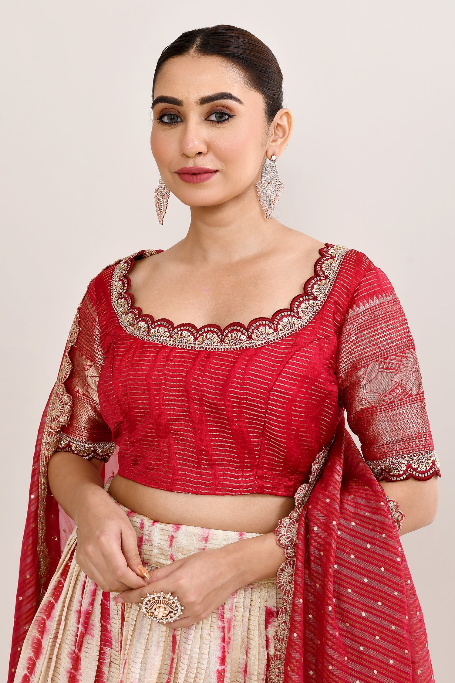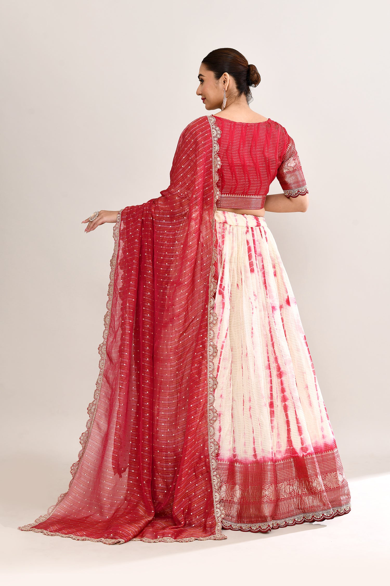 The off white and red raw silk lehenga set with organza dupatta for a beautiful look with grace.