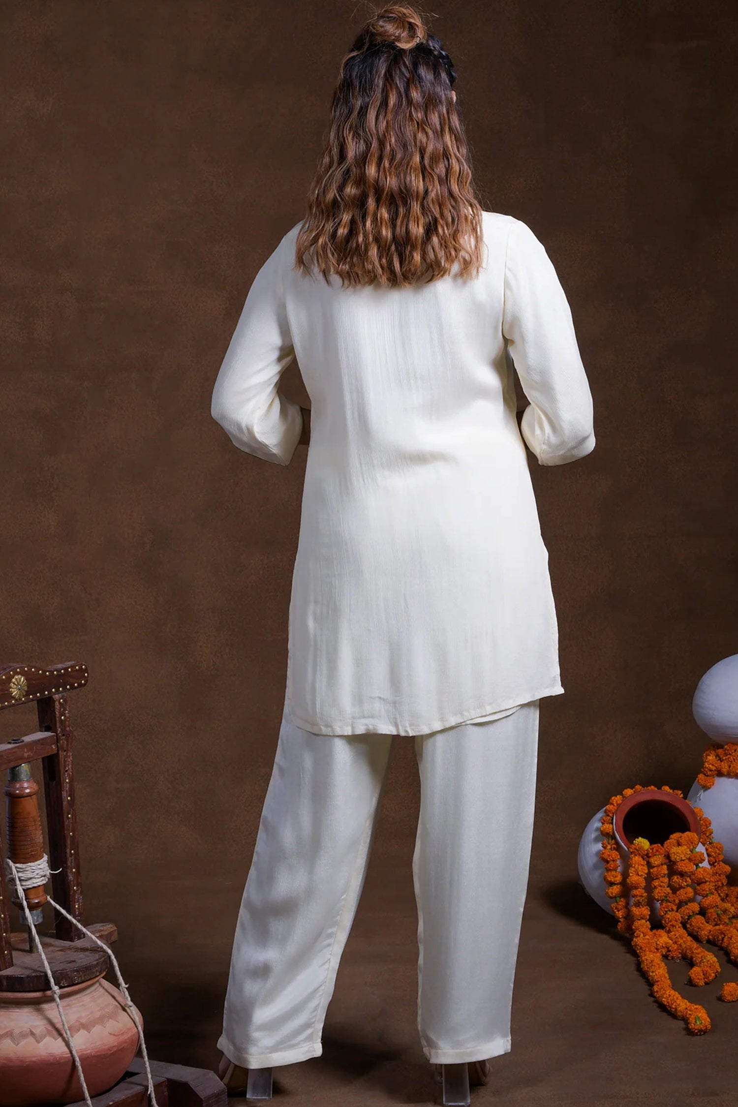 Off- White Rayon Kurta Set