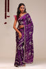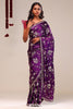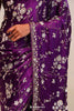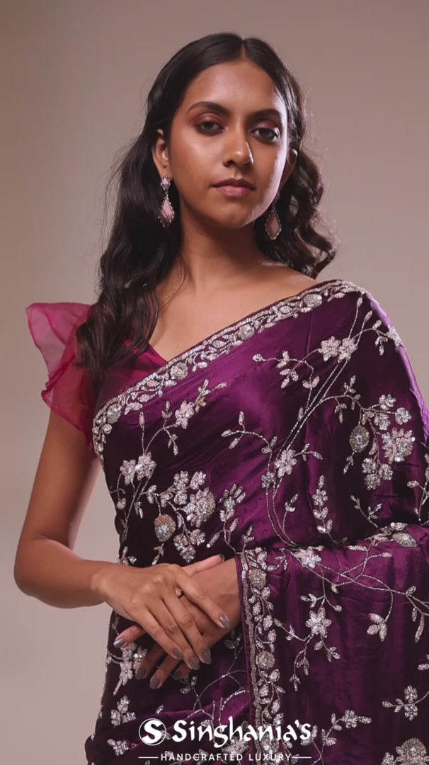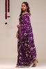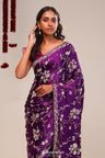 A richly palatinate purple saree with a silk base, which features floral jaal embroidered pattern. Added with intricately embroidered border, crafted with sequins and glass beads. Suitable for festive wear, and wedding parties.