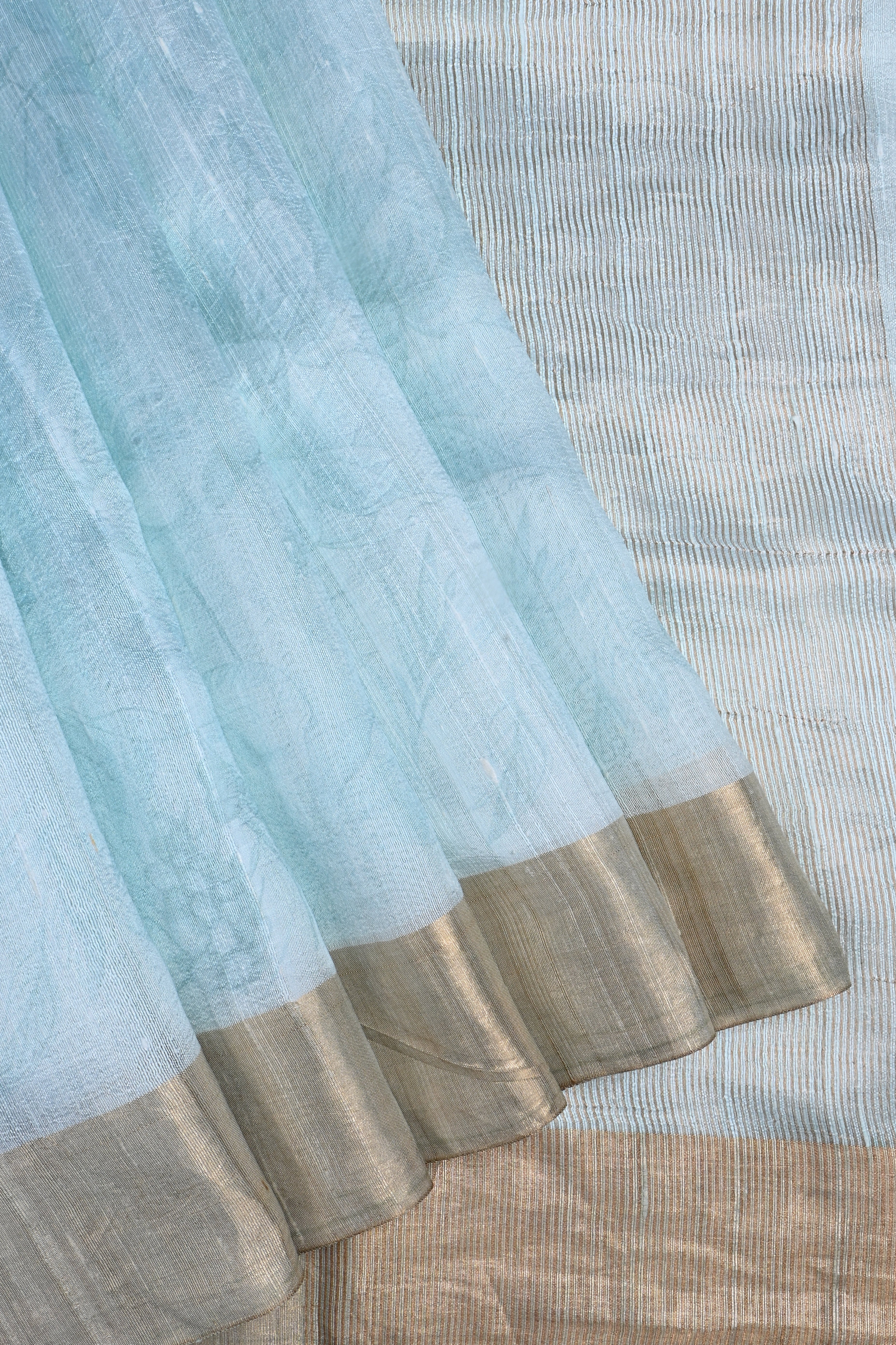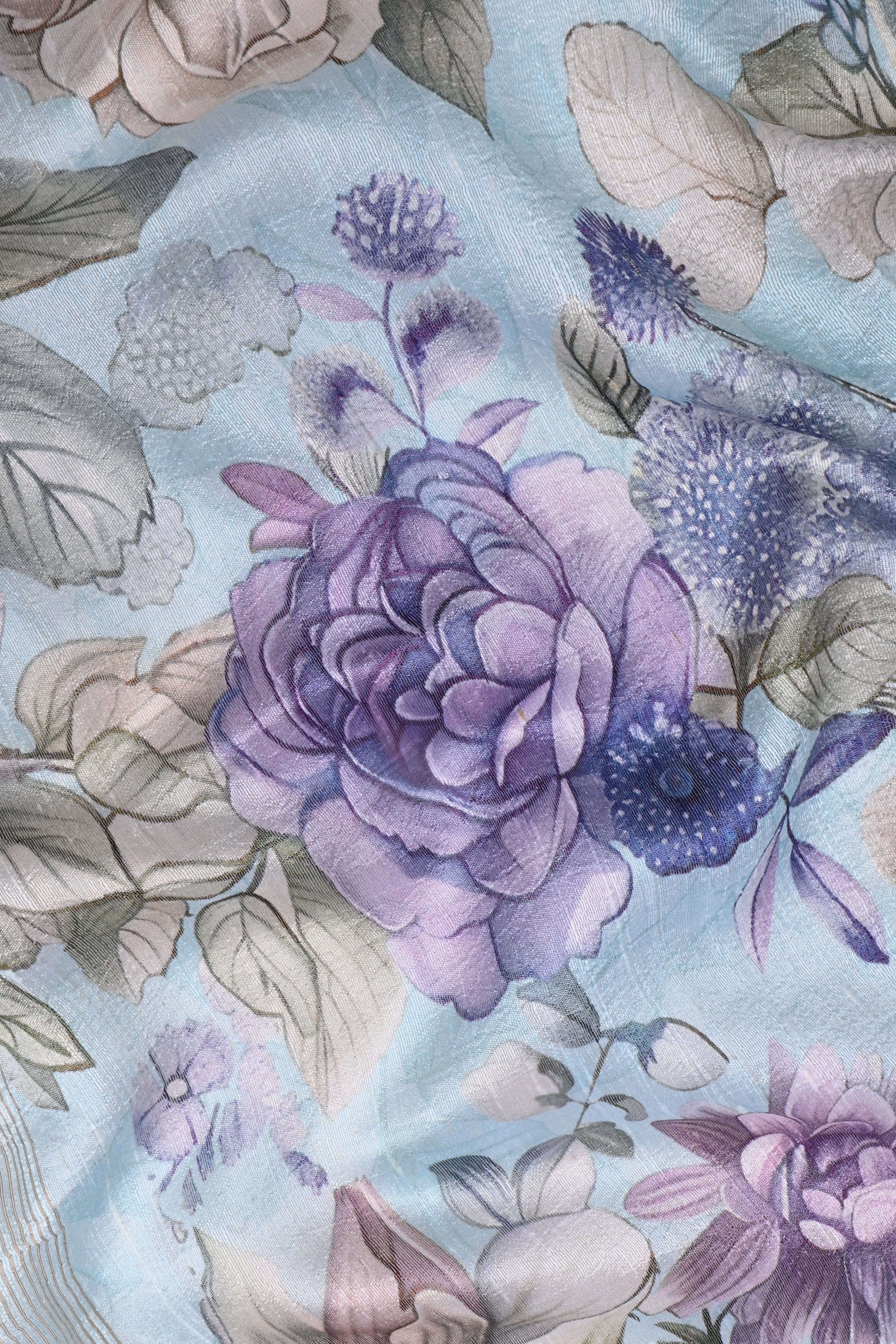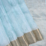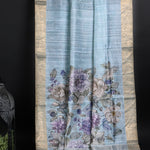 Pale Blue Floral Printed Dupion Silk Saree