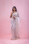 Pale Lavender Tissue Organza Saree With Hand Embroidery