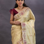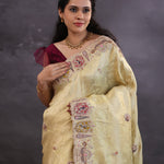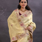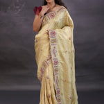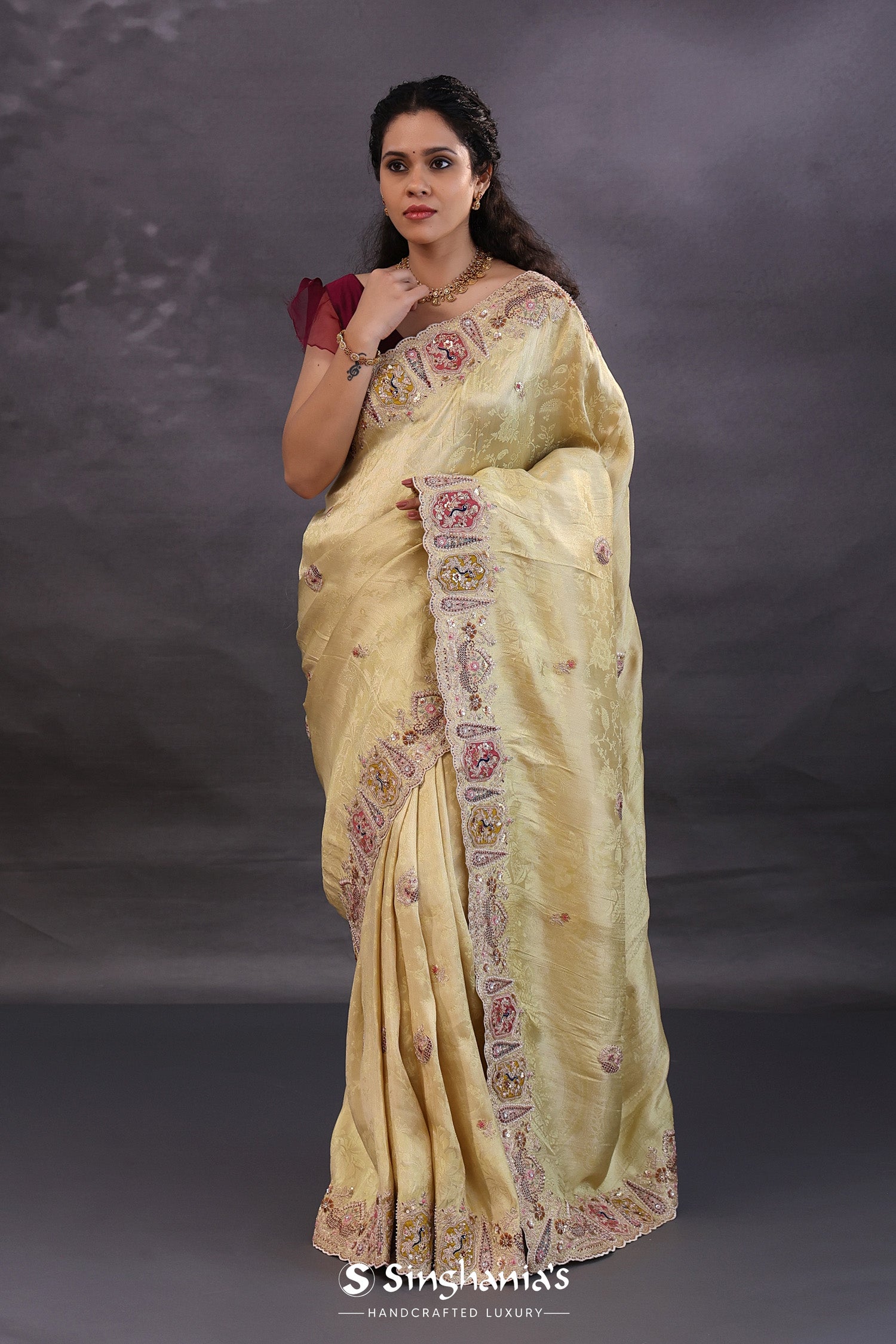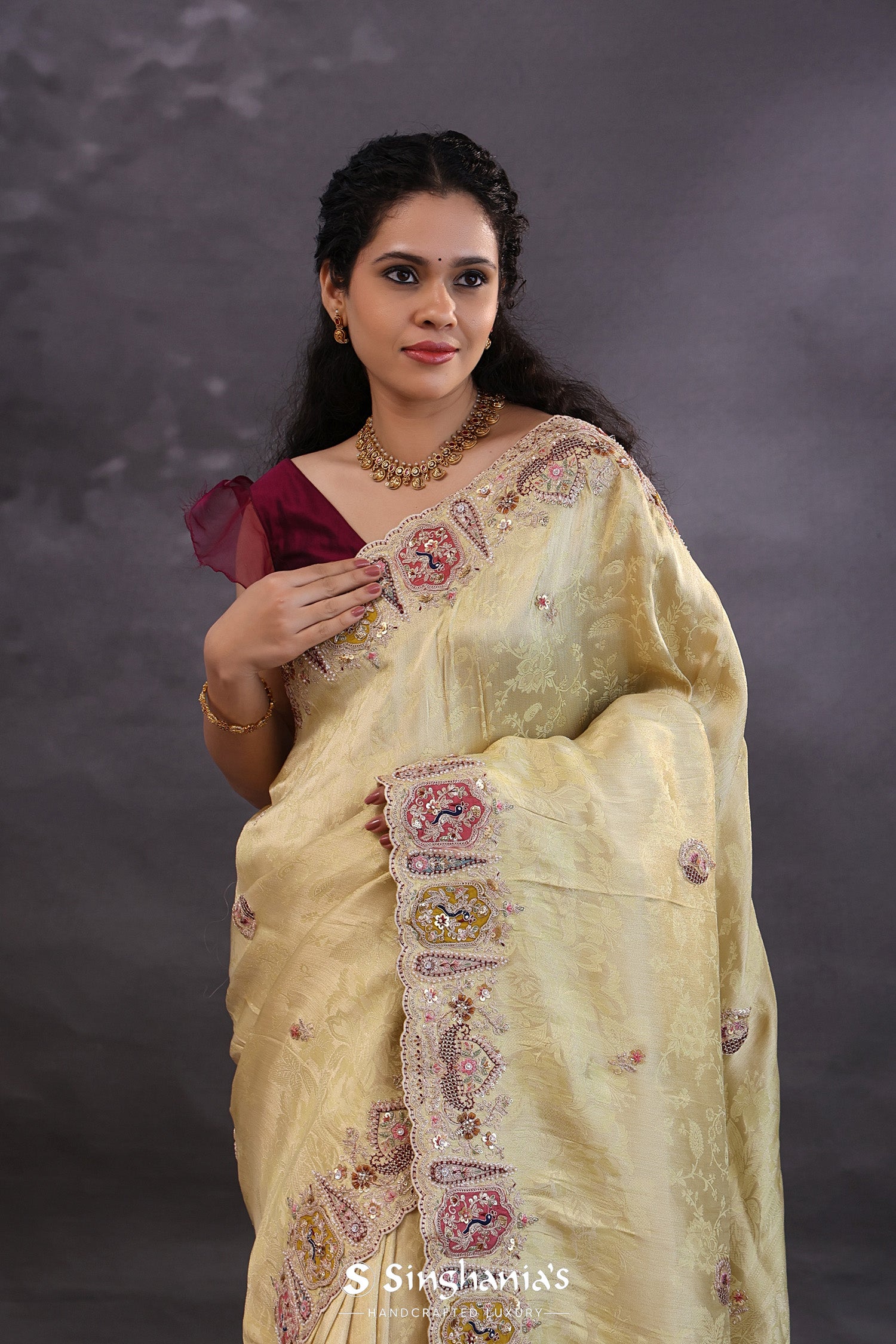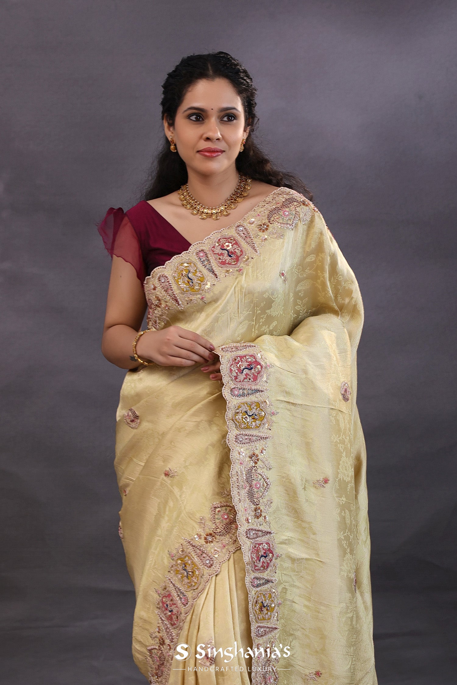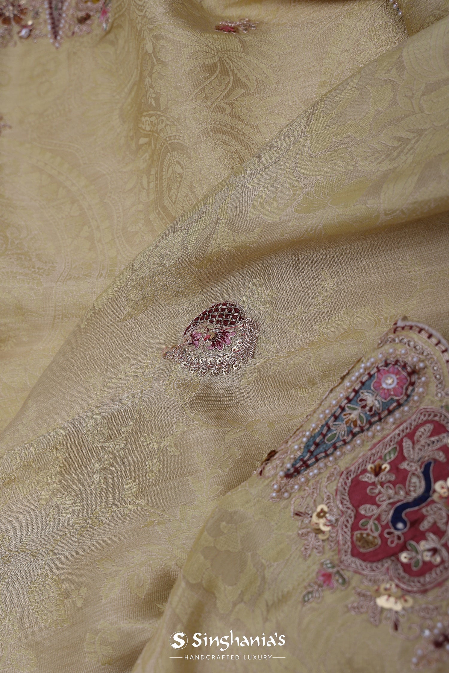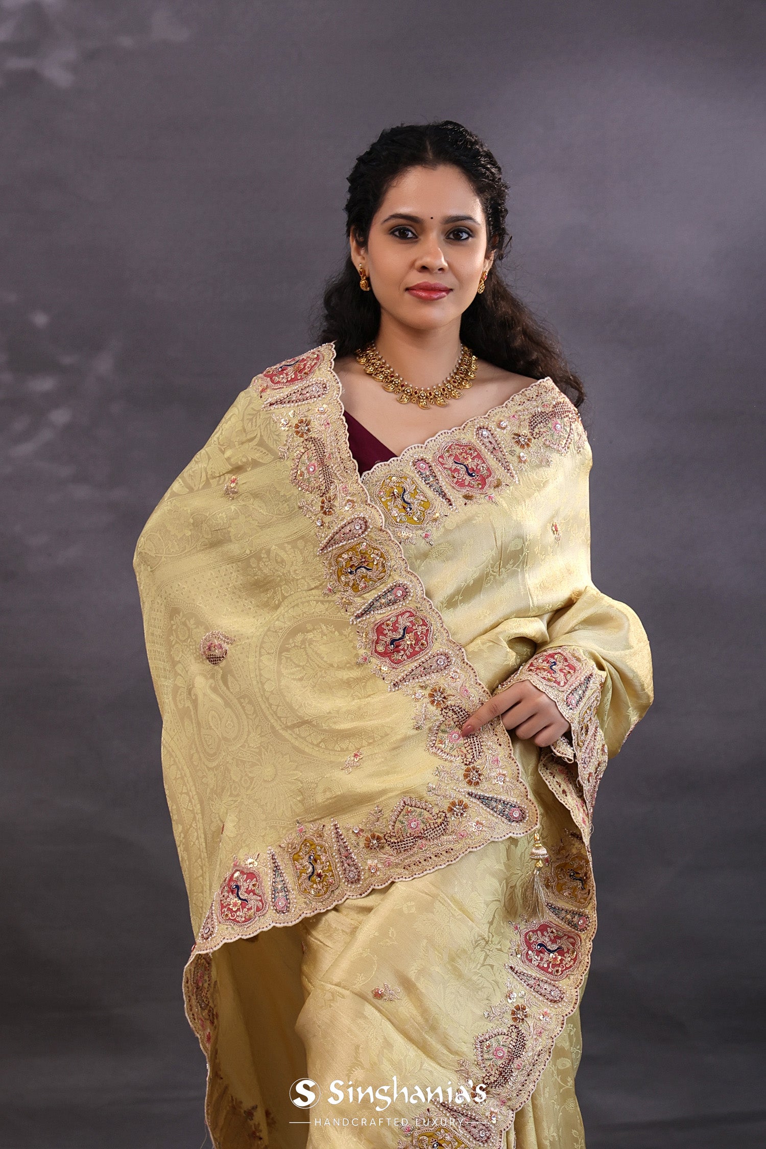 Pastel Gold Banarasi Tissue Saree With Scallop Border