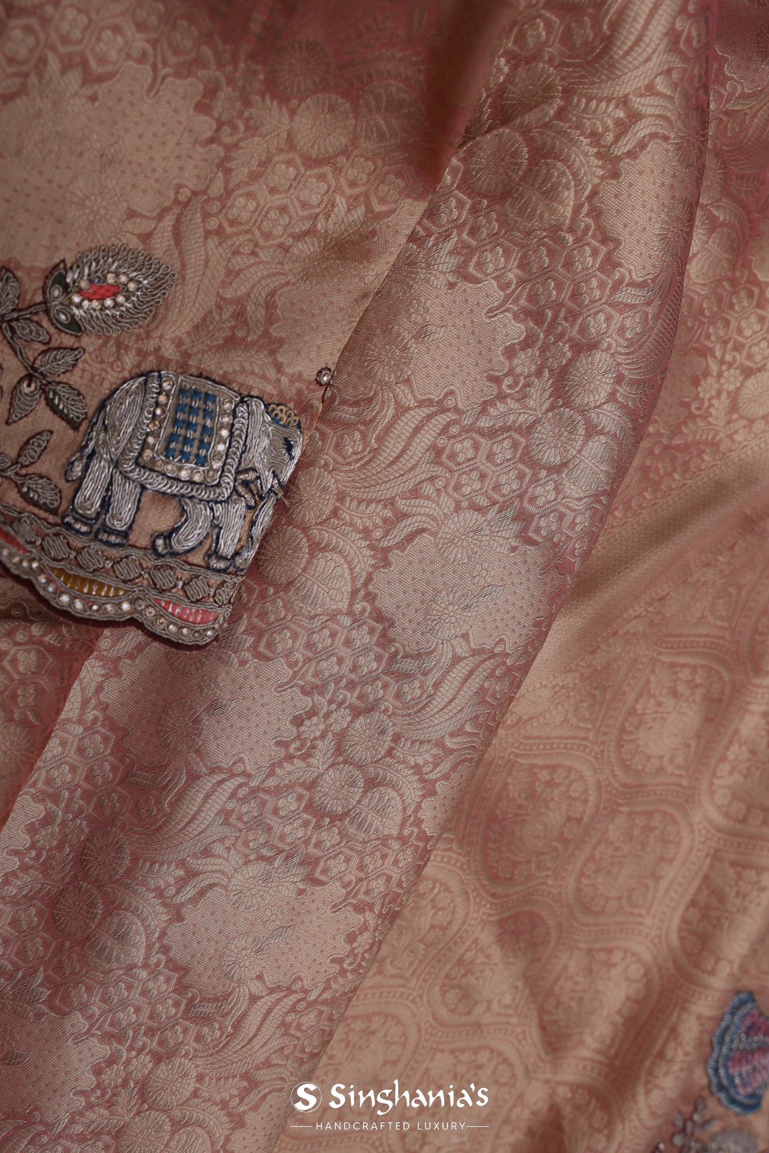 Pastel Pink Kanjivaram Tissue Saree With Scallop Border