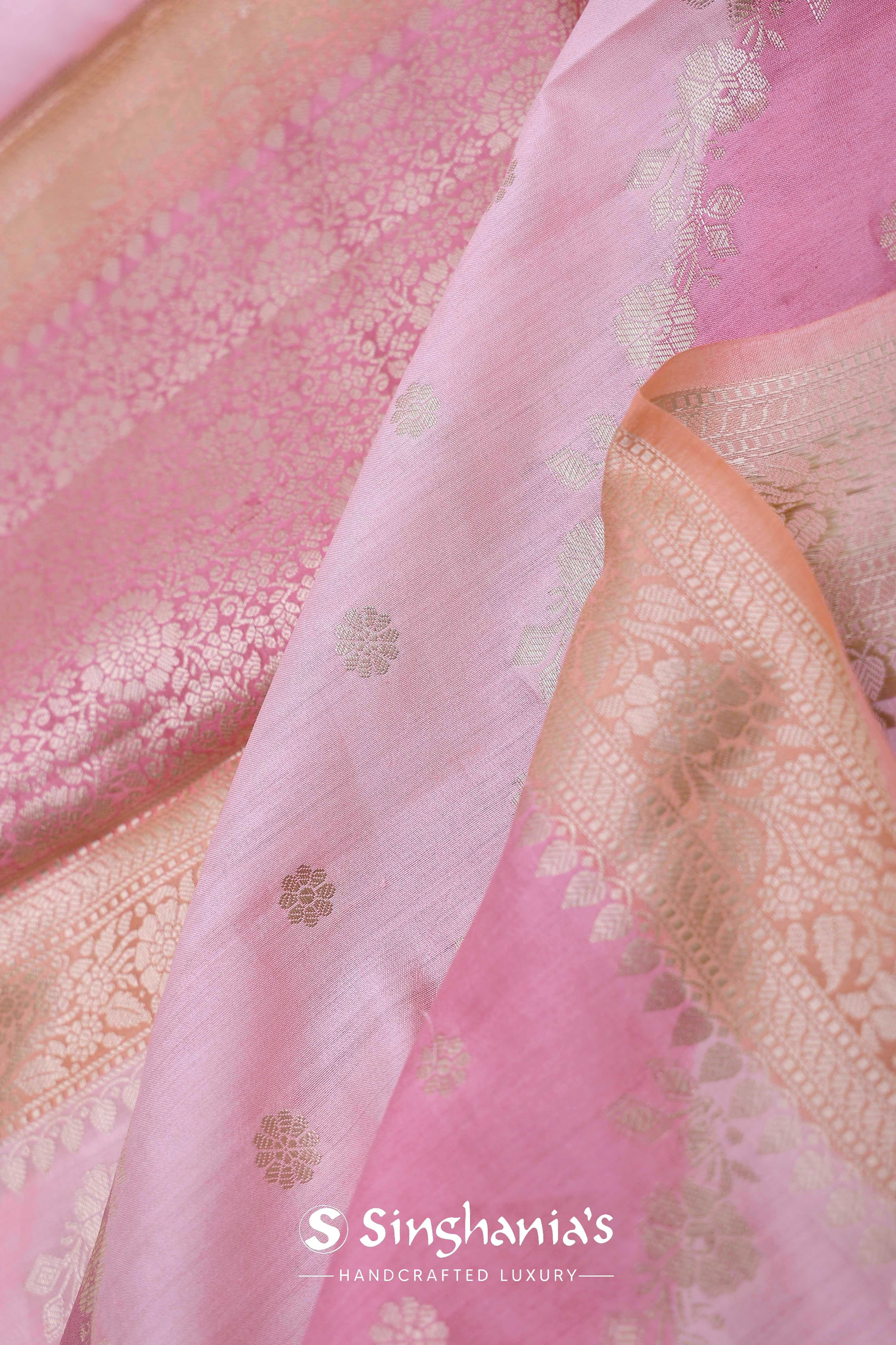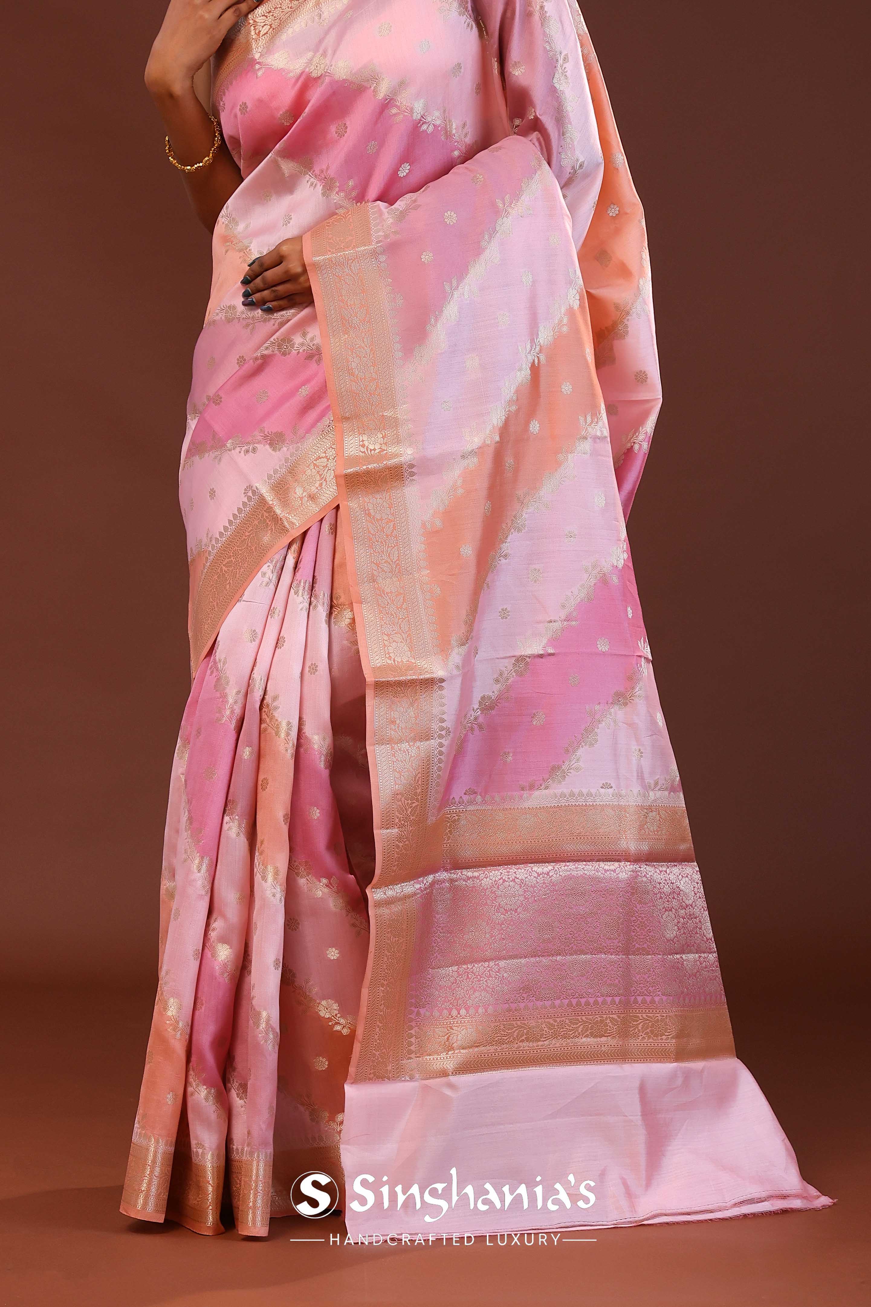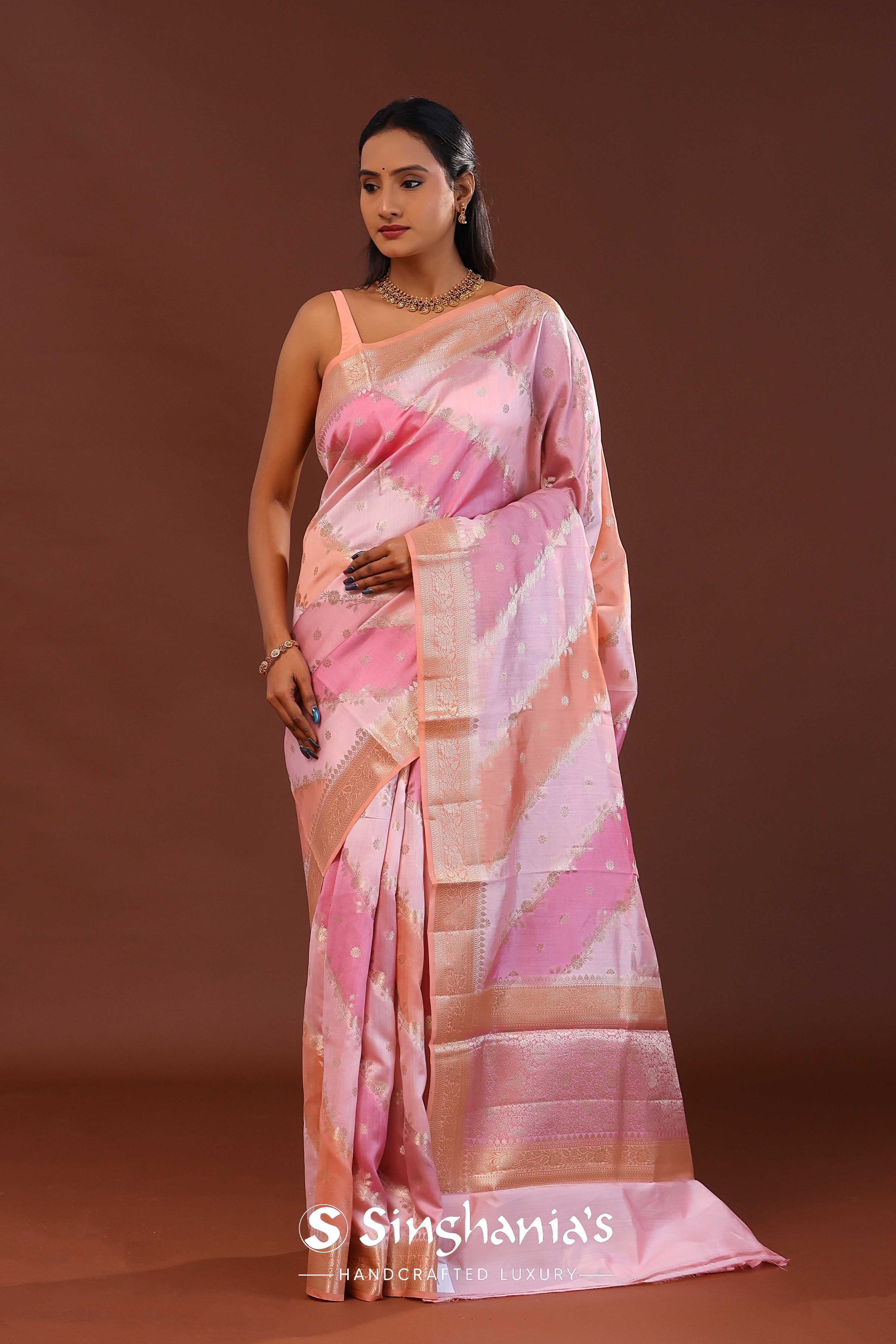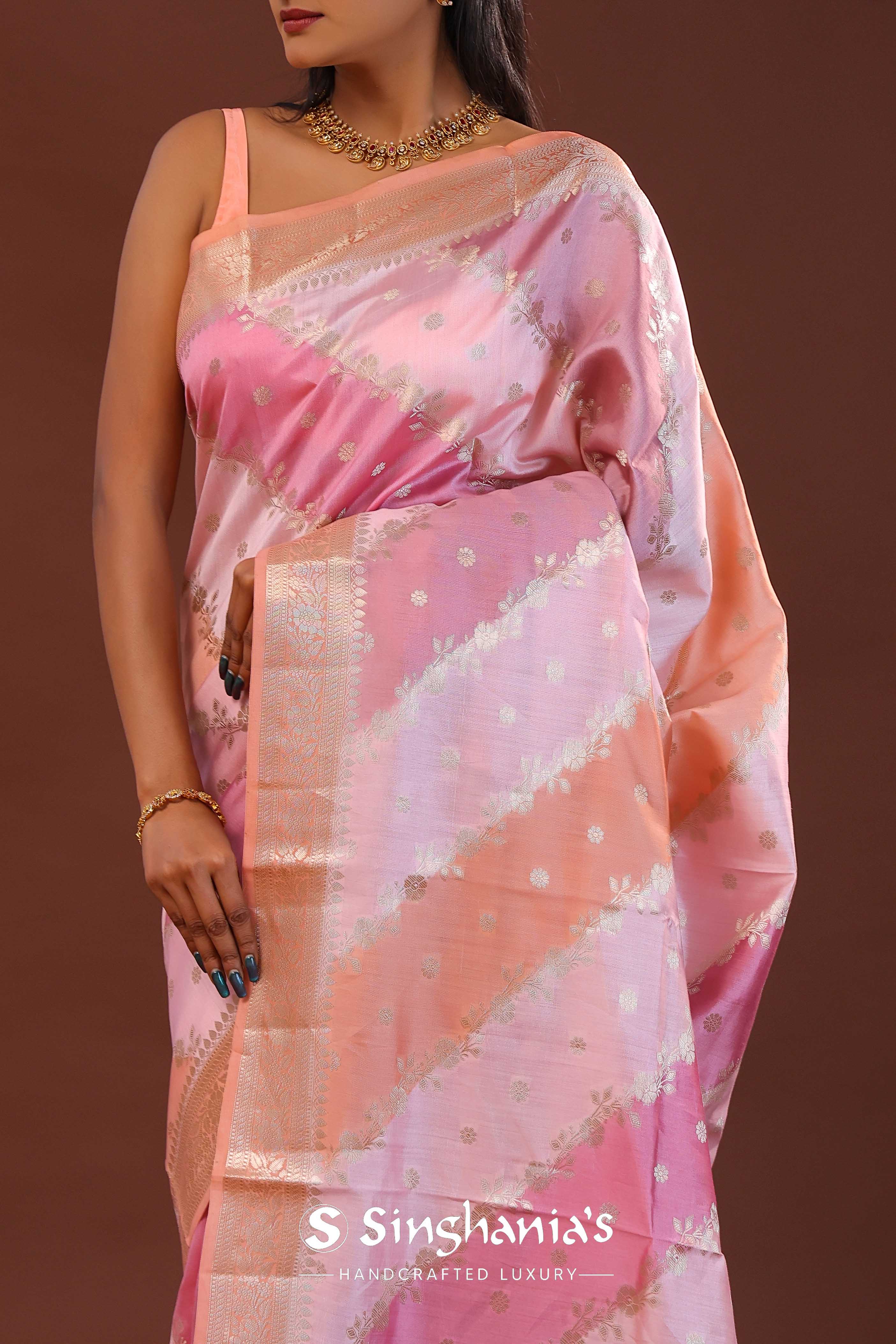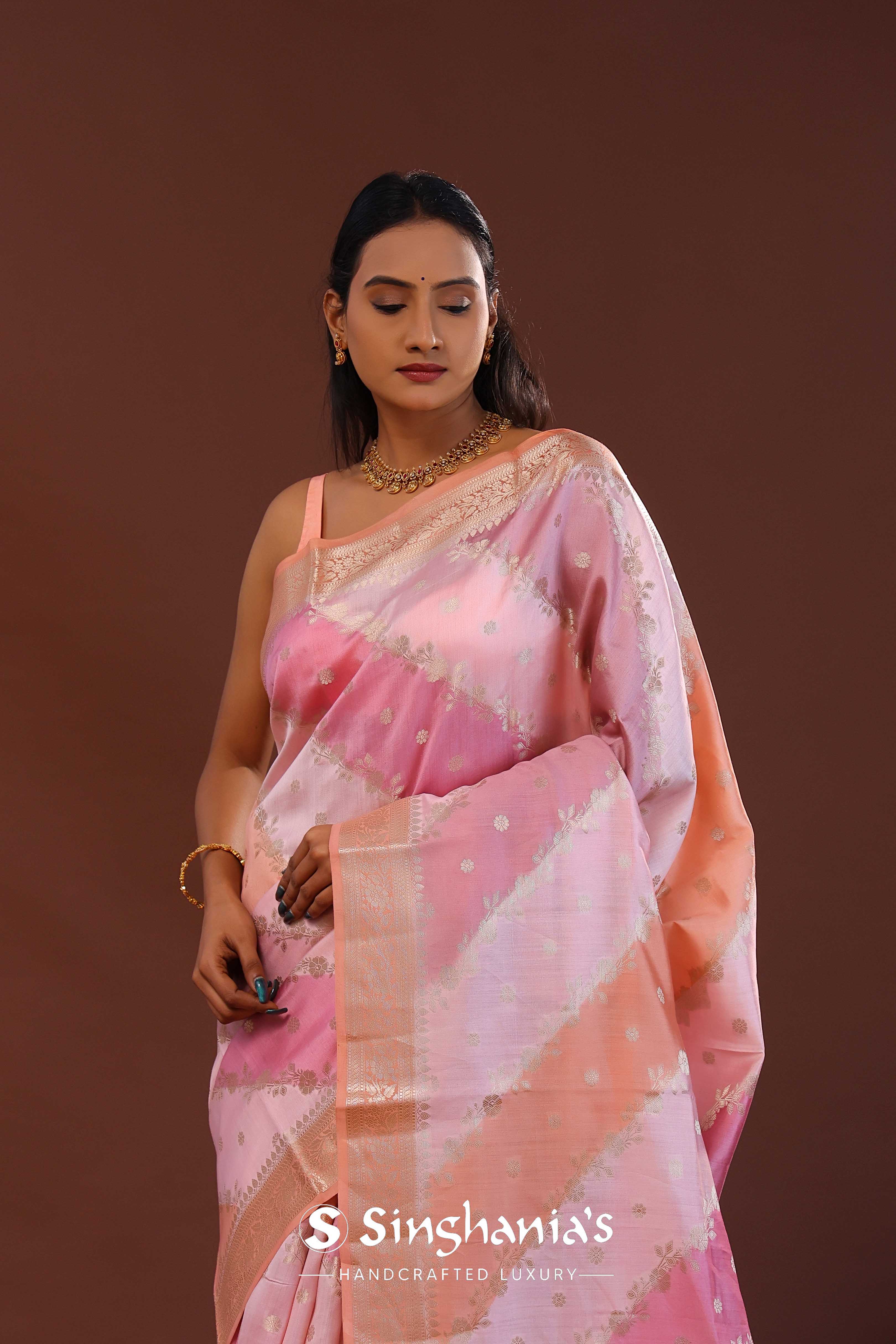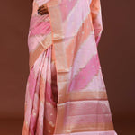 This elegent saree reflects grace and sophistication by the colours of patsel pink , pink and peach. Adds extra charm to the overall look of the saree .Which is the perfect blend of tradional and contemporary style.