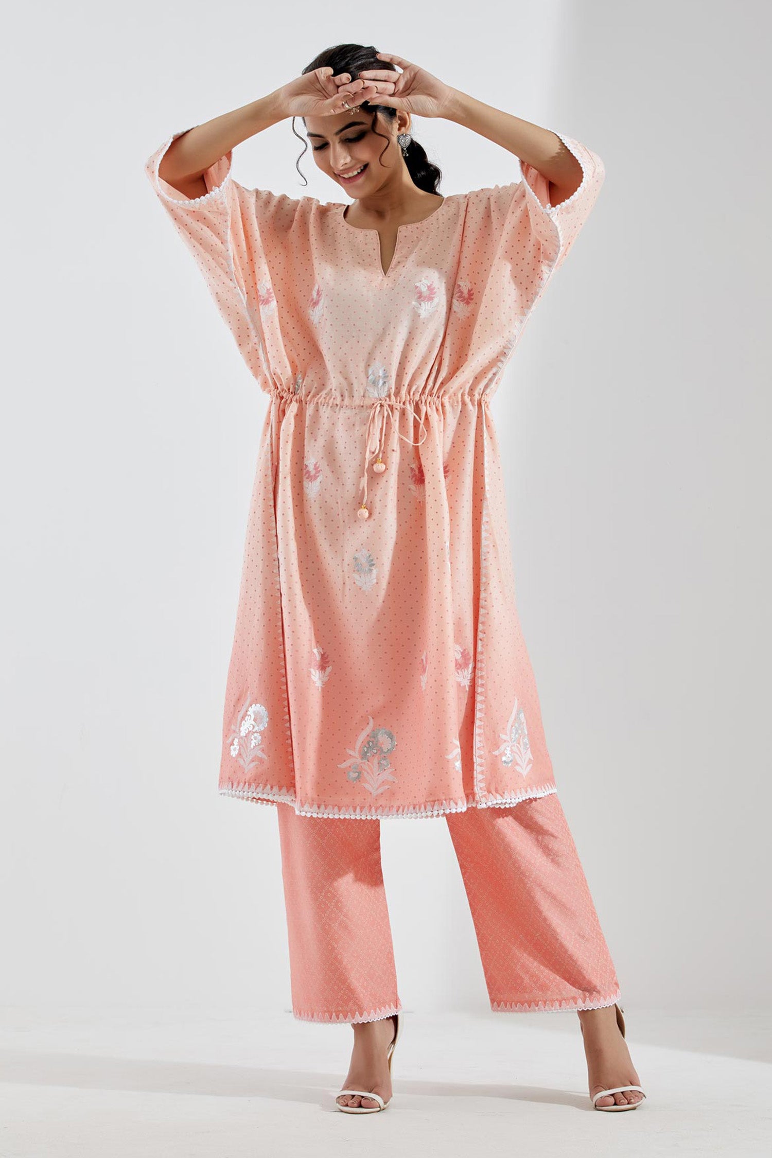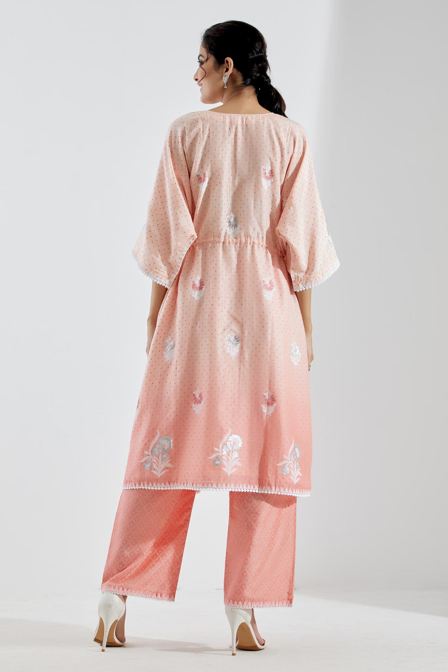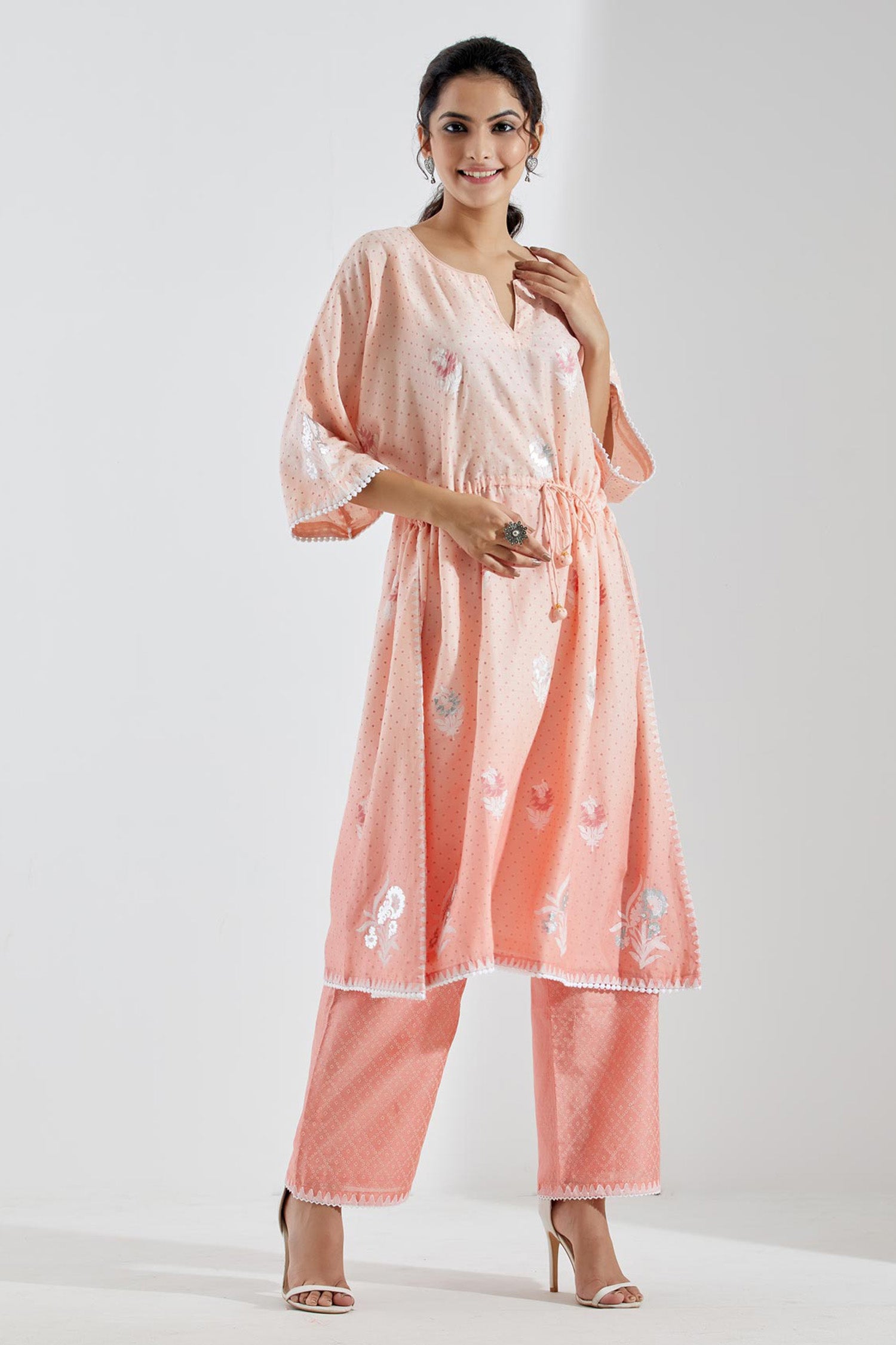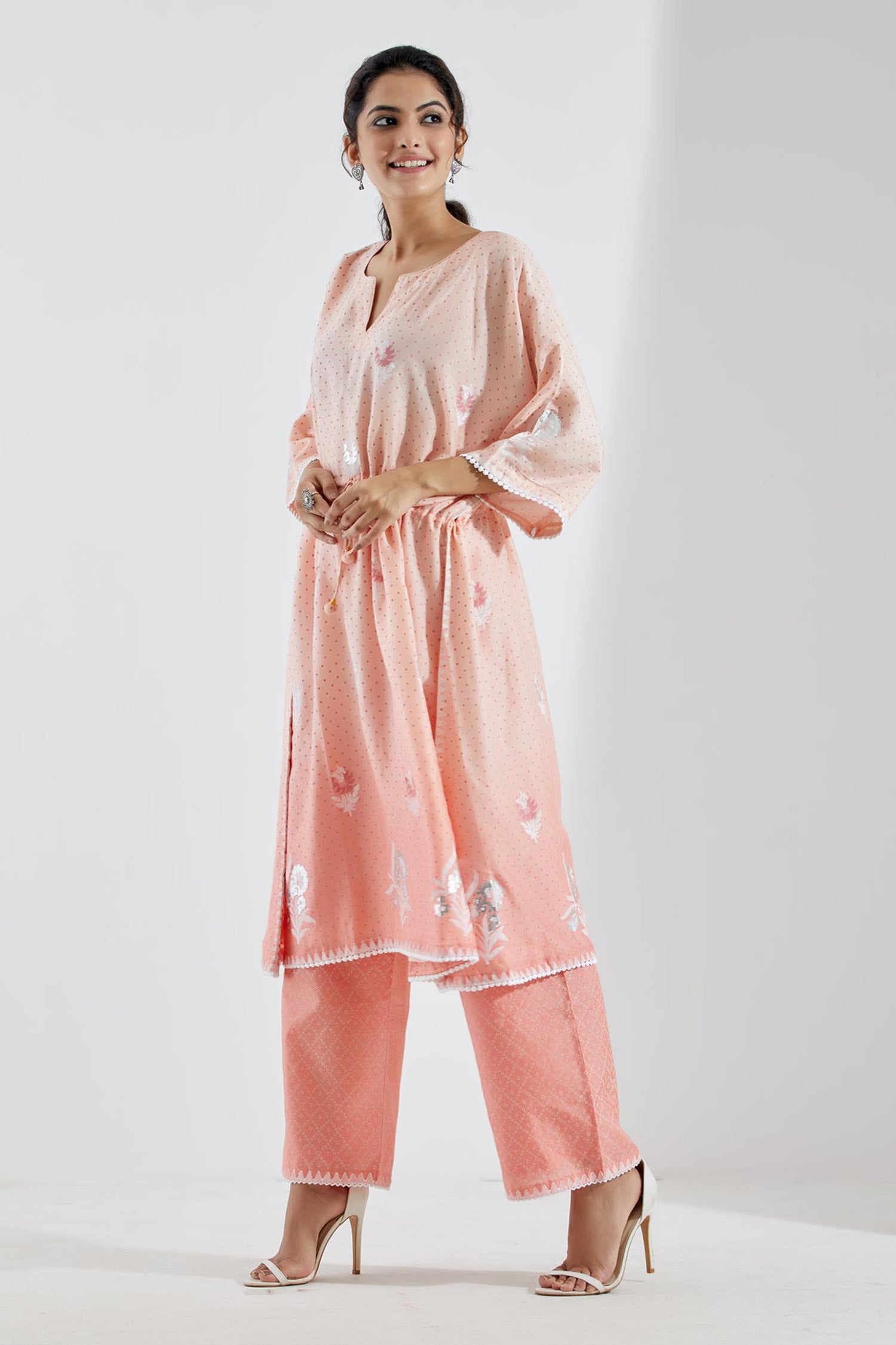 The cotton silk foil printed kurta with pant is a combination of Indo-Western look combining the tradition and fashion is a perfect to go option for any desired occasion.