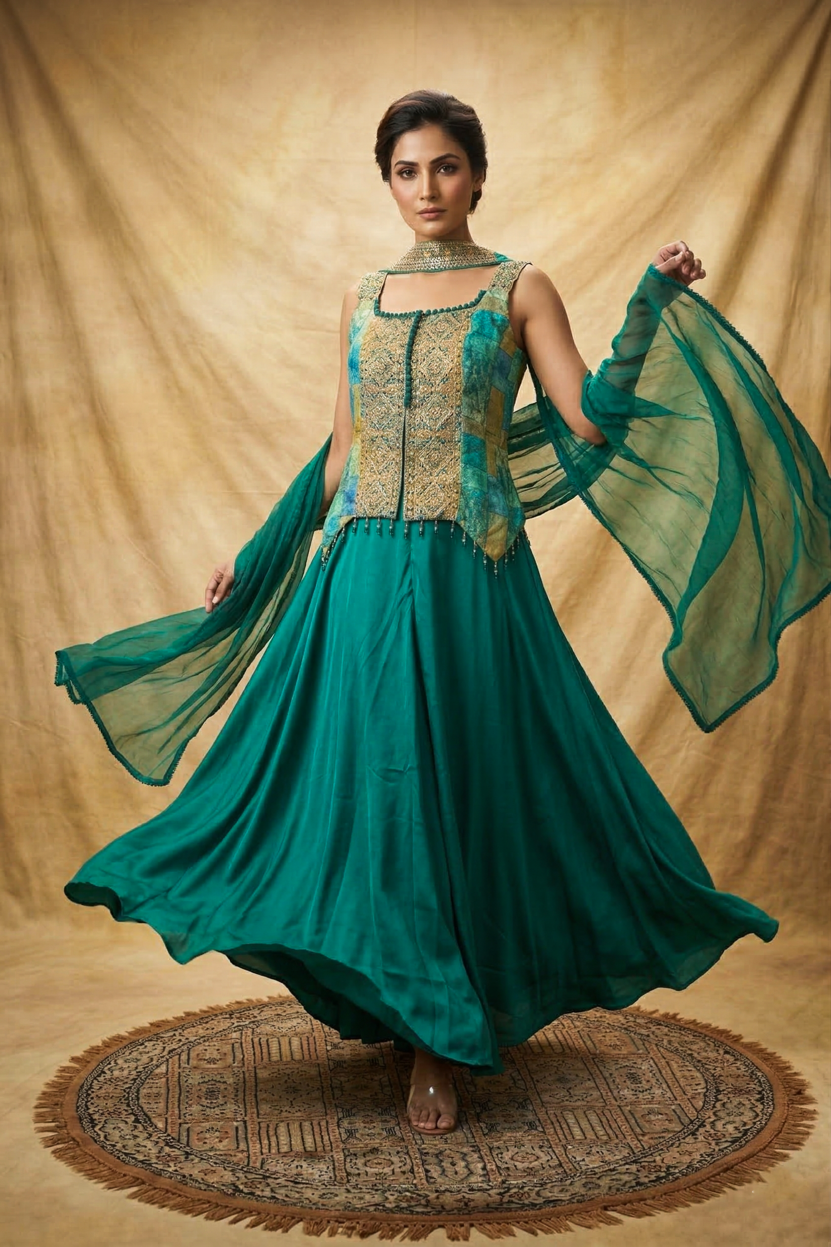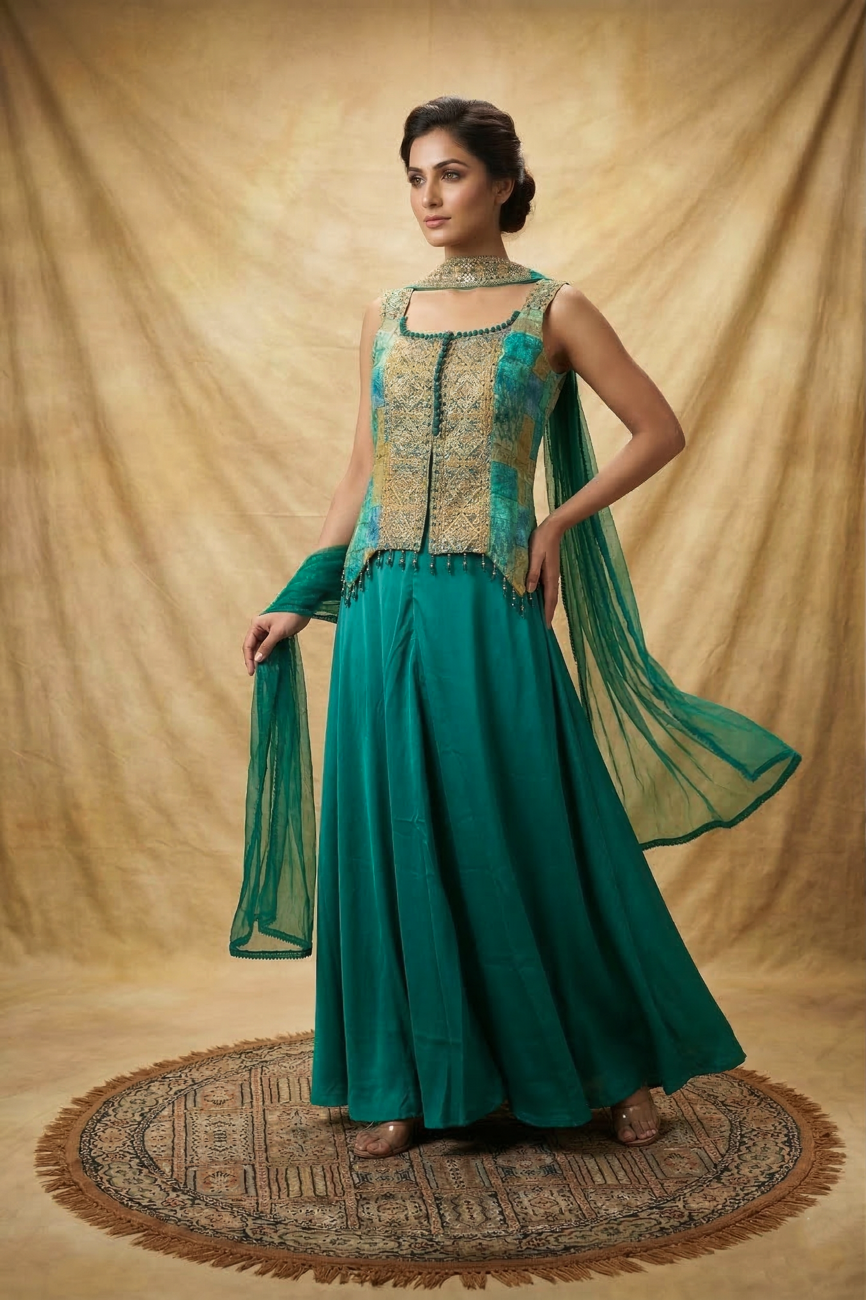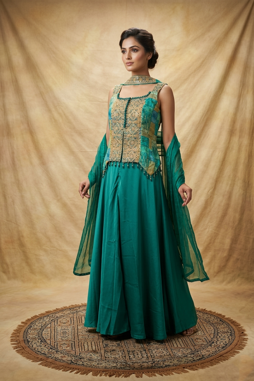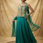 Pine Green Tissue Silk Indo-Western Set