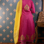 Pink Butti Chandary With Block Print Kurti Set