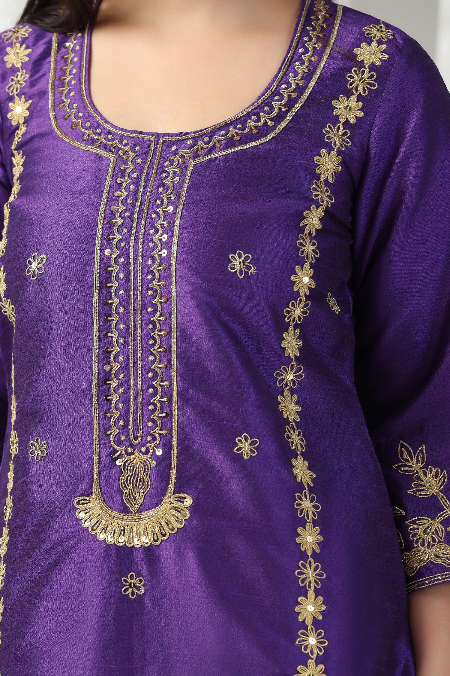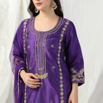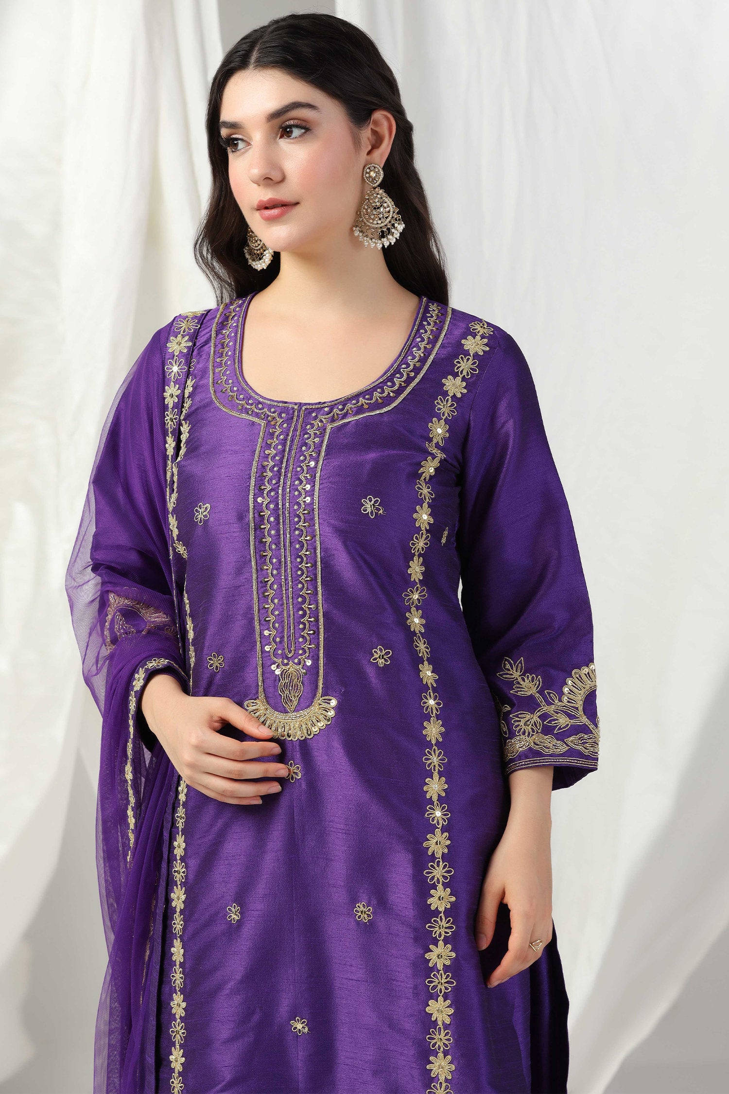 Purple Raw Silk Dori Hand Embroidered Suit With Salwar And Dupatta