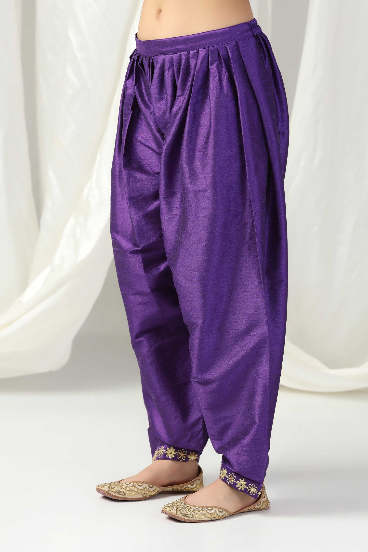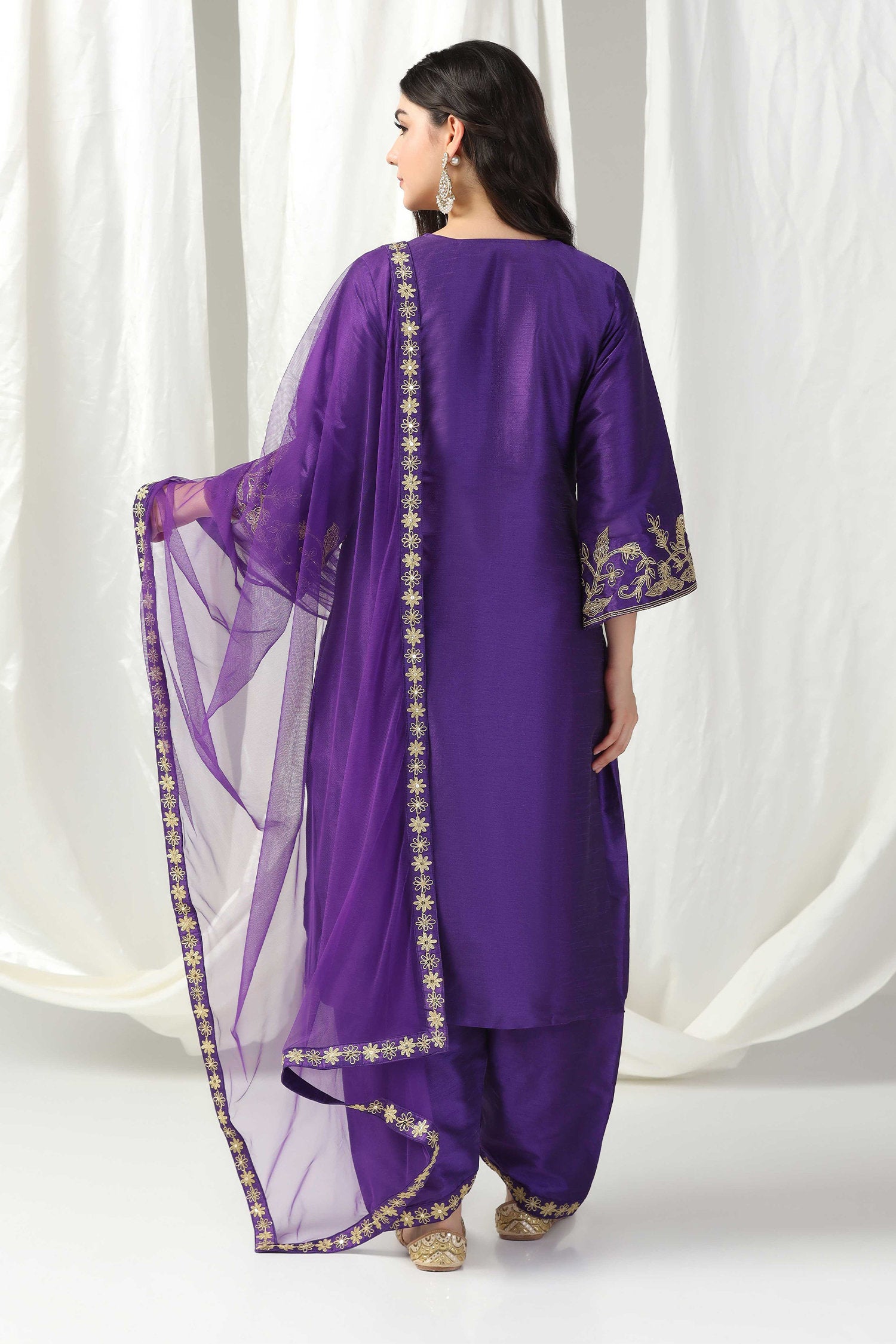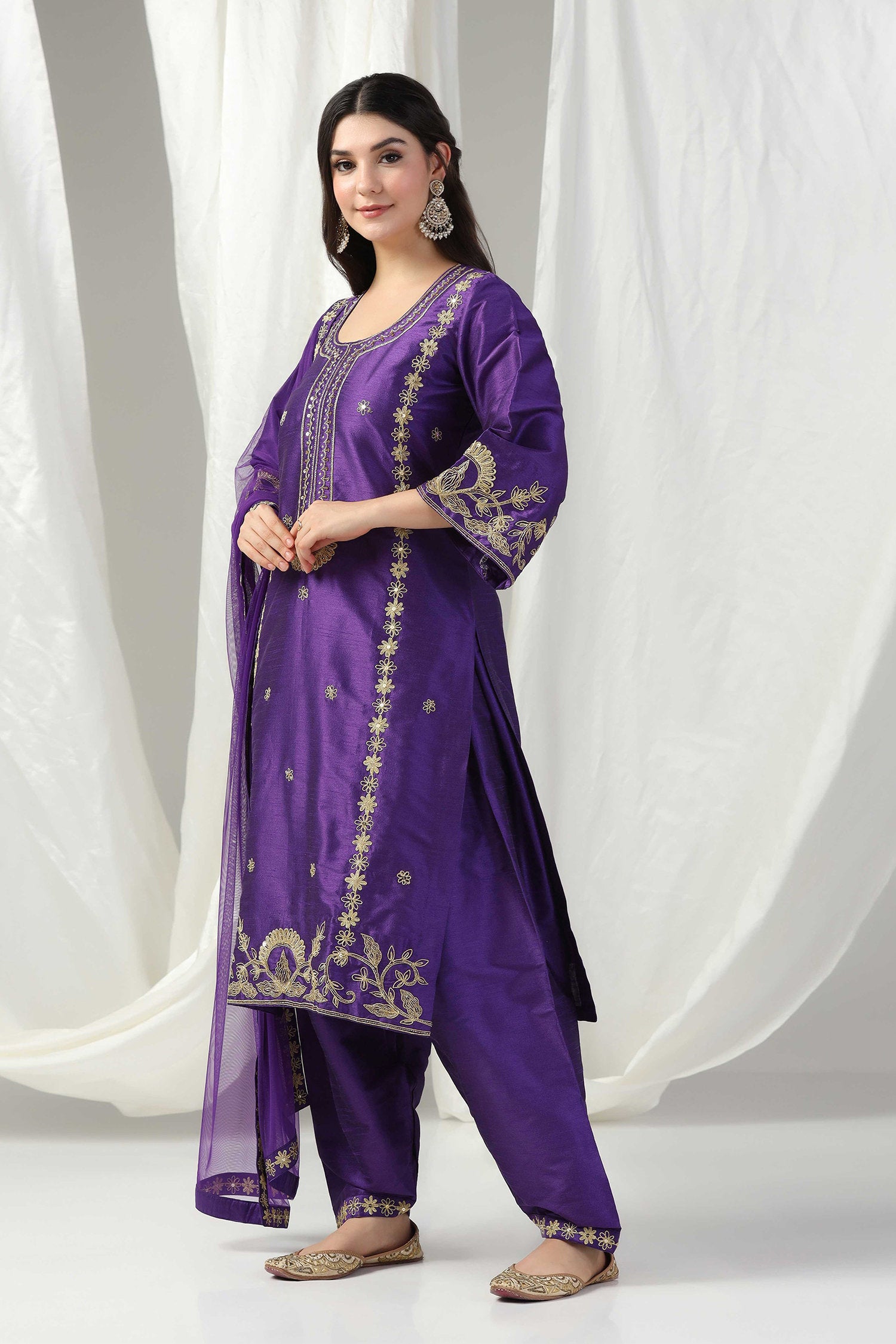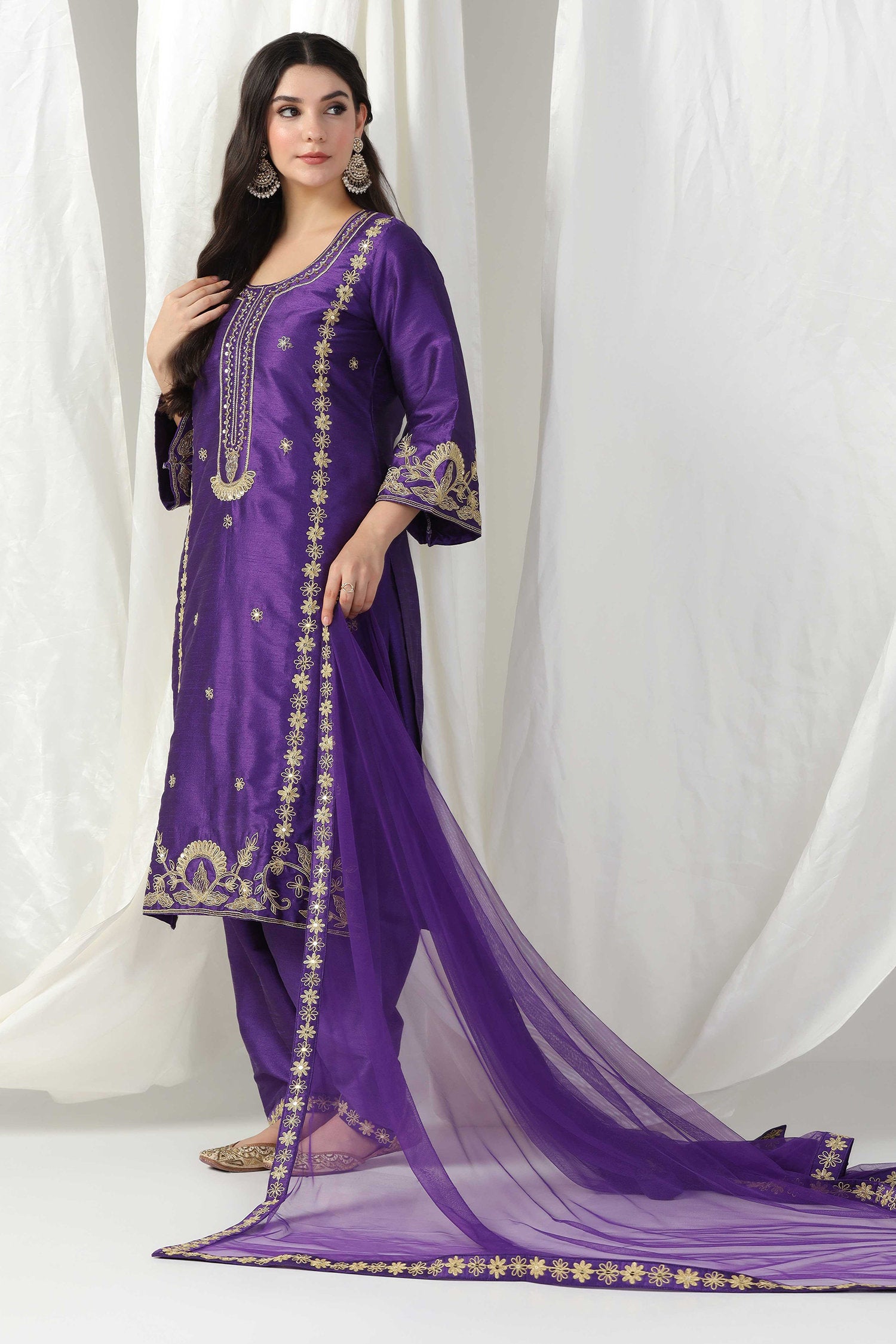 The purple raw silk dori hand embroidered suit with salwar and dupatta for a stylish and traditional look.