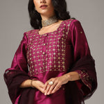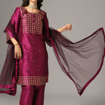 Purple Raw Silk Kurti With Palazzo Pants And Dupatta
